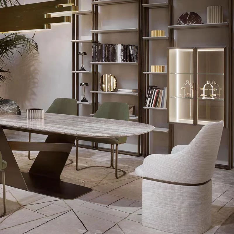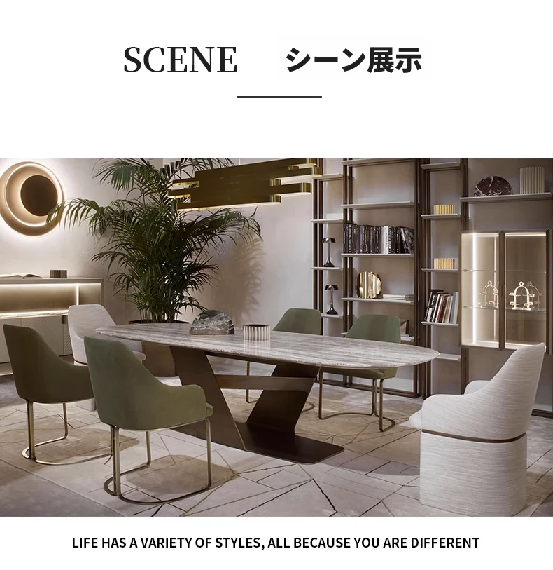 高級感溢れる大理石長方形ダイニングテーブル - 小さなスペースに最適なデザイン、イタリアの職人技が光る一品。家庭用にもぴったりな洗練されたスタイルで、食卓を特別な空間に演出します。
