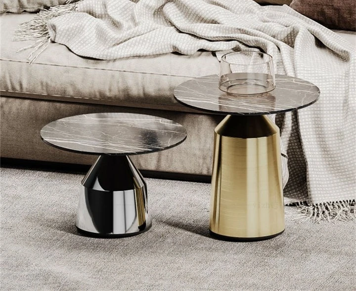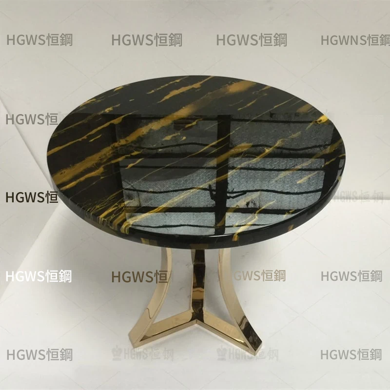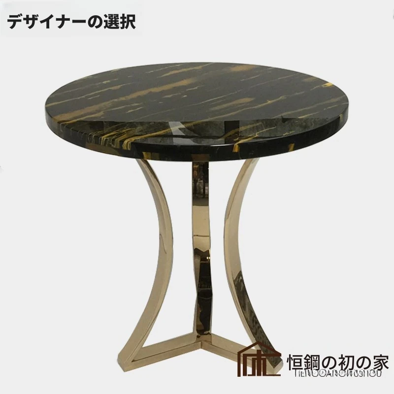 ラグジュアリーなステンレス製の丸型大理石テーブル - カジュアルな接客やビジネスミーティングに最適!オフィスやリビングにぴったりな洗練されたデザインで、上質なひとときを演出します。