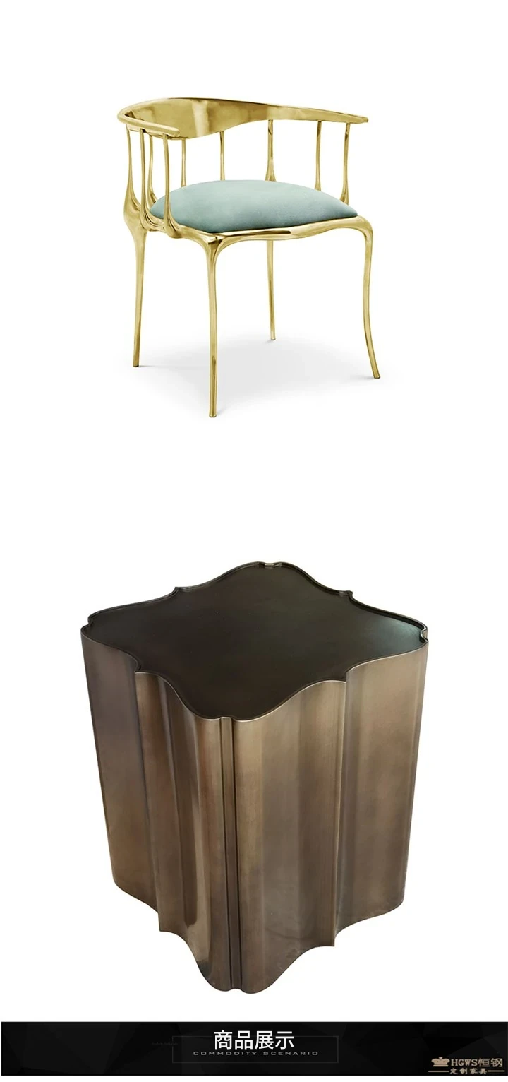 アメリカンスタイルのリビングダイニングテーブル - 長方形大理石テーブル、ステンレススチール製のエレガントな接待テーブル。ヴィラのモデルルームにもぴったりな、美しいデザインのダイニングテーブルで、家族や友人との素敵なひとときを演出します。