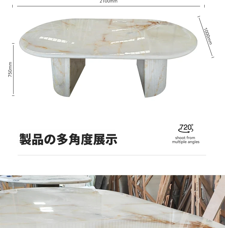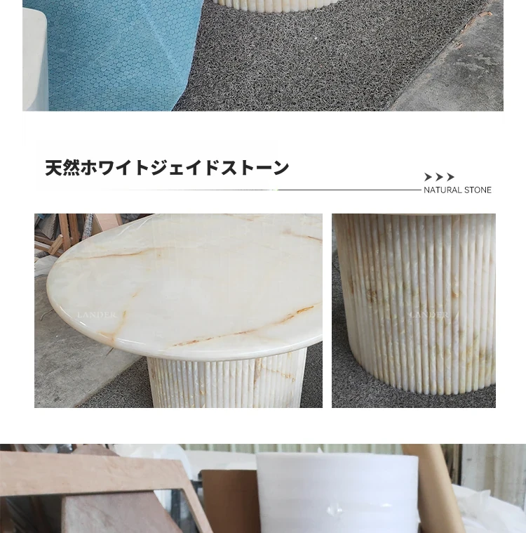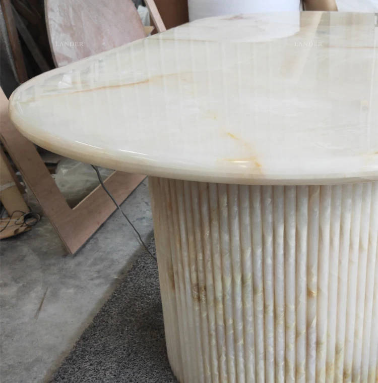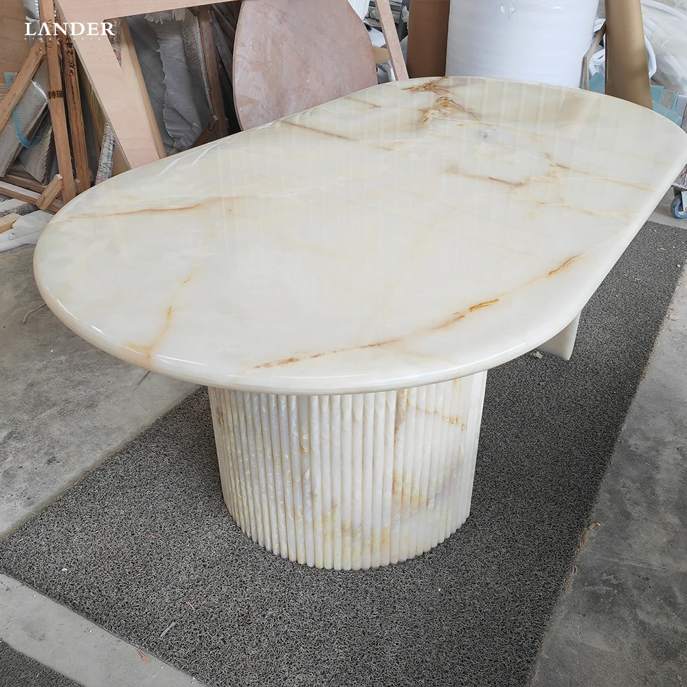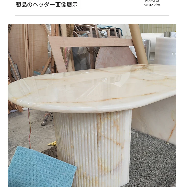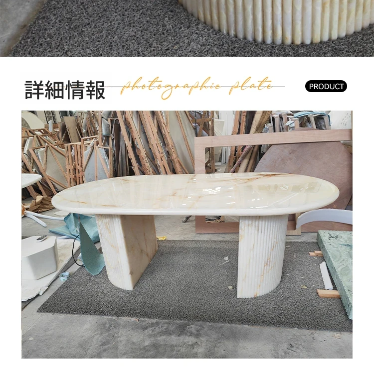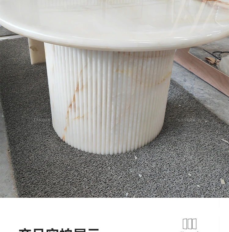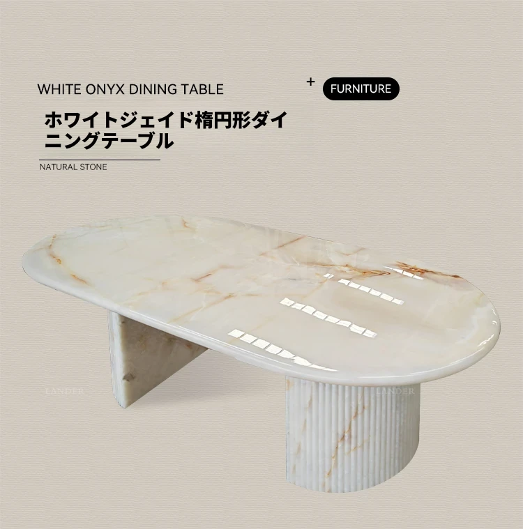 高級感溢れる白玉半円型ラグジュアリー餐桌 - 天然の透き通る白い纹理が魅力的!レストランや別荘、ホテルに最適な雰囲気を演出する家具です。
