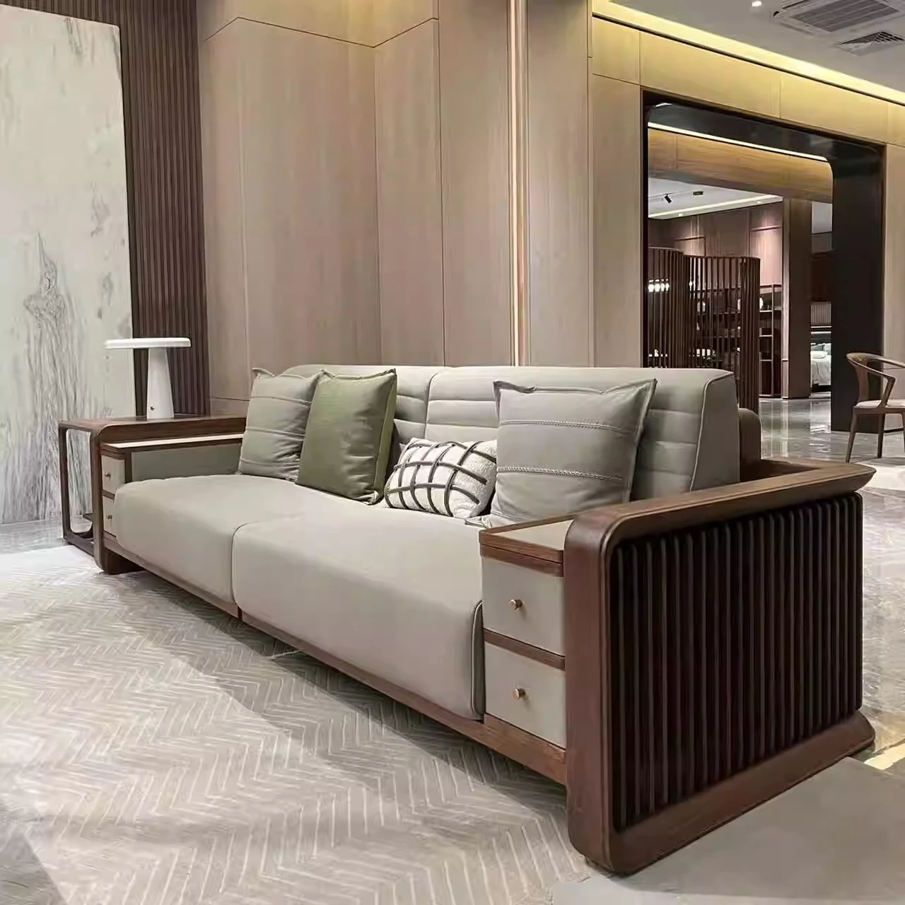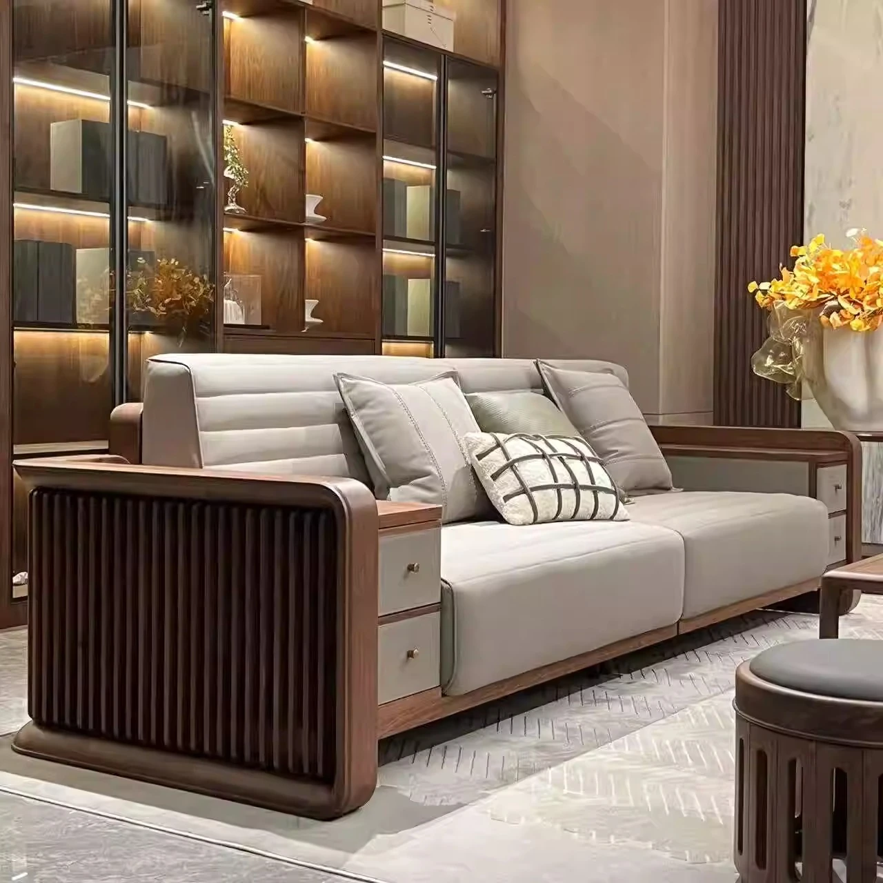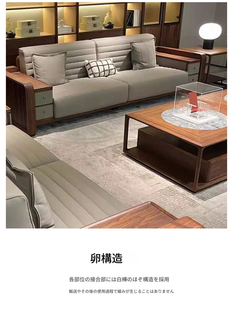 新中式禅風 ブラックウォルナットとホワイトアッシュのソファとテーブルセット - リラックスできる空間を演出する高級感あふれる実木家具、ホテルや民宿、オフィスにも最適です。