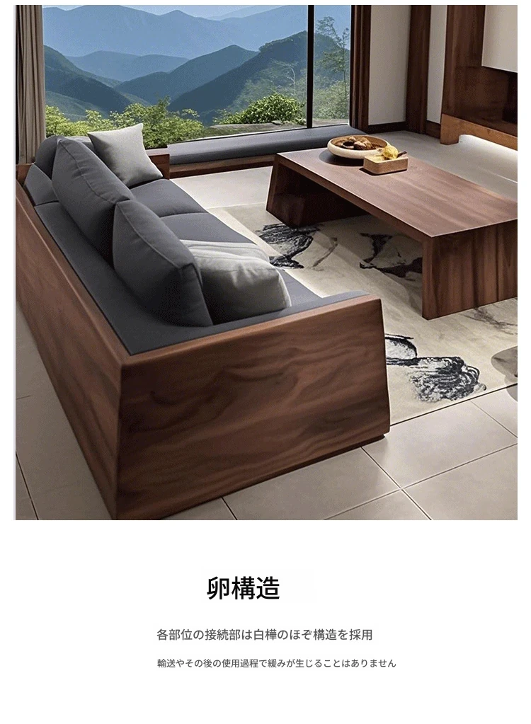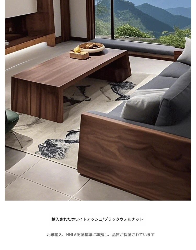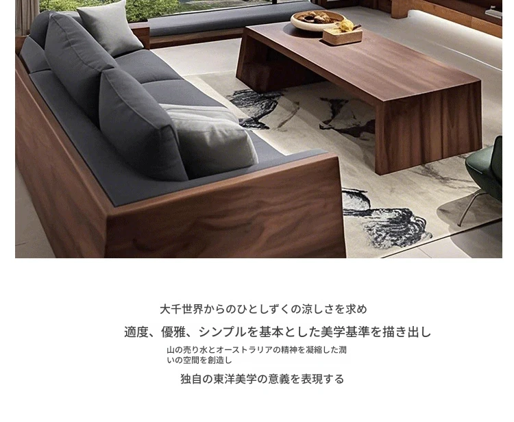 高級感あふれる新中式禅スタイルのホワイトアッシュソファ。北米産のブラックウォールナット無垢材を使用した、軽やかな贅沢感のあるリビング用家具。おしゃれで落ち着いた空間を演出します!