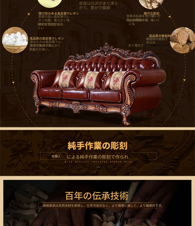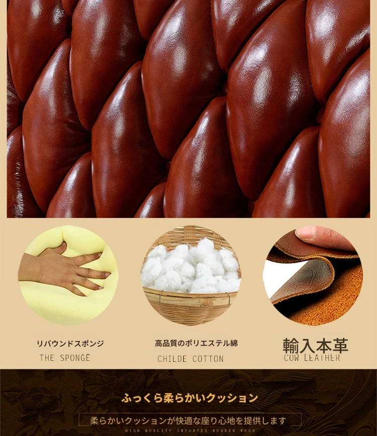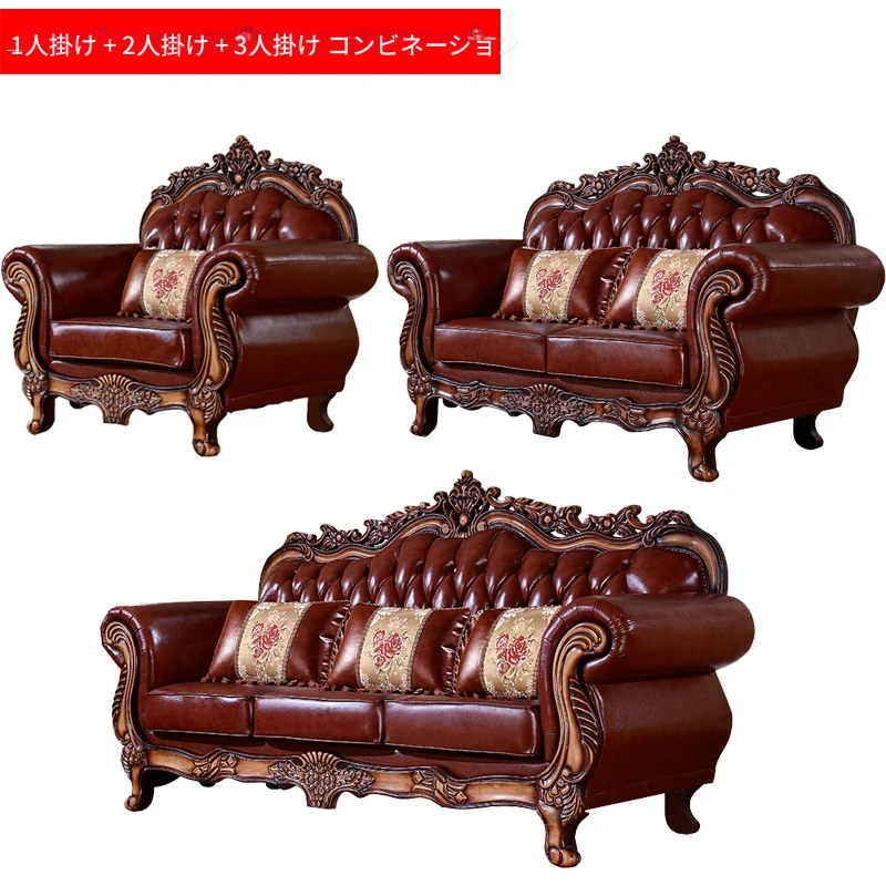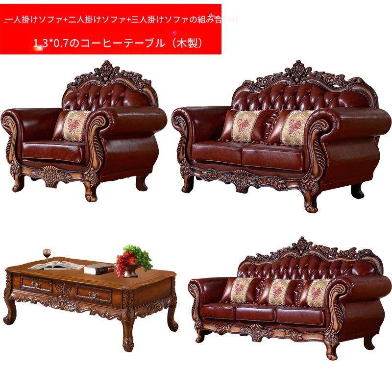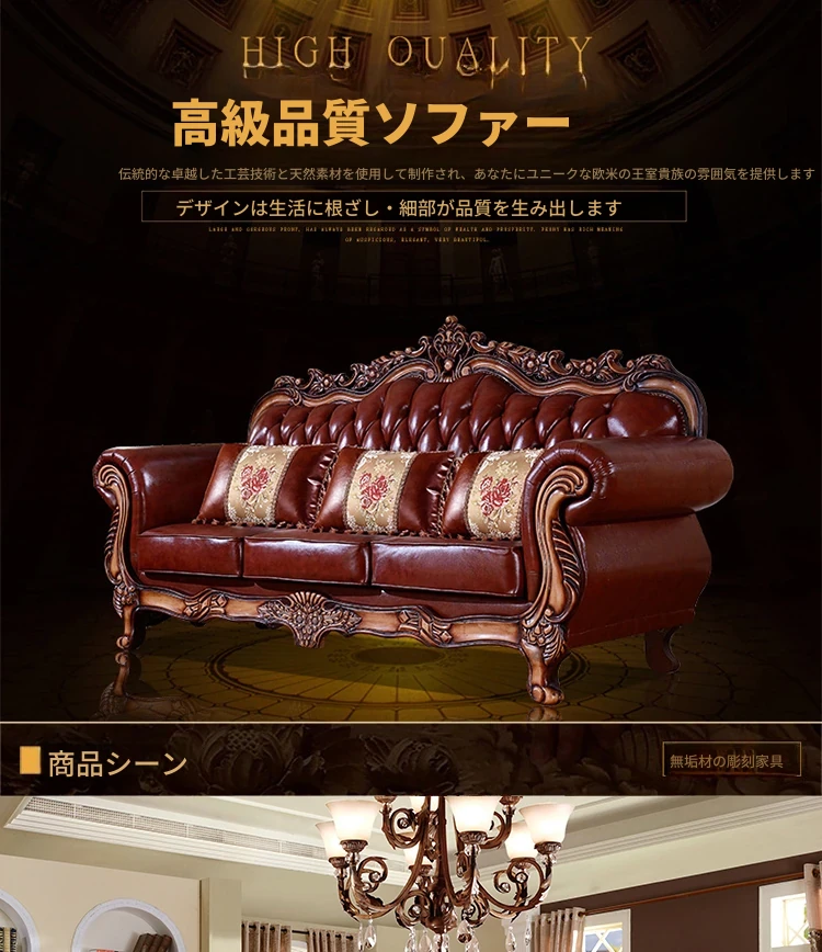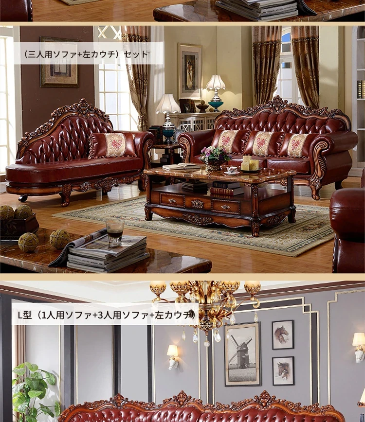 欧風本革ソファ|全てが無垢材のアメリカンスタイル|ヴィンテージ仕上げの一級牛革|ラグジュアリーで軽やかな高級家具|広々としたリビングにぴったりな豪華デザイン