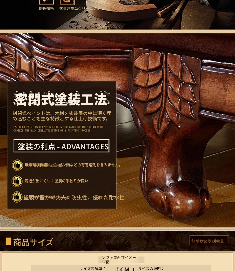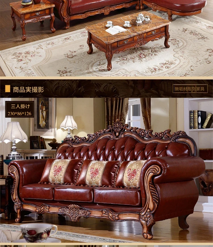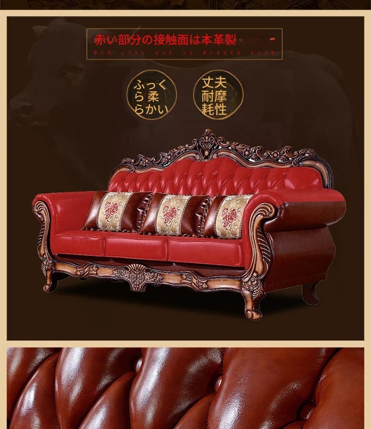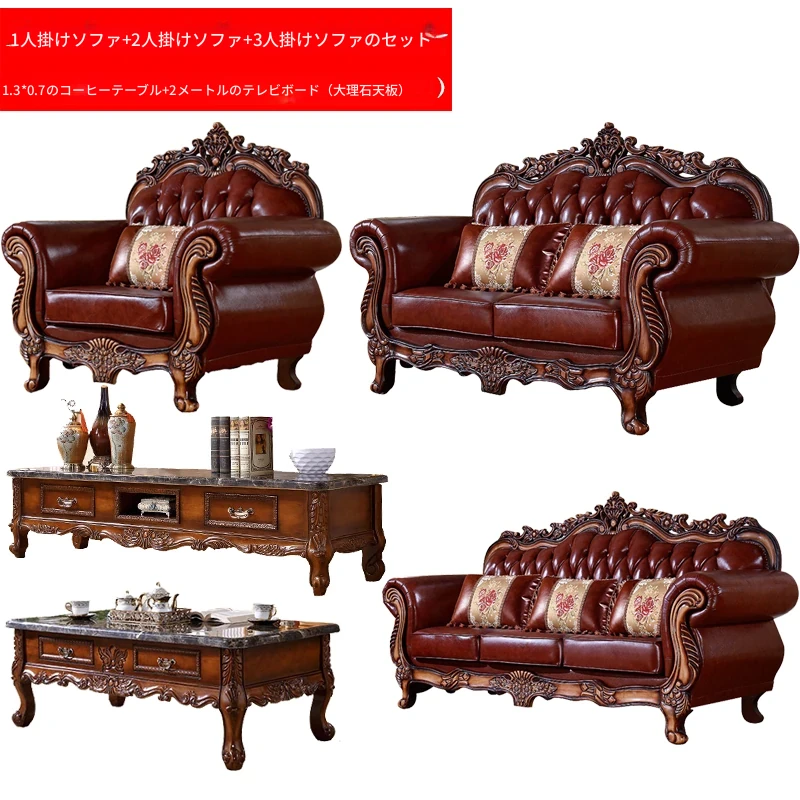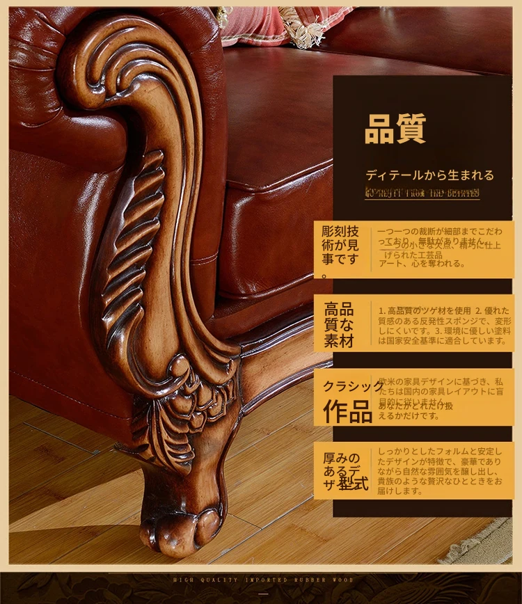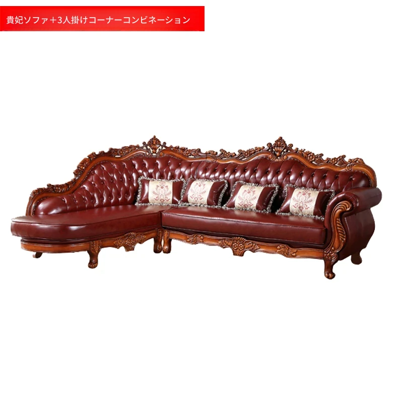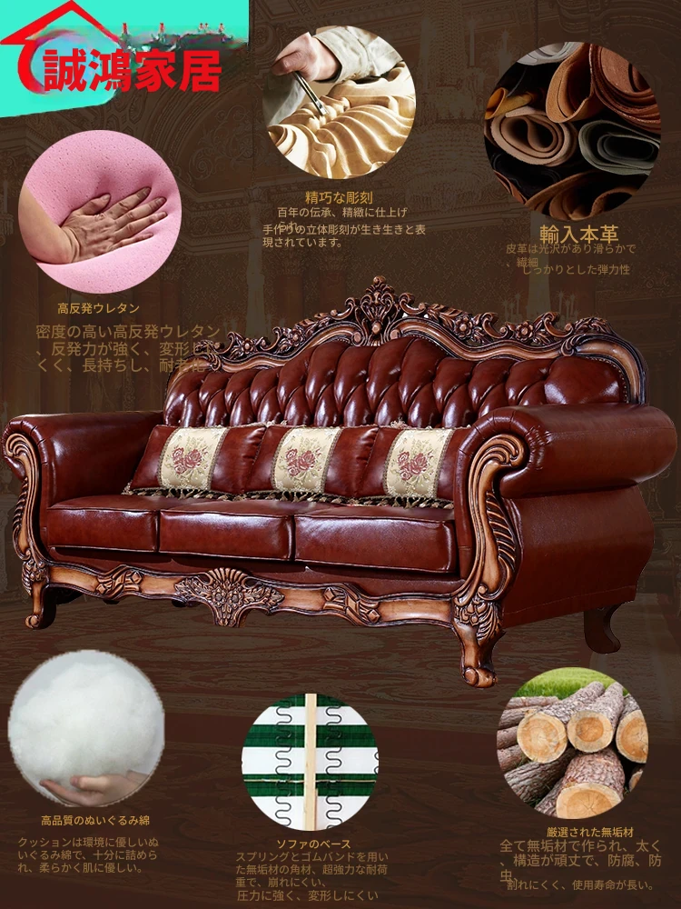 欧風本革ソファ|全てが無垢材のアメリカンスタイル|ヴィンテージ仕上げの一級牛革|ラグジュアリーで軽やかな高級家具|広々としたリビングにぴったりな豪華デザイン