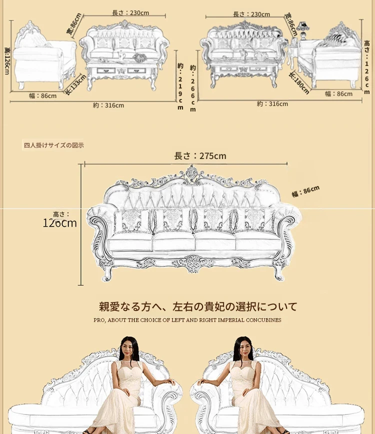1人掛け+貴妃椅子+3人掛け(無垢材・本革)