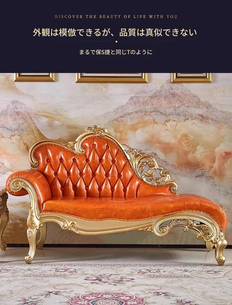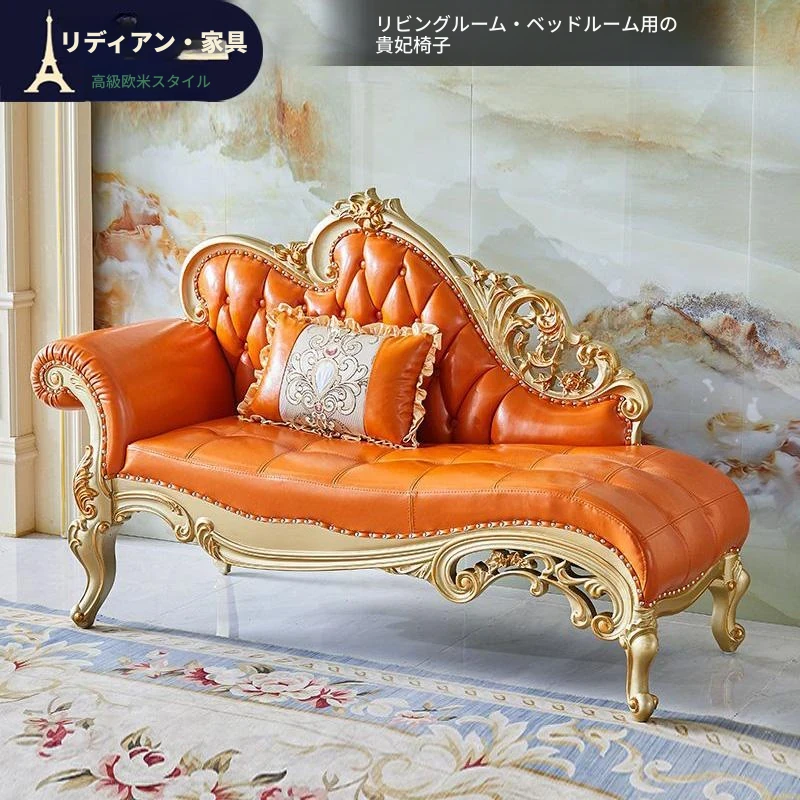 おしゃれな欧風の貴婦人椅子!本革使用の豪華な美人太妃椅子。リビングやバルコニーに最適な一人用ソファベッド、くつろぎのひとときを提供します。洗練されたデザインで、あなたの空間を引き立てます!