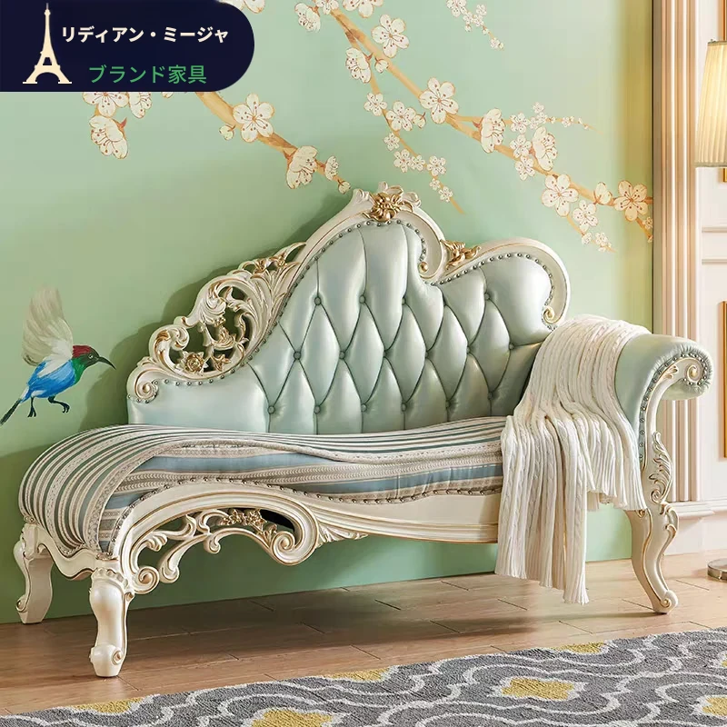 欧風の本革を使用したエレガントな貴妃椅子!アメリカンスタイルのリビングにぴったりな一人用ソファベッド。コンパクトサイズで小さなお部屋でも大活躍!快適なリラックスタイムをお届けします。