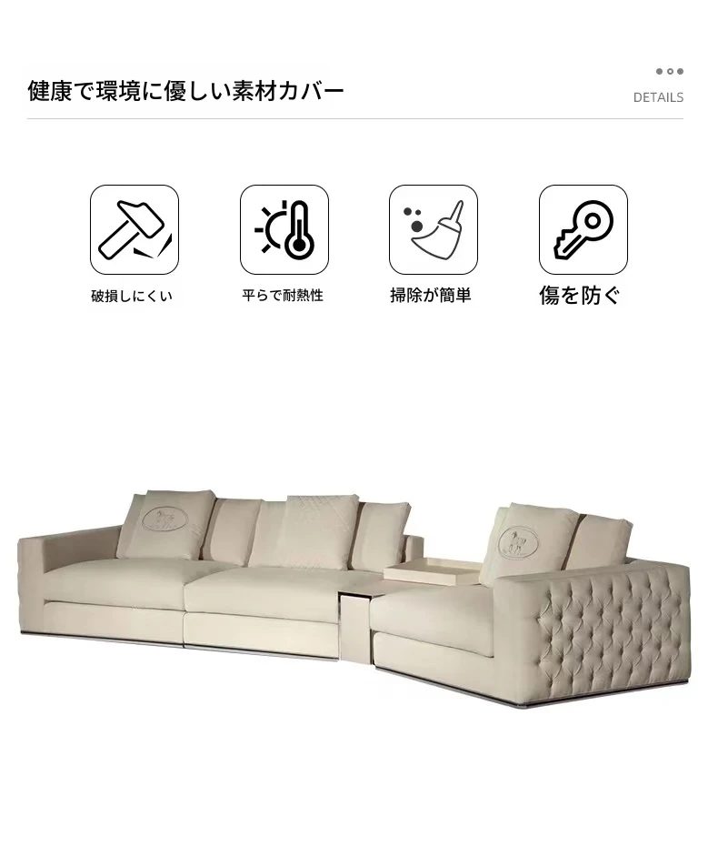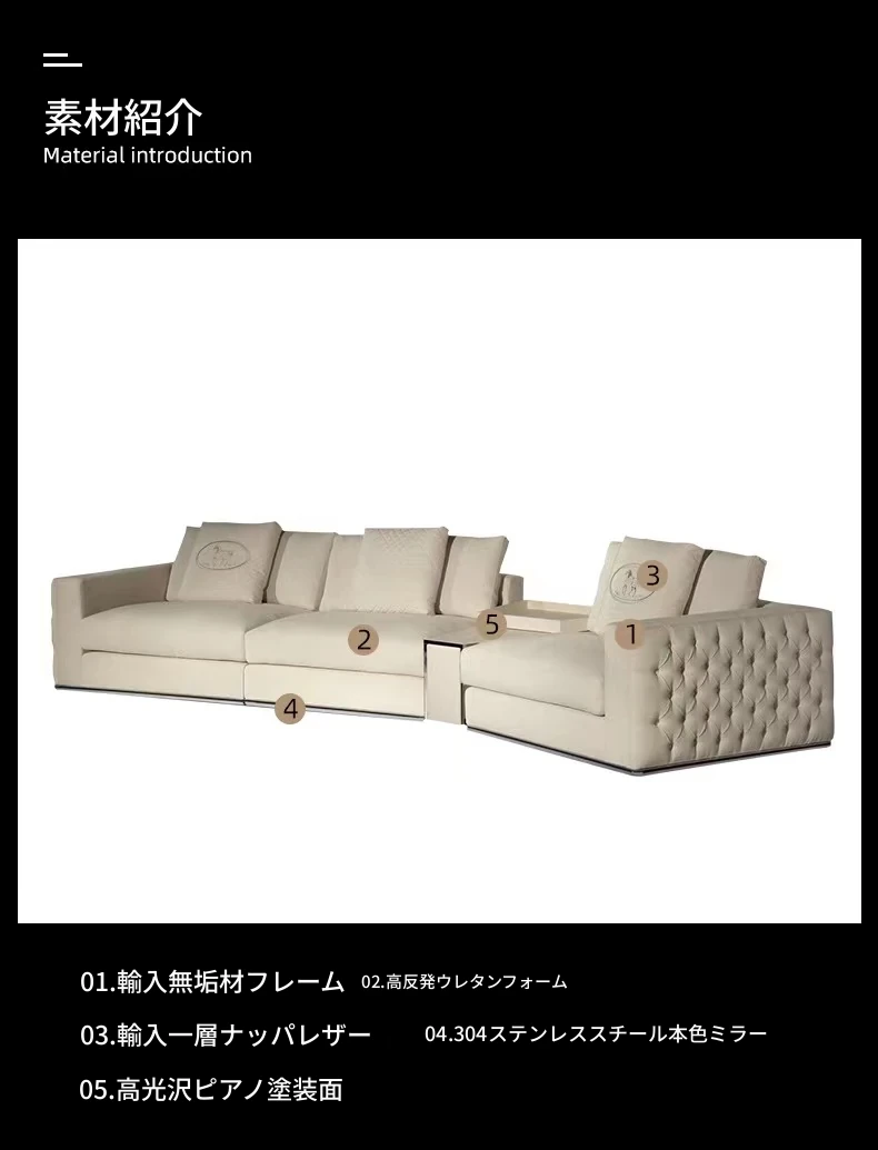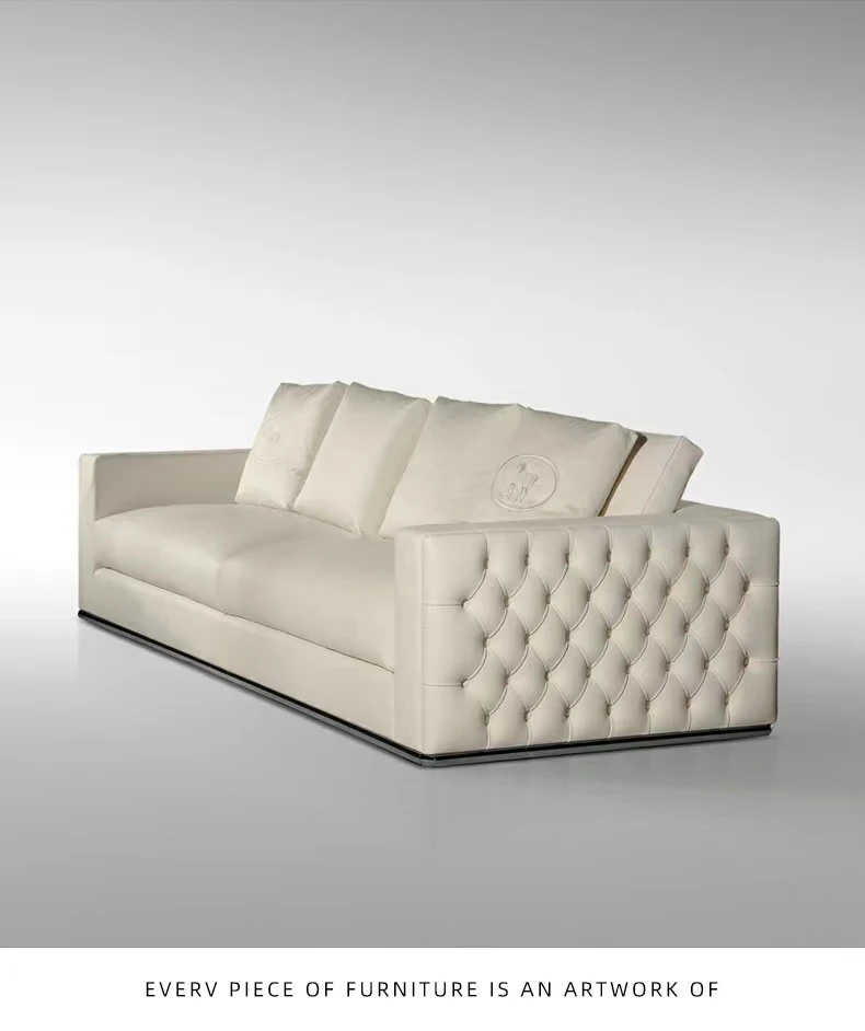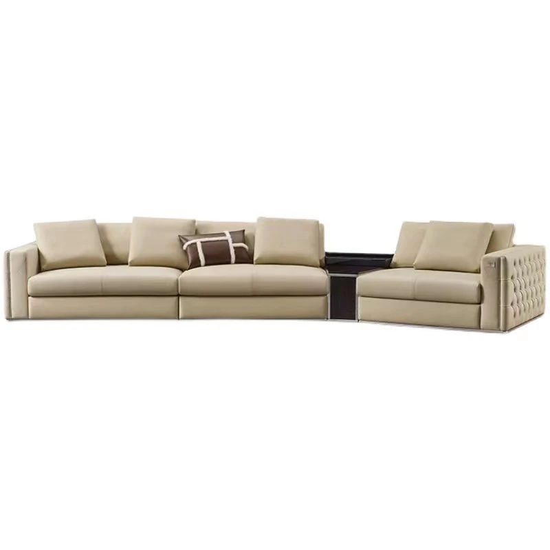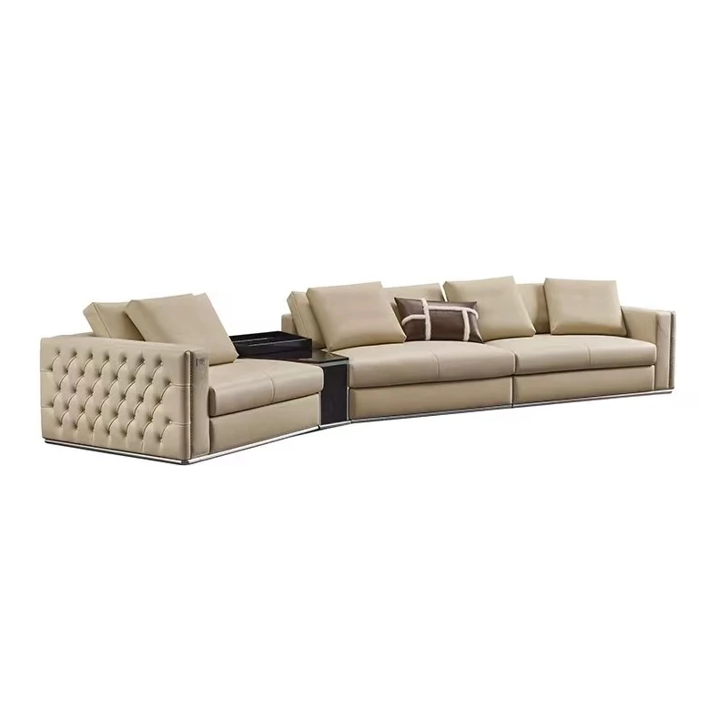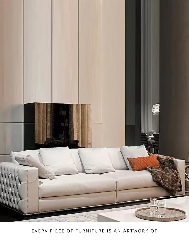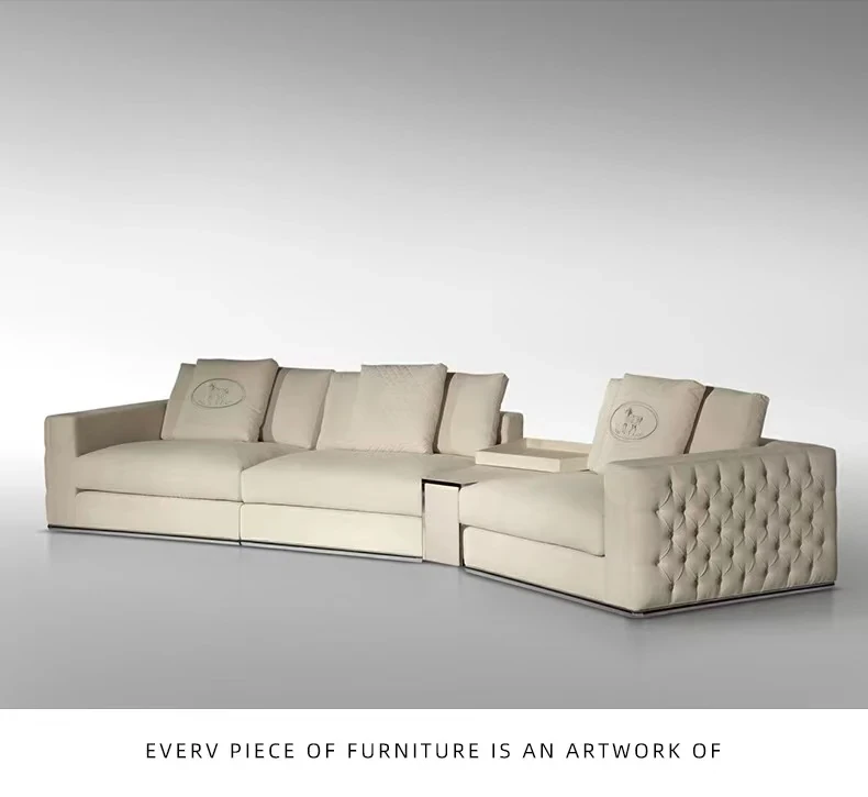 フェンディ軽奢ヴィラ向け大サイズ本革ソファー - スエード調のファブリックとラッチデザインで、洗練されたスタイルと快適な座り心地を実現。モデルルームにもぴったりな高級感あふれる家具です。