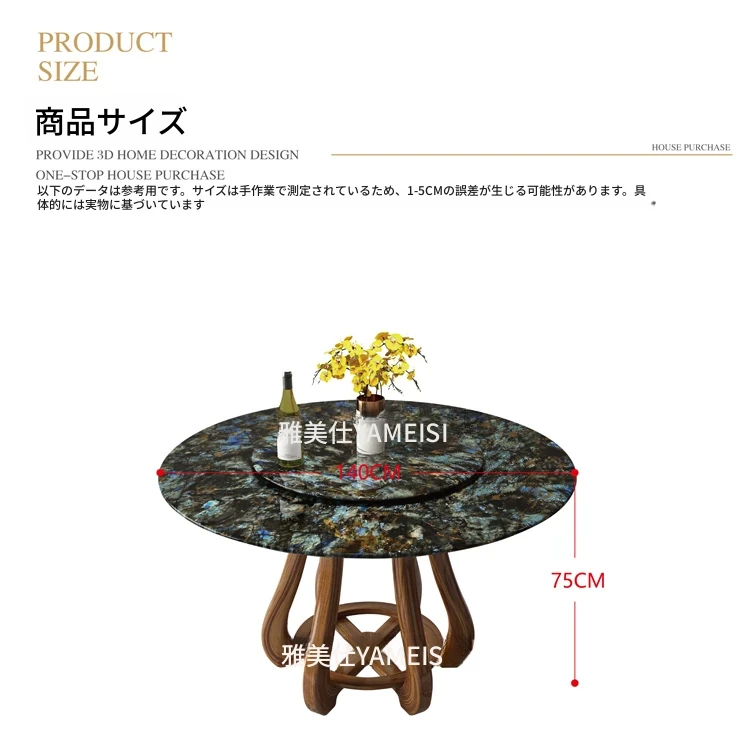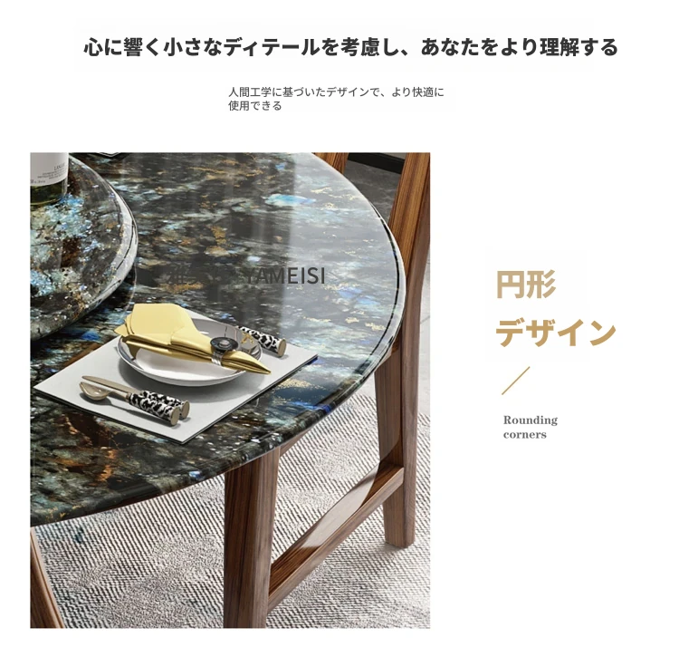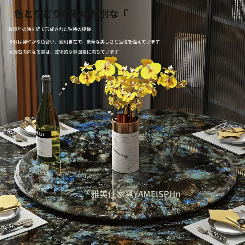 ジェファンシー大理石円卓 無垢材ダイニングテーブル 回転式プレート付き 家庭用 シンプルでエレガントなデザイン IH対応 快適な食事空間を演出するラグジュアリーな円形テーブル