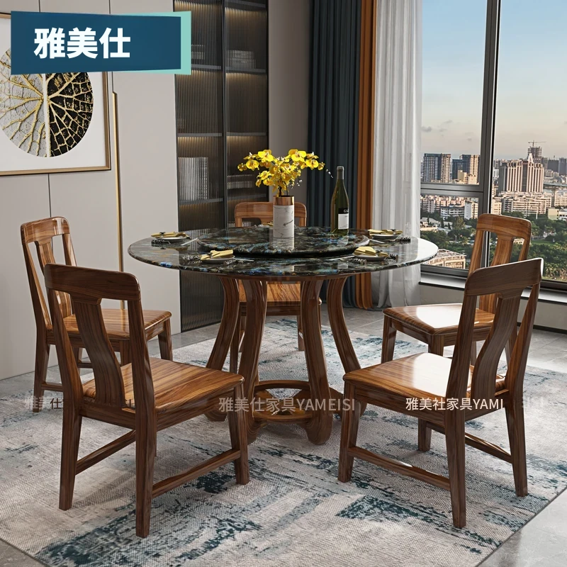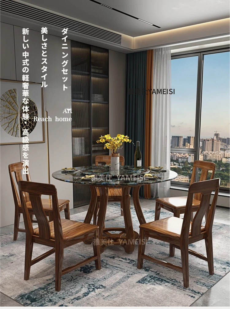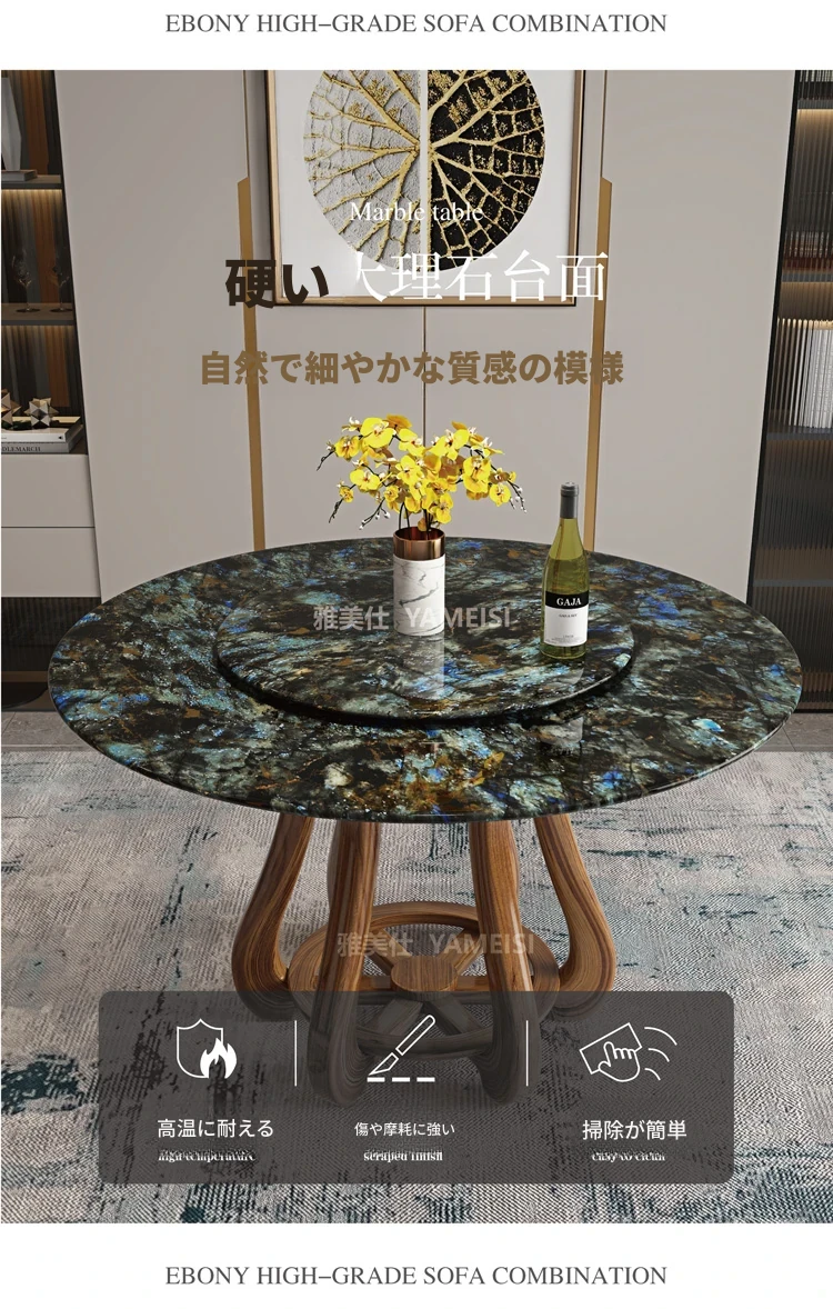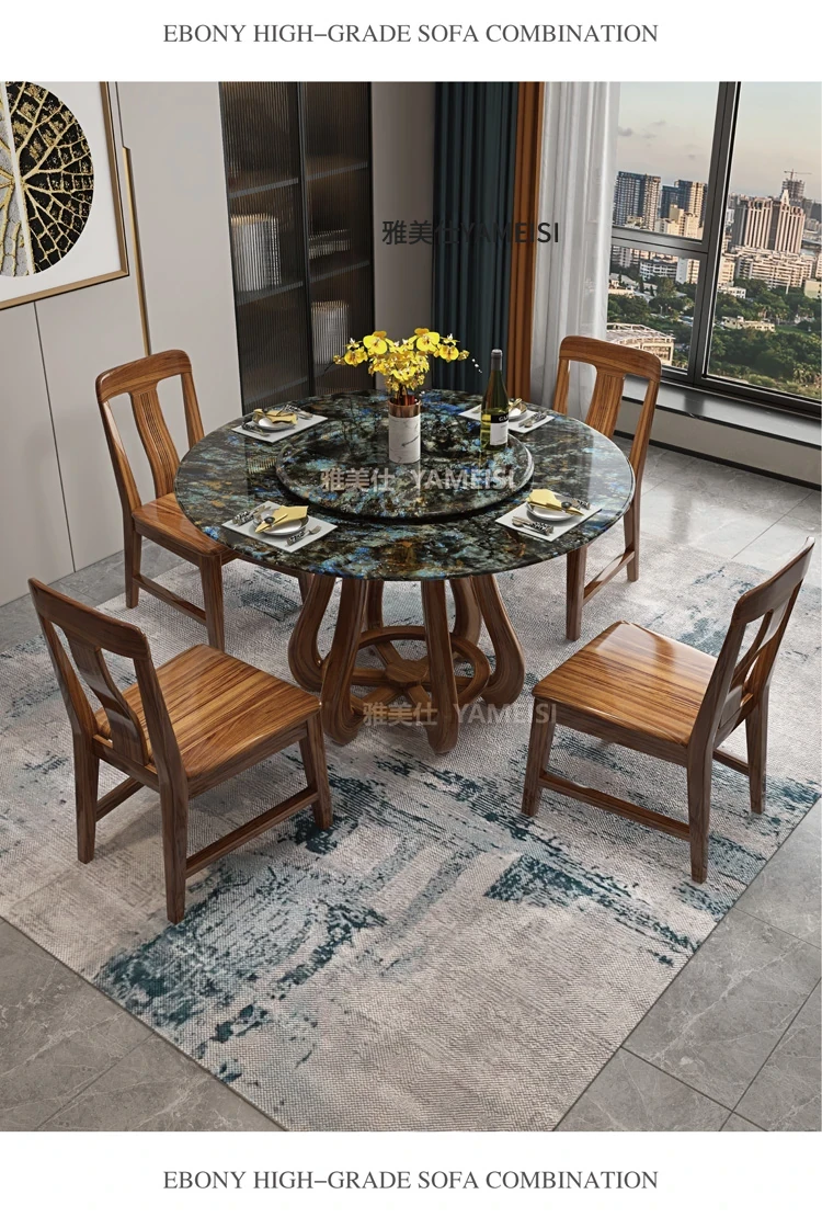 佛山ウッディーウッド(黒檀)ダイニングテーブルセット モダンシンプル 大型大理石ラウンドテーブル 高級感あふれる食卓で、家族や友人との素敵な時間をお楽しみください!