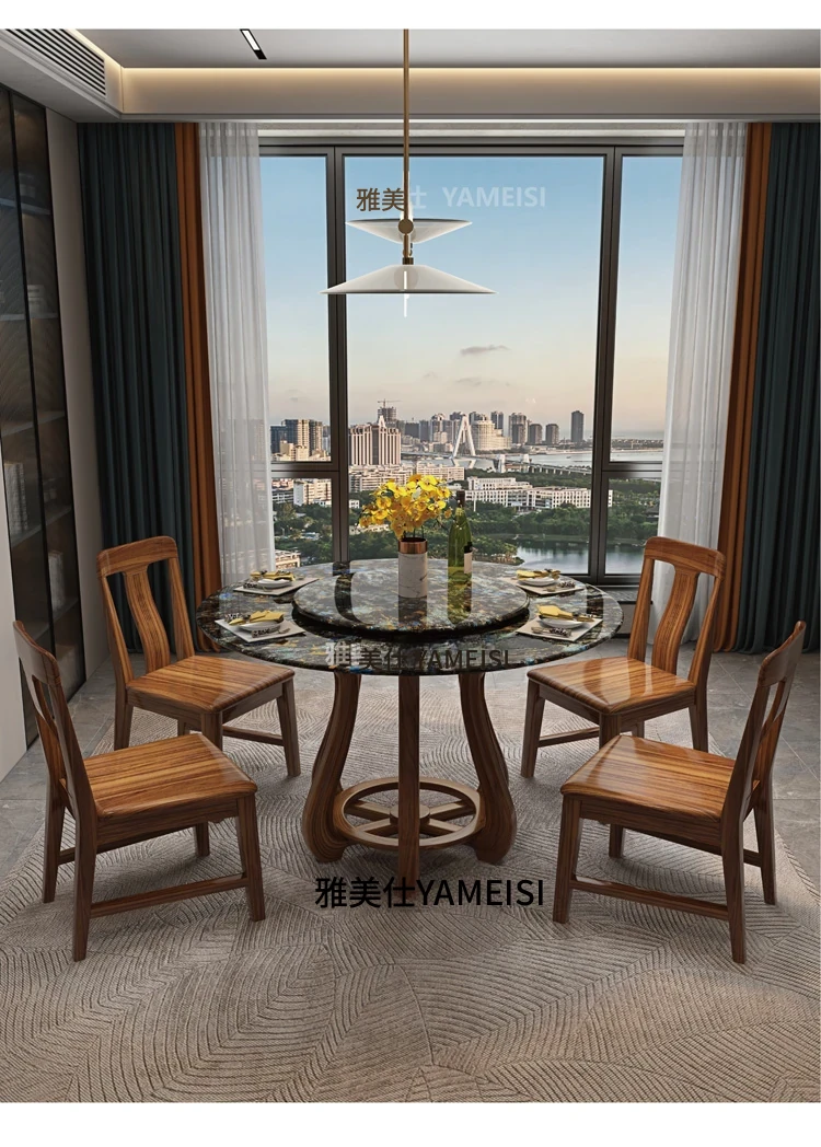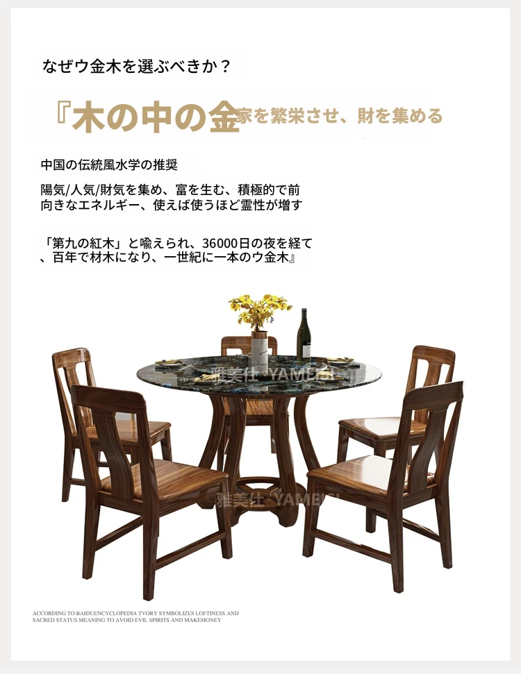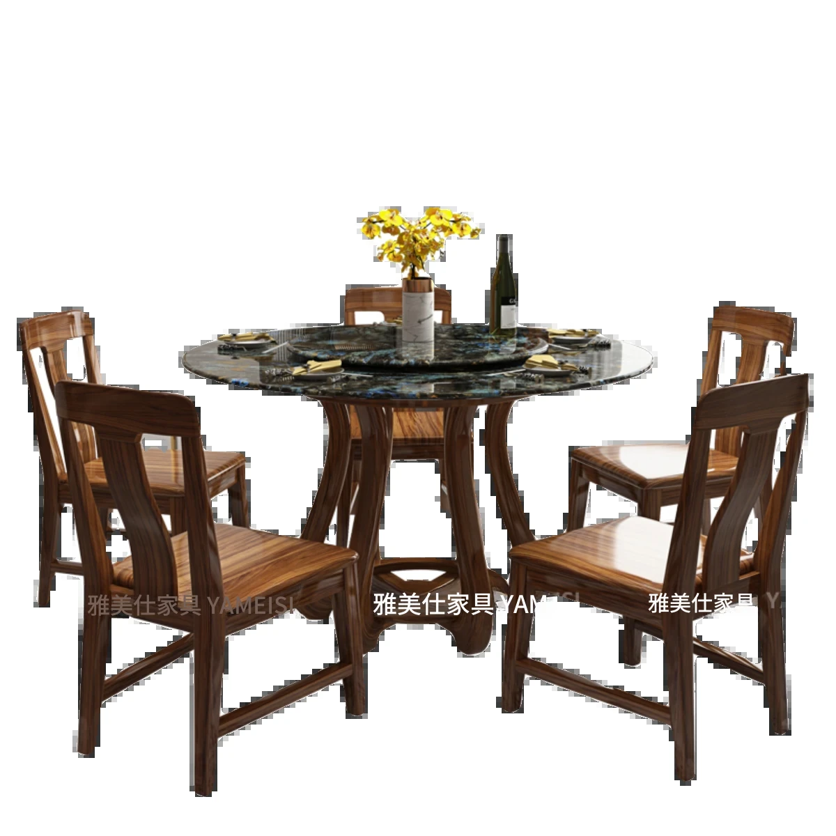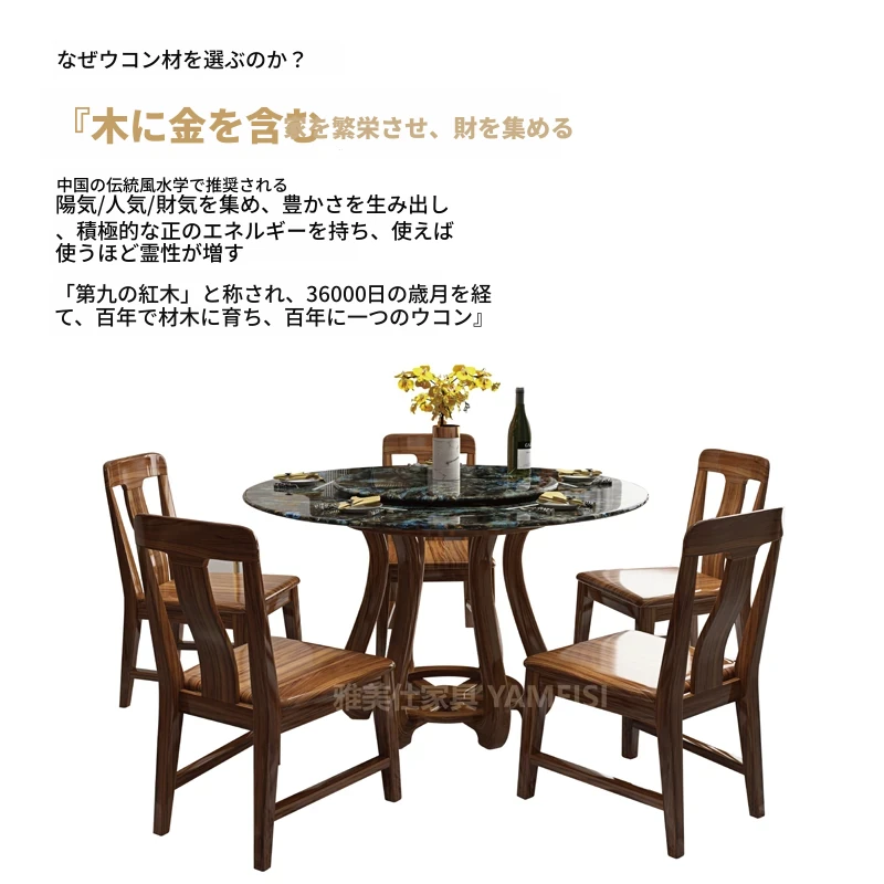 佛山ウッディーウッド(黒檀)ダイニングテーブルセット モダンシンプル 大型大理石ラウンドテーブル 高級感あふれる食卓で、家族や友人との素敵な時間をお楽しみください!