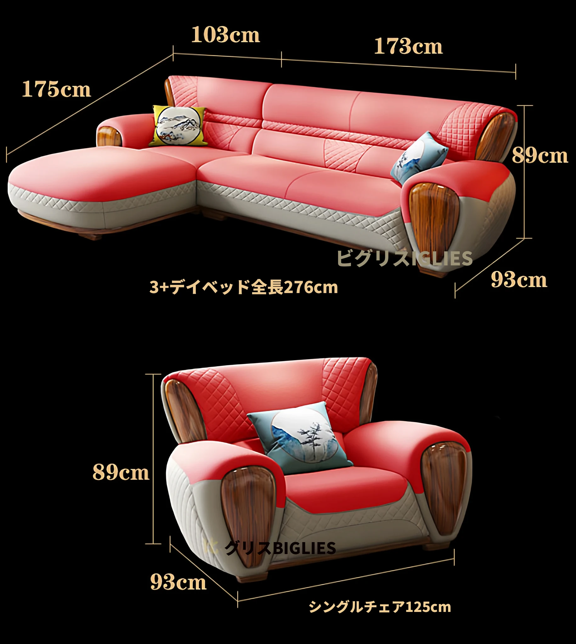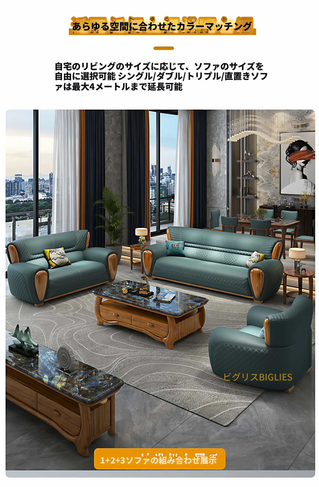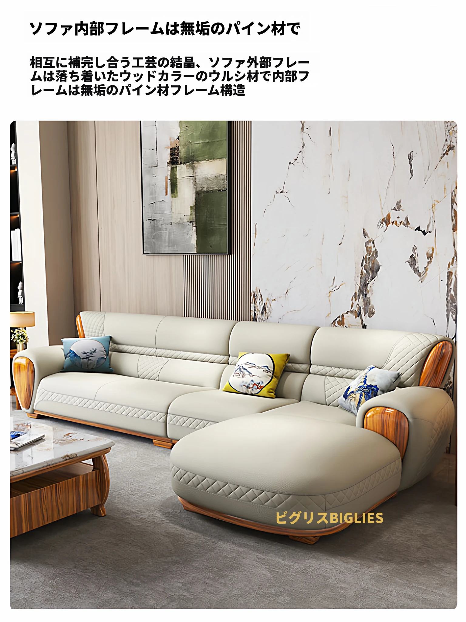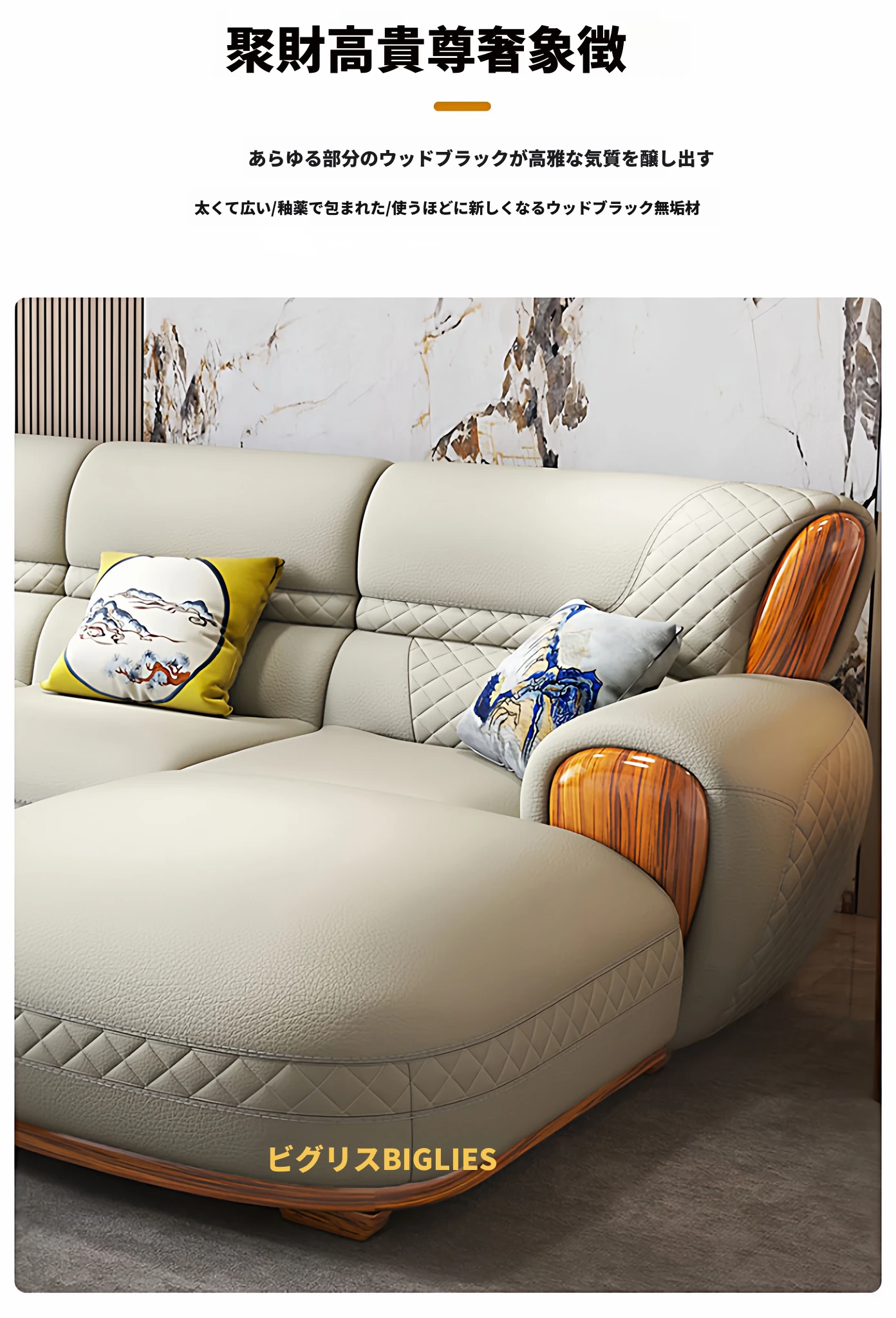 3+右カウチ【ウッドブラック加厚2.0本革】
