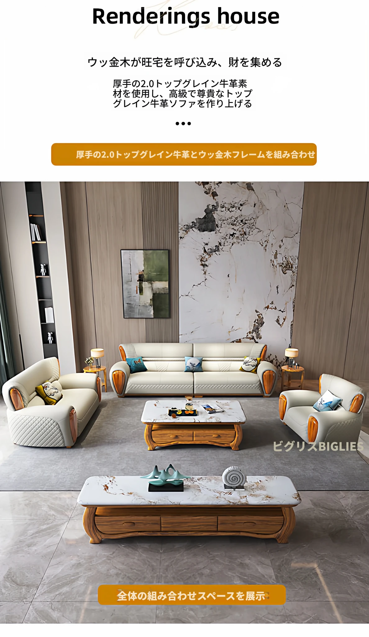 4人用【ウッドブラック加厚2.0トップグレイン牛革】