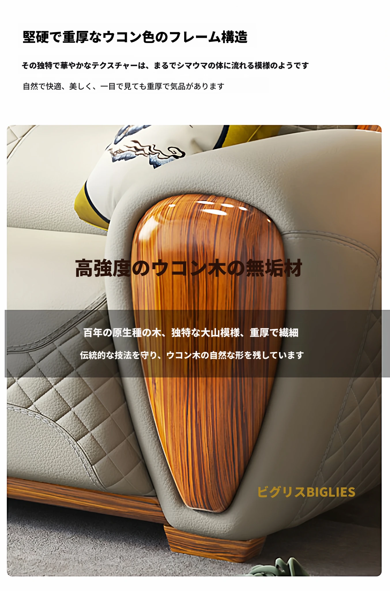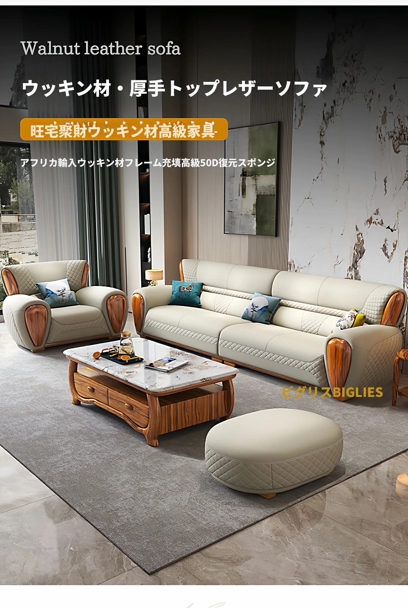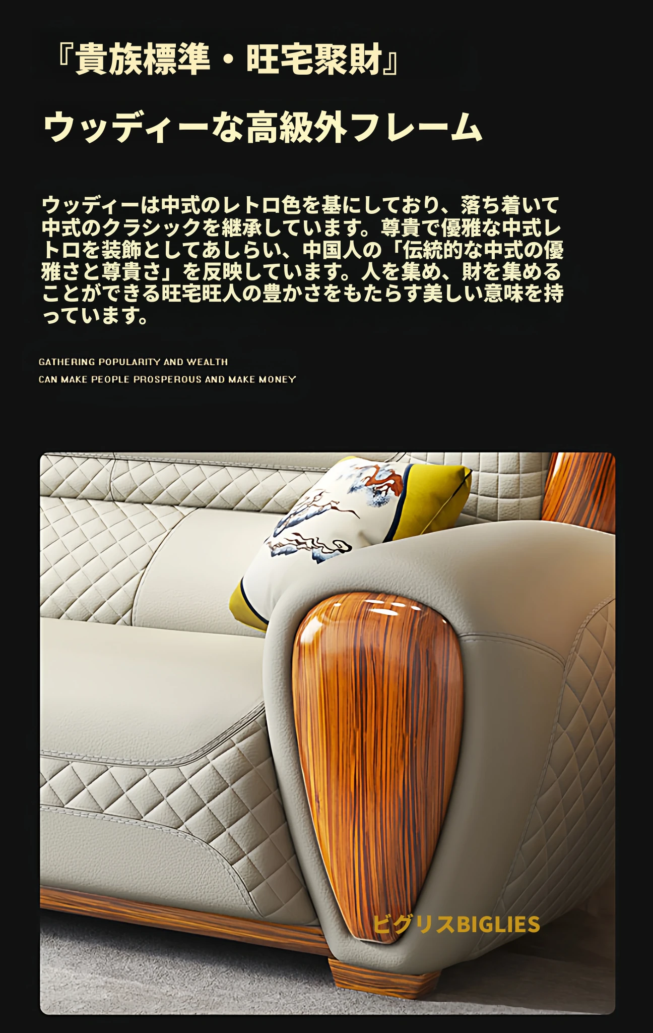 3人用【ウッドブラック加厚2.0トップグレイン牛革】