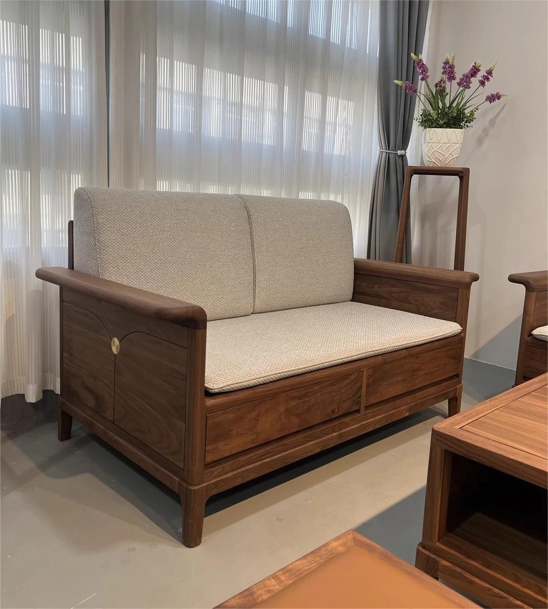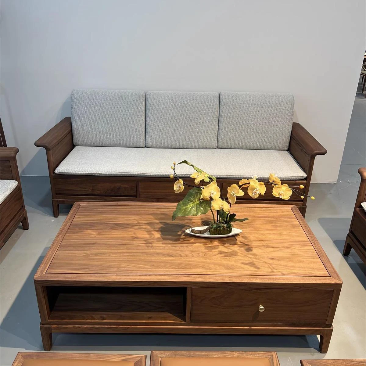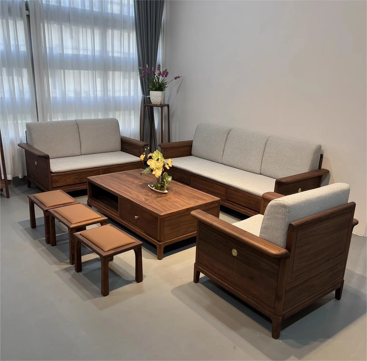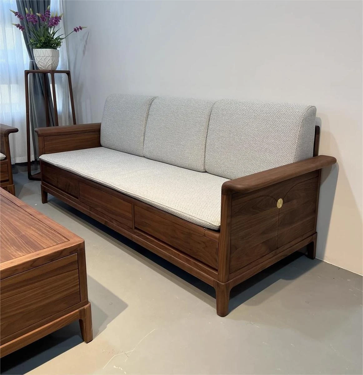 新疆送料無料!新中式スタイルの黒胡桃木製ソファセット。実木と禅の美が融合した、居心地の良いリビング空間を演出する布製ソファ。あなたの家にぴったりのソフトインテリア!