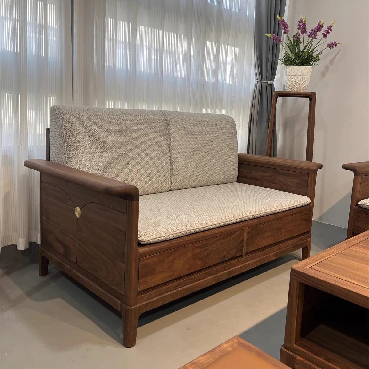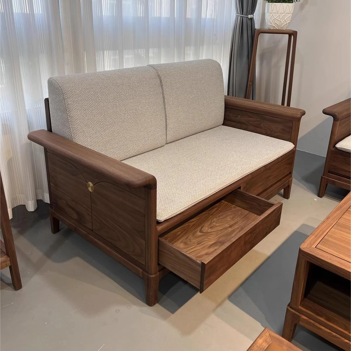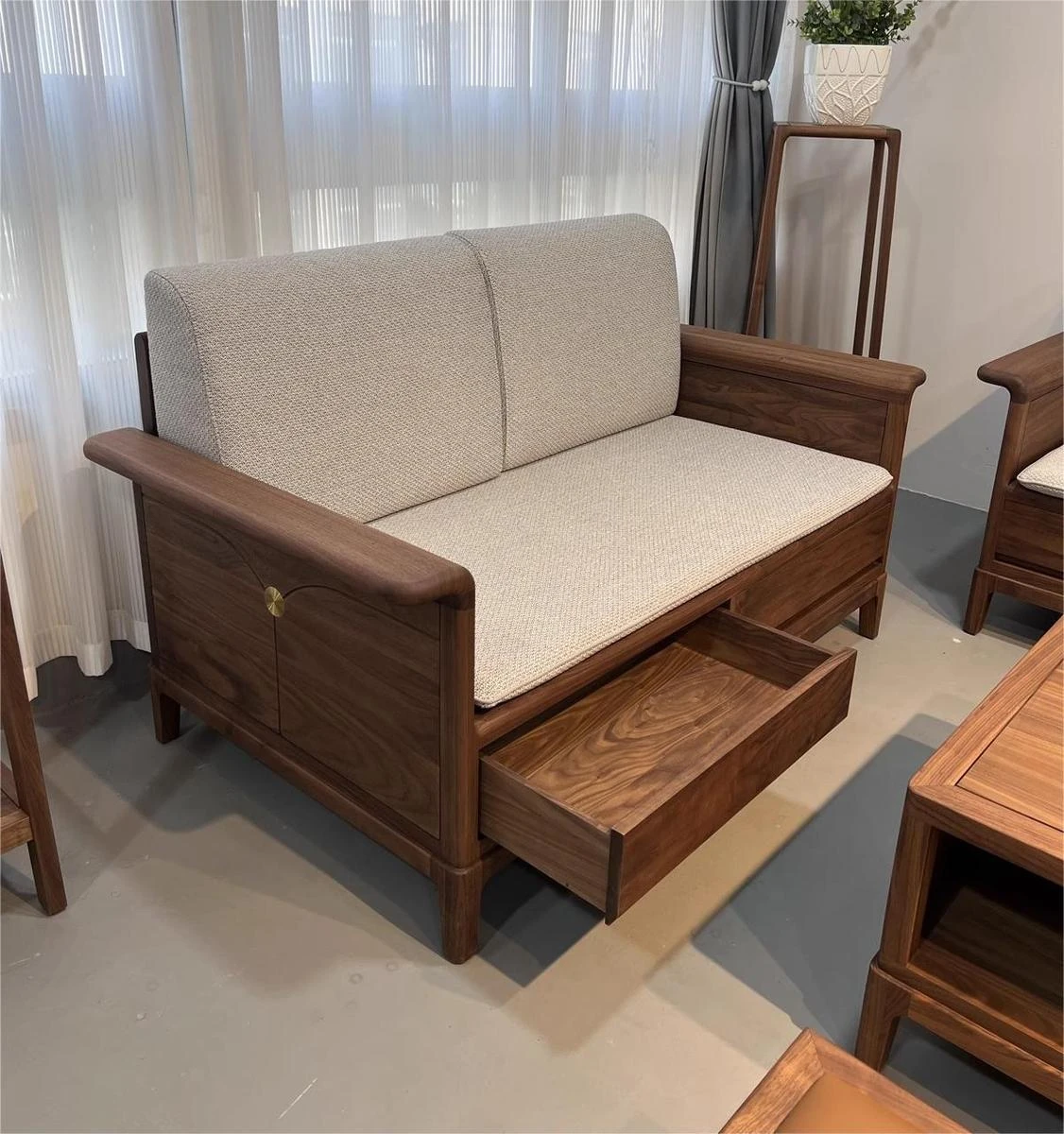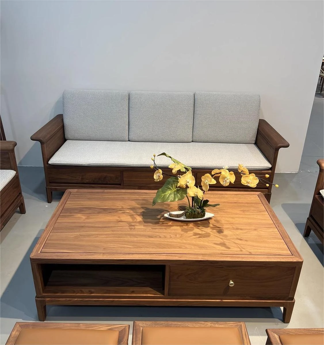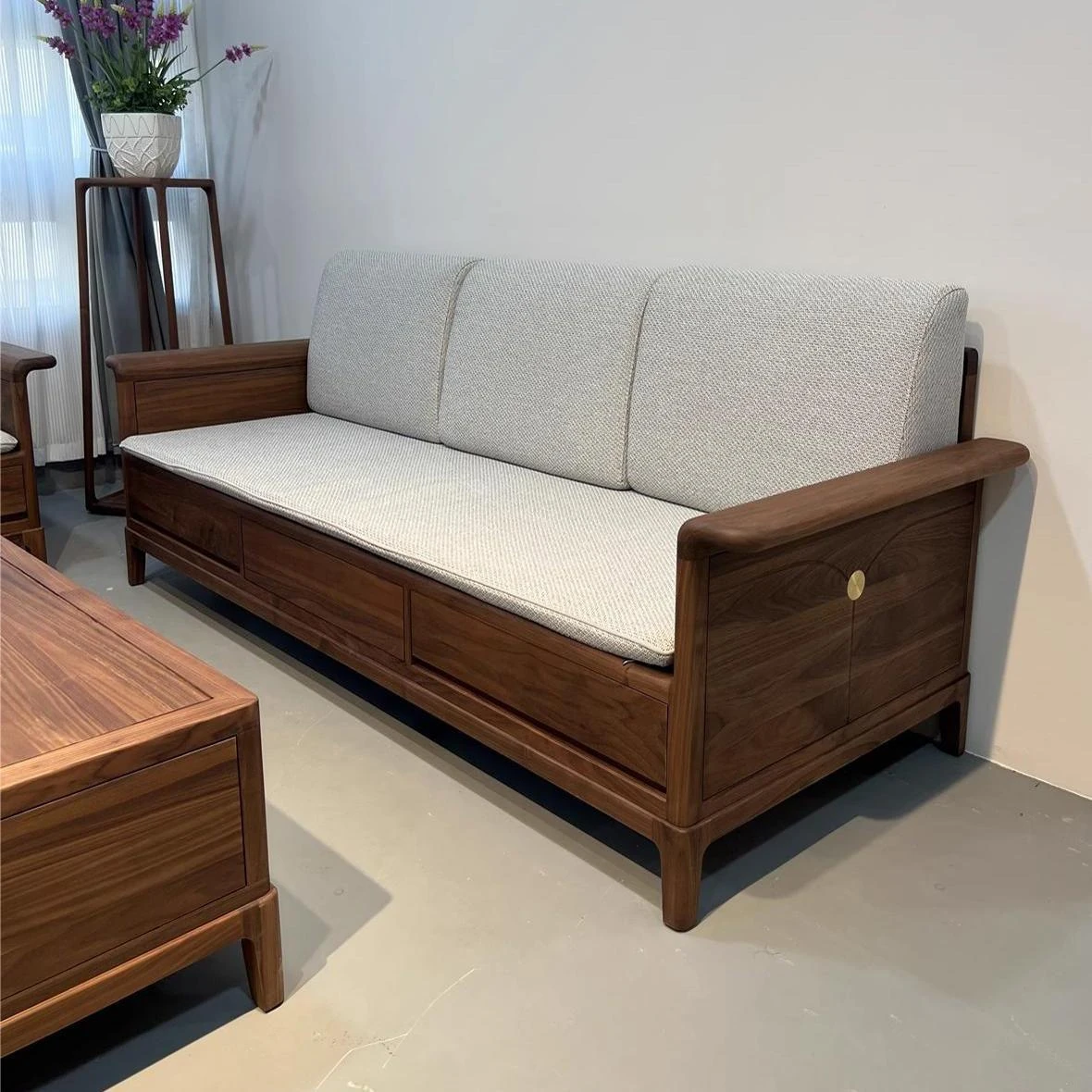 新疆送料無料!新中式スタイルの黒胡桃木製ソファセット。実木と禅の美が融合した、居心地の良いリビング空間を演出する布製ソファ。あなたの家にぴったりのソフトインテリア!