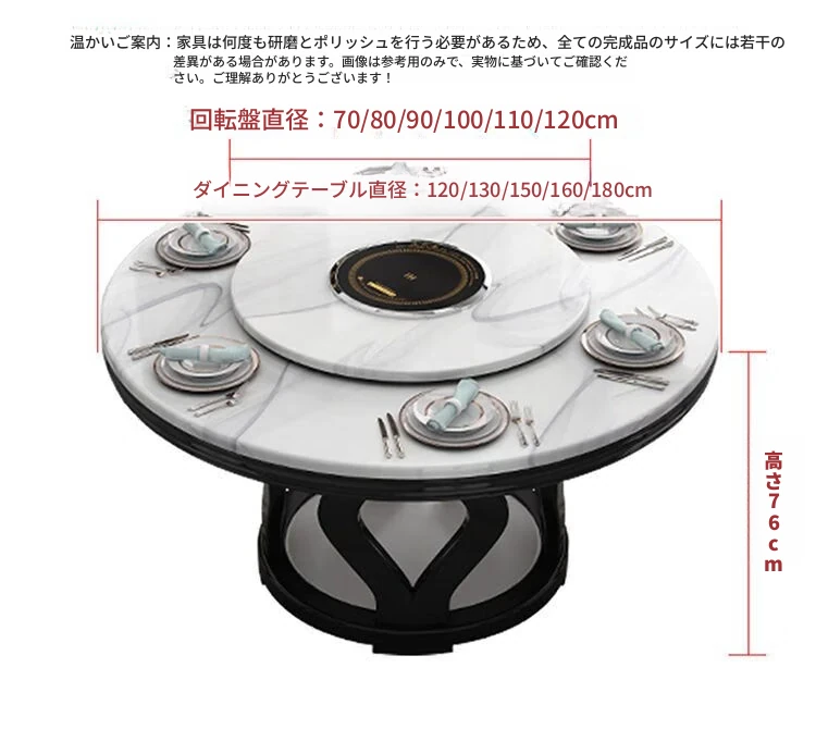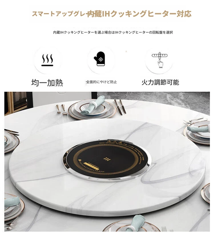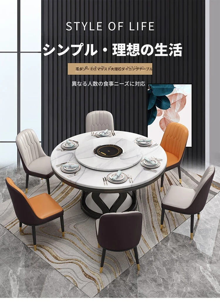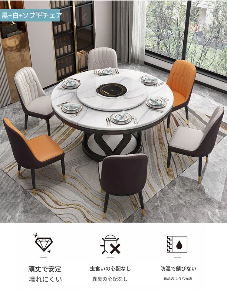 1.3メートルのダイニングテーブル+8椅子(回転盤付き電磁調理器)