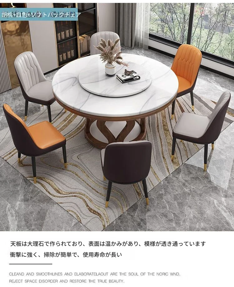 1.2メートルのダイニングテーブル+6椅子(回転盤付き)
