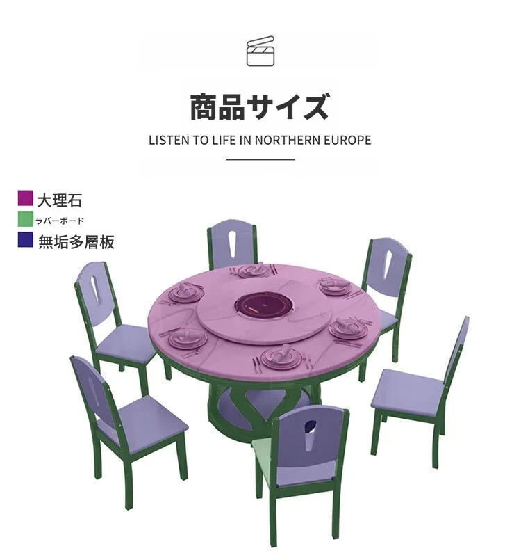 1.3メートルのダイニングテーブル+6椅子(回転盤付き電磁調理器)