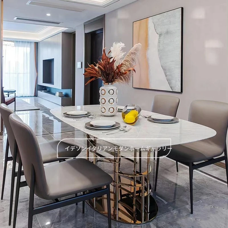 HC28エレガントダイニングテーブル - ホワイトマーブルの長方形、イタリアンミニマリズムデザイン。1.8m / 2.4mのサイズ展開で、あなたのダイニングルームに洗練された雰囲気をプラス!