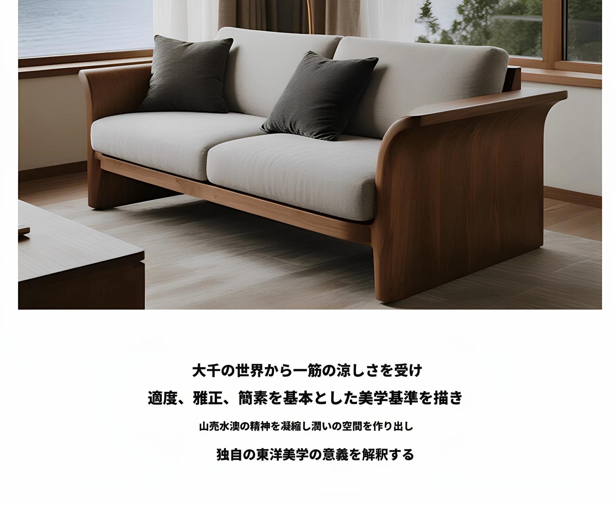 新中式禅の白蜡木ソファ - 高級感あふれる軽奢スタイル、北米産ブラックウォルナット無垢材使用のリビング家具で、心地よいくつろぎの空間を演出します。