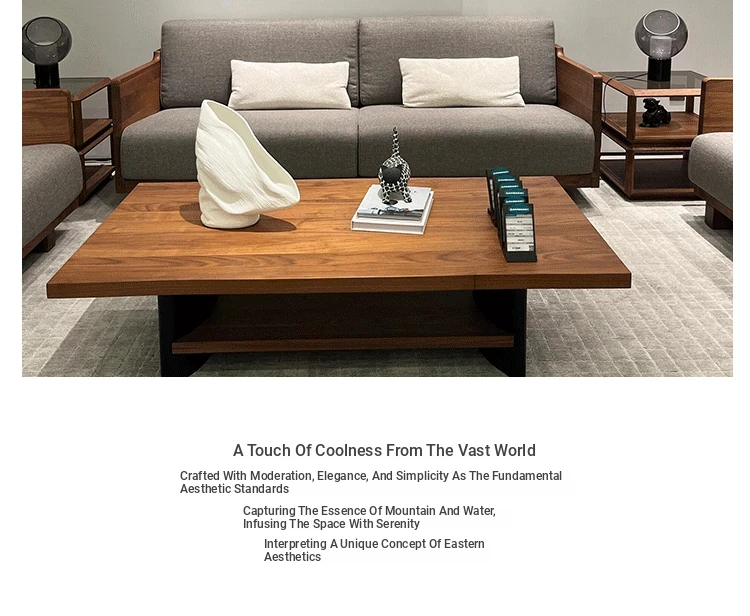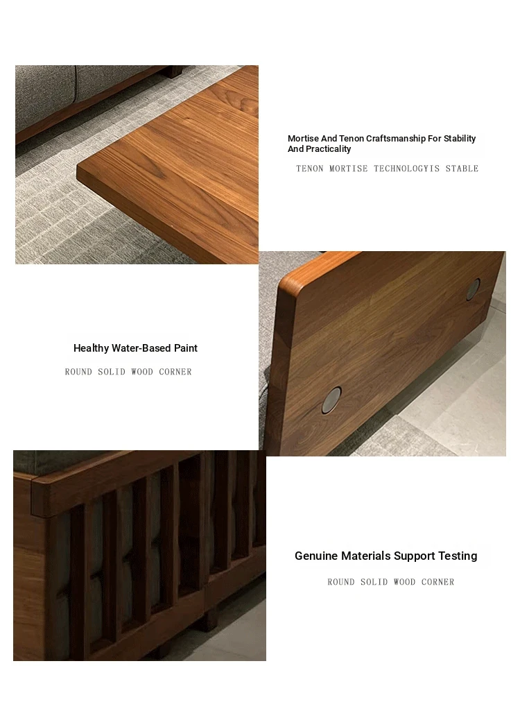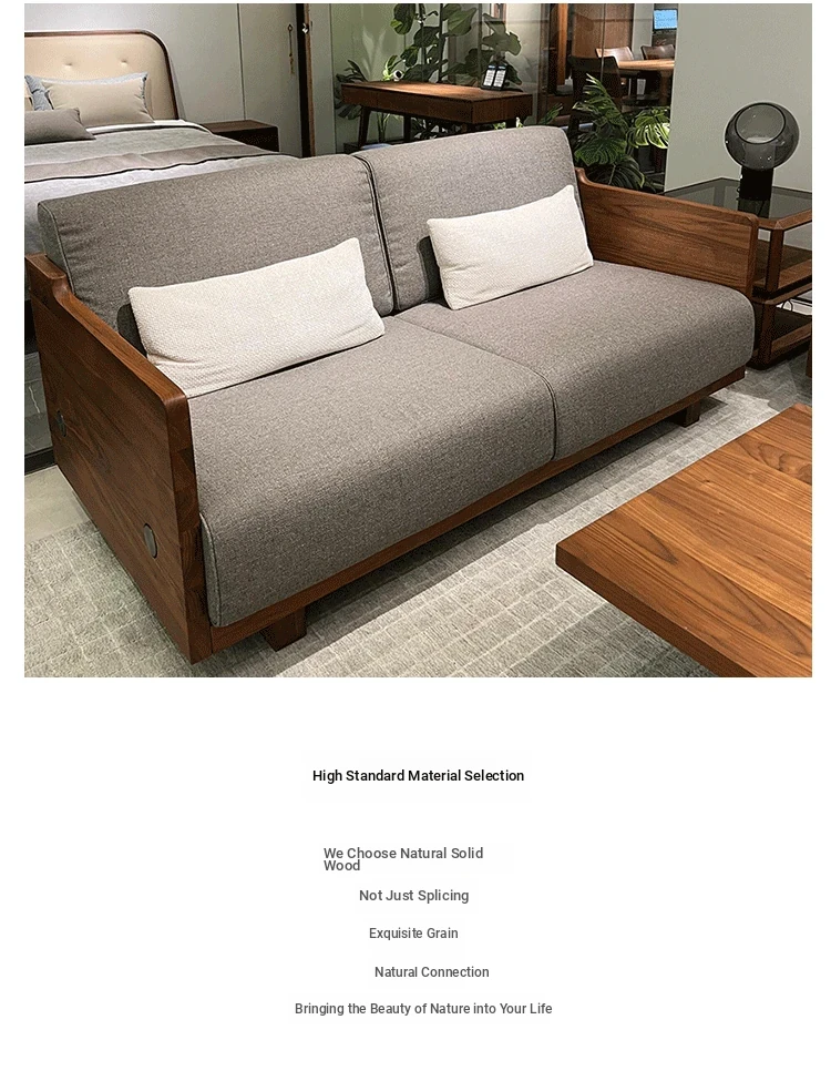 High-End Minimalist Zen Style Ash Wood Sofa - Luxurious Home Living Room Furniture in North American Walnut - Elegant Solid Wood Design for Modern Spaces