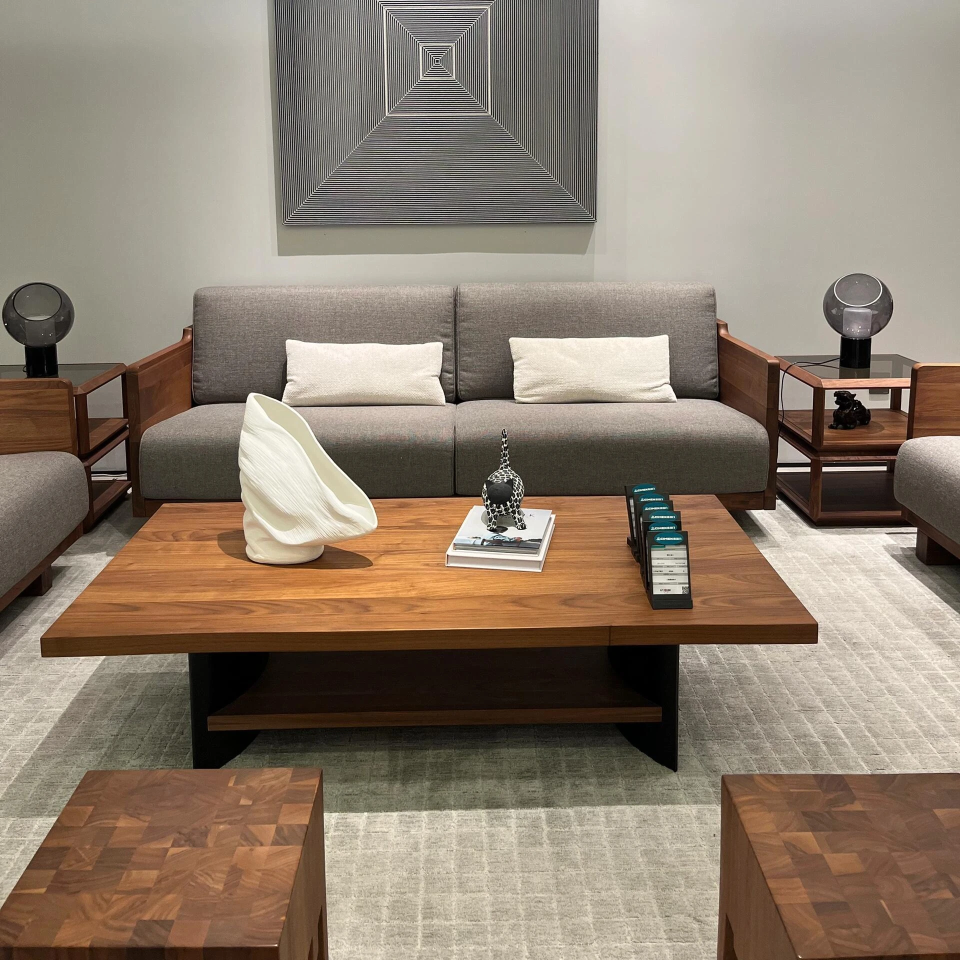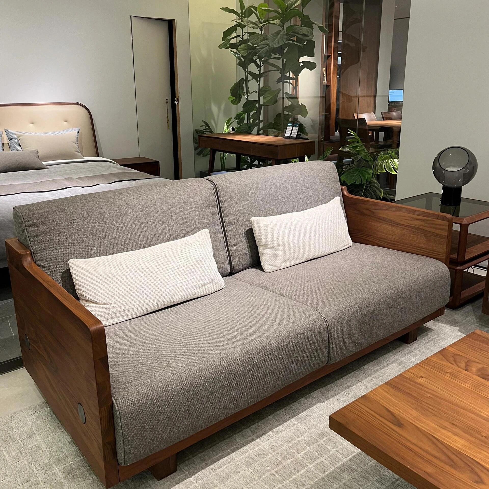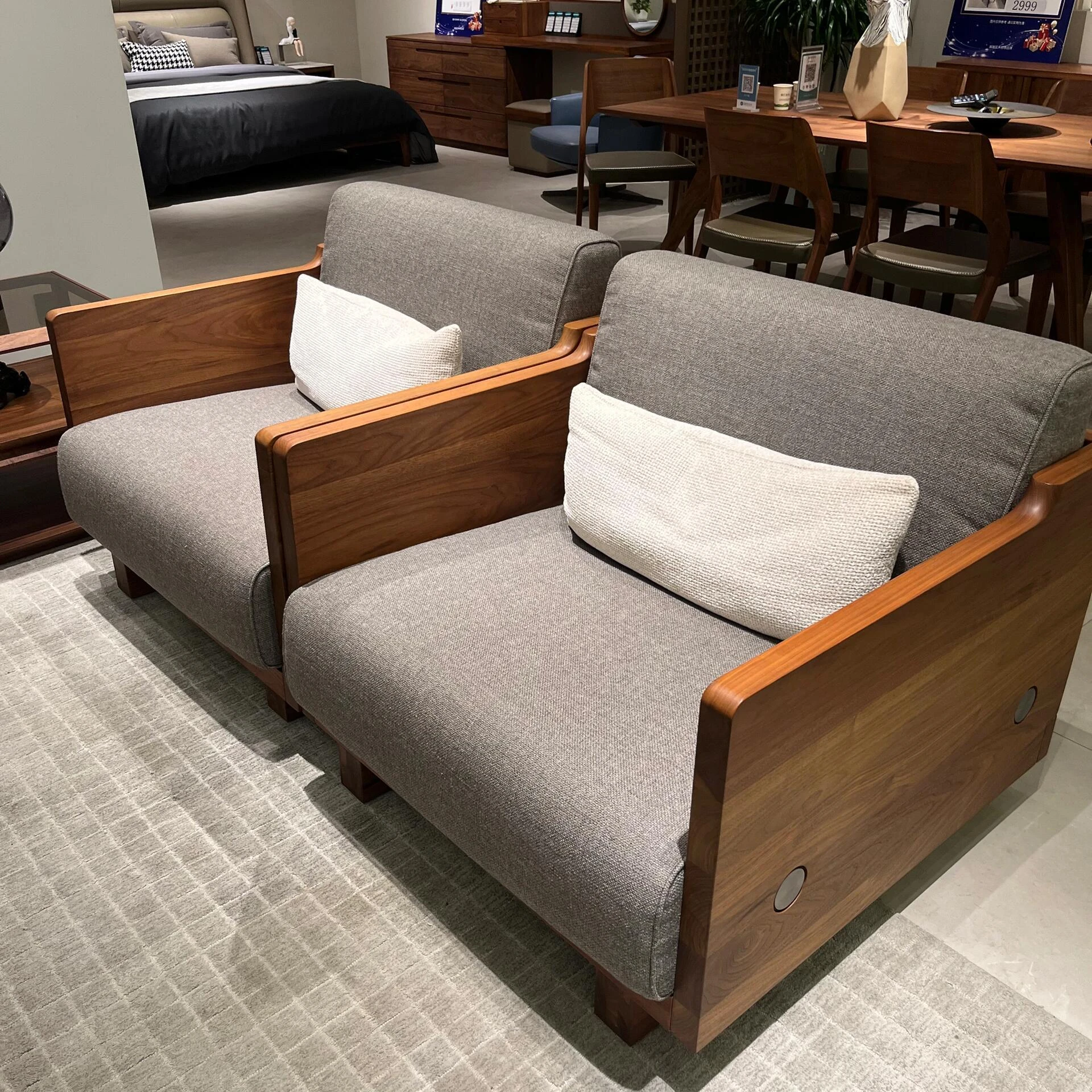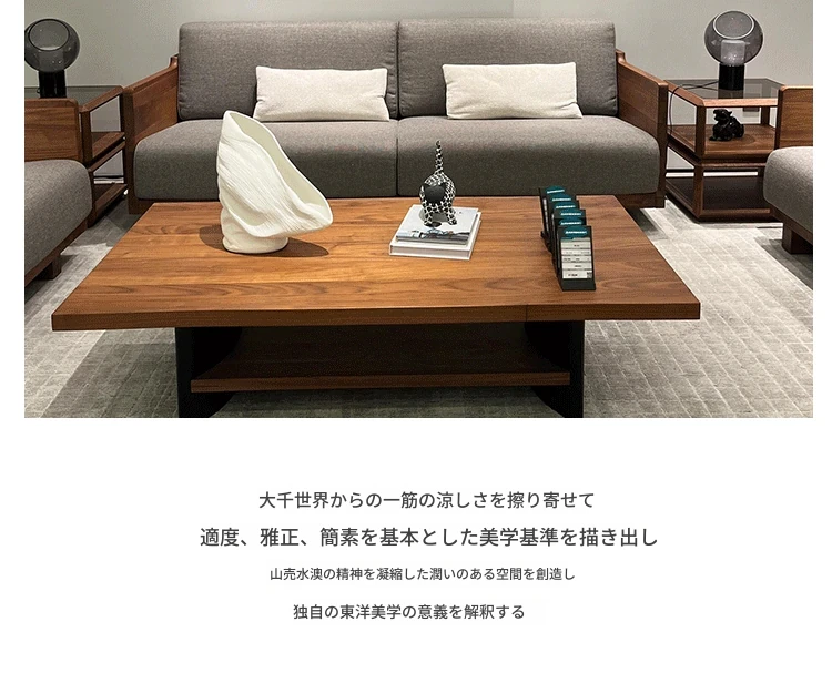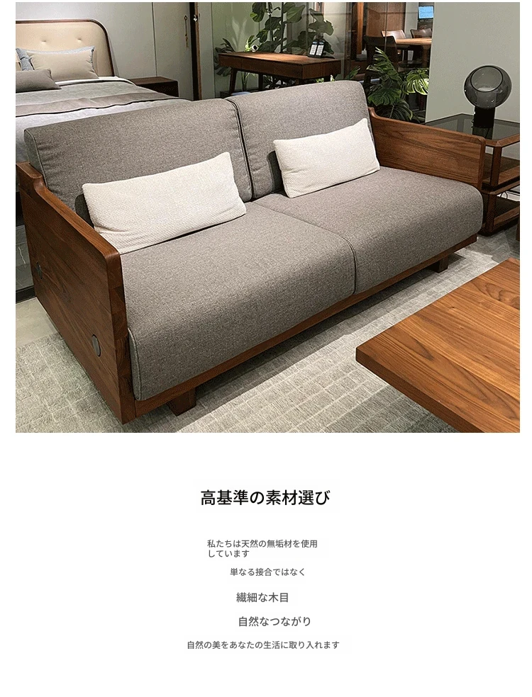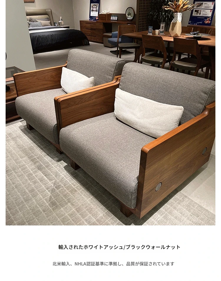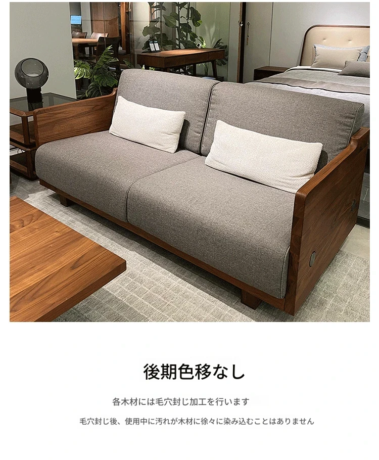 新中式禅風白蜡木ソファー - 高級感溢れる軽やかなデザイン。北米産黒胡桃の直材使用で、上質なリビング空間を演出。おしゃれでありながら心安らぐ空間を手に入れましょう!