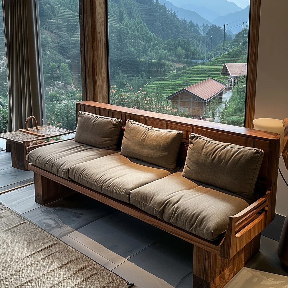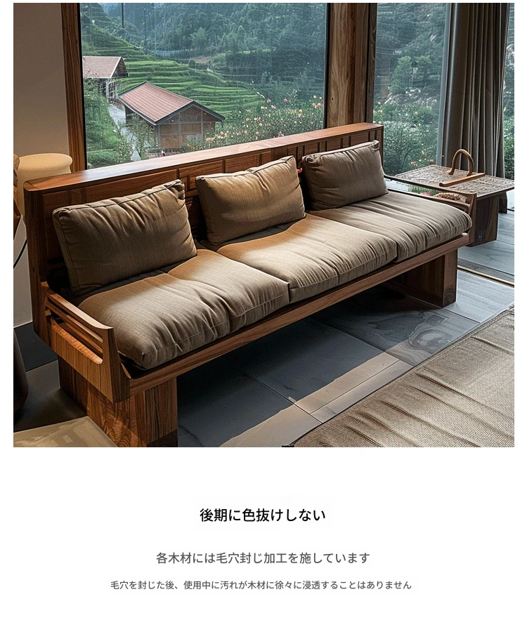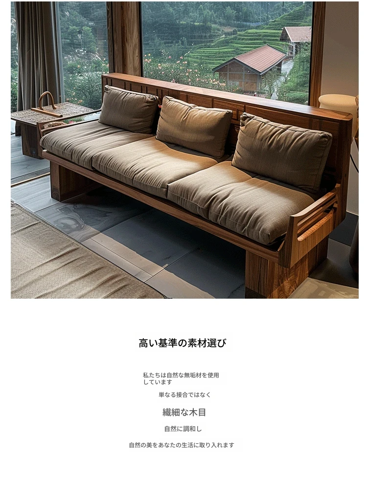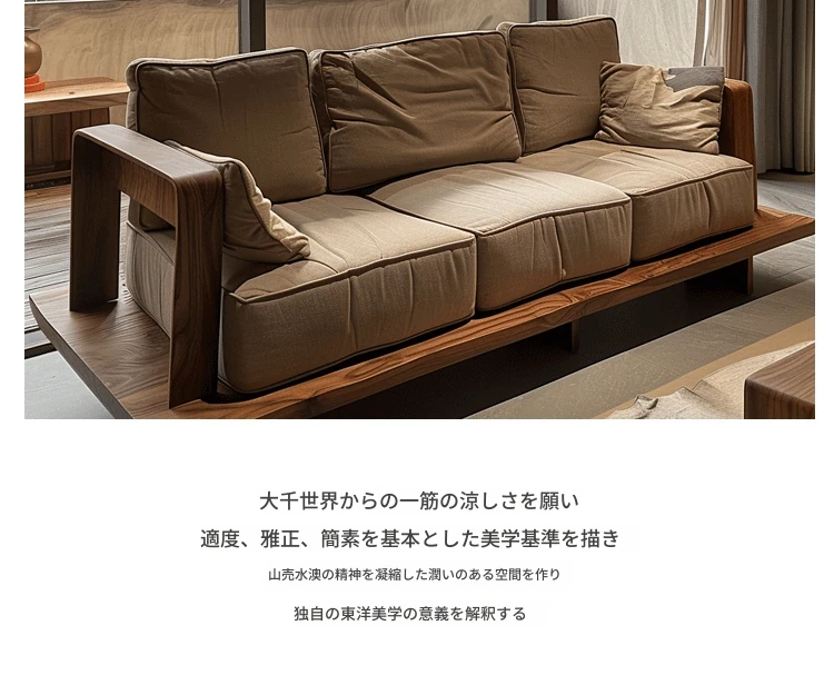 新中式禅スタイルのホワイトアッシュソファ - 高級感溢れるリビング用、北米産ブラックウォールナット直営無垢材家具。心安らぐ空間を演出し、洗練された生活をお楽しみください!