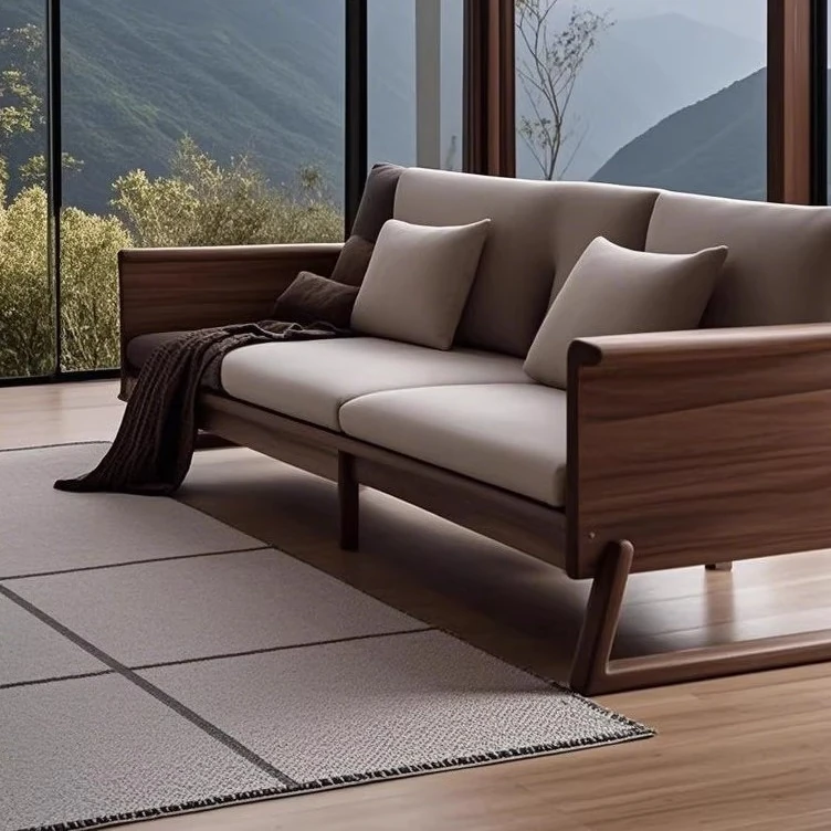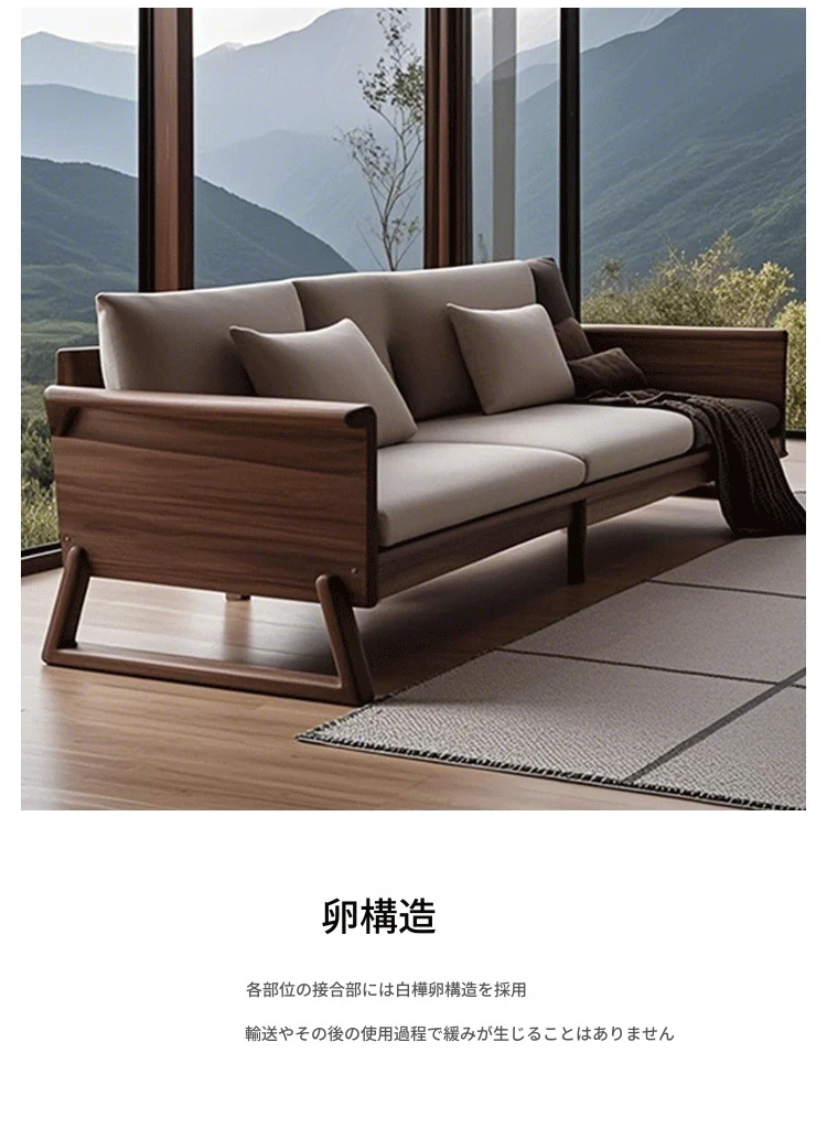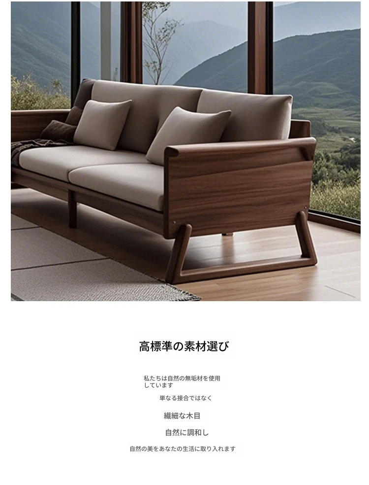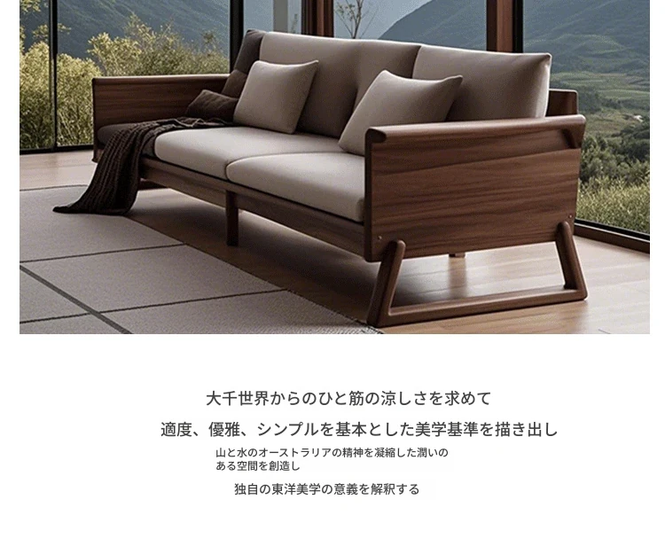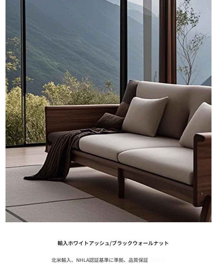 新中式禅スタイルの高級ホワイトアッシュソファ - ラグジュアリーな北米ブラックウォールナット無垢材のリビングルーム家具で、心地よい安らぎを提供します。
