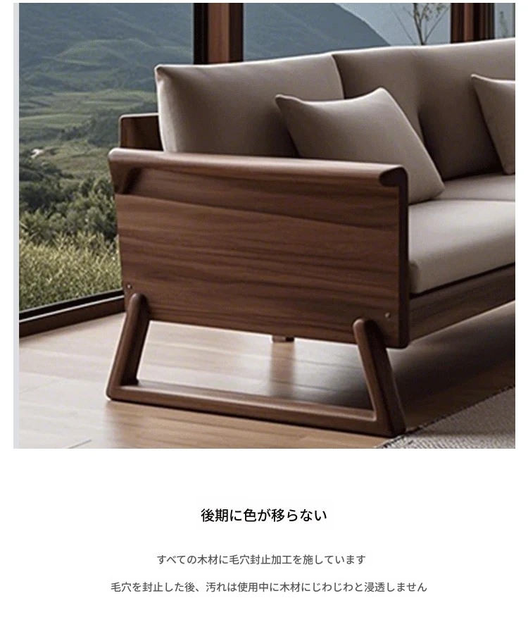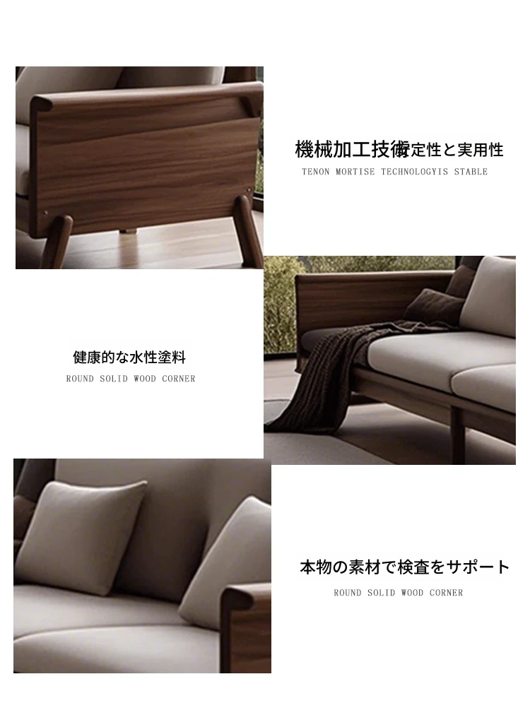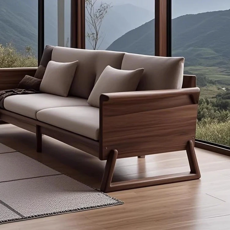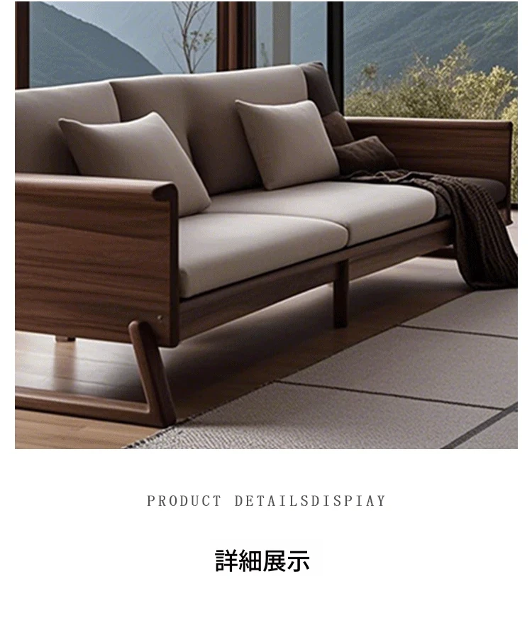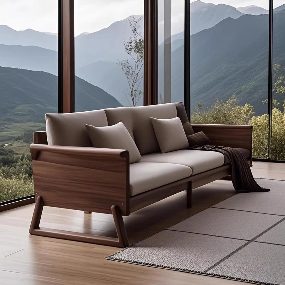 新中式禅スタイルの高級ホワイトアッシュソファ - ラグジュアリーな北米ブラックウォールナット無垢材のリビングルーム家具で、心地よい安らぎを提供します。