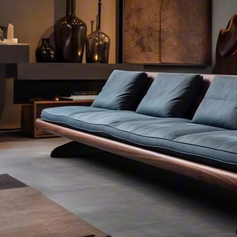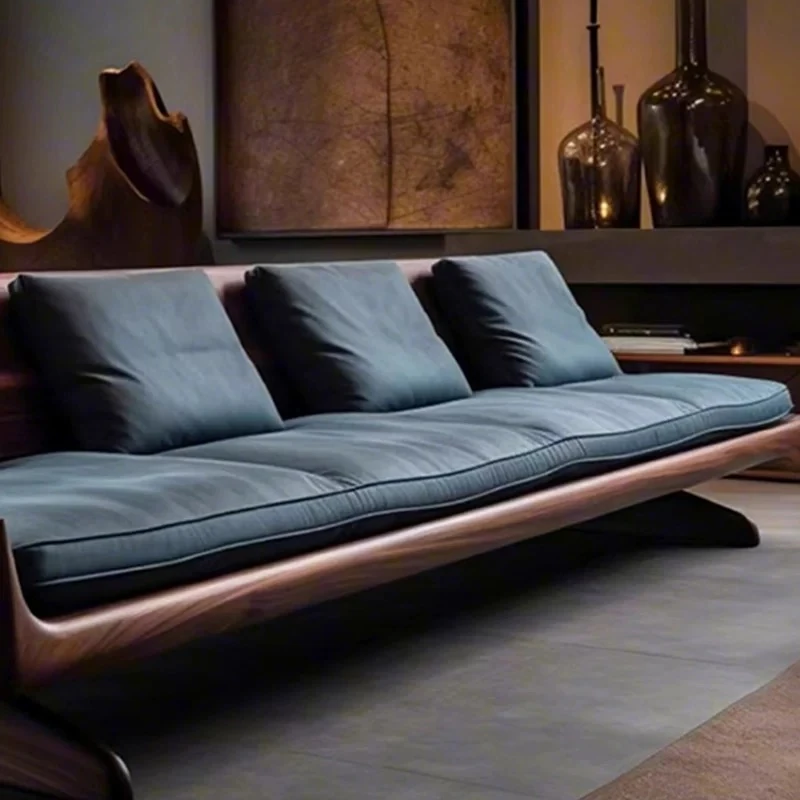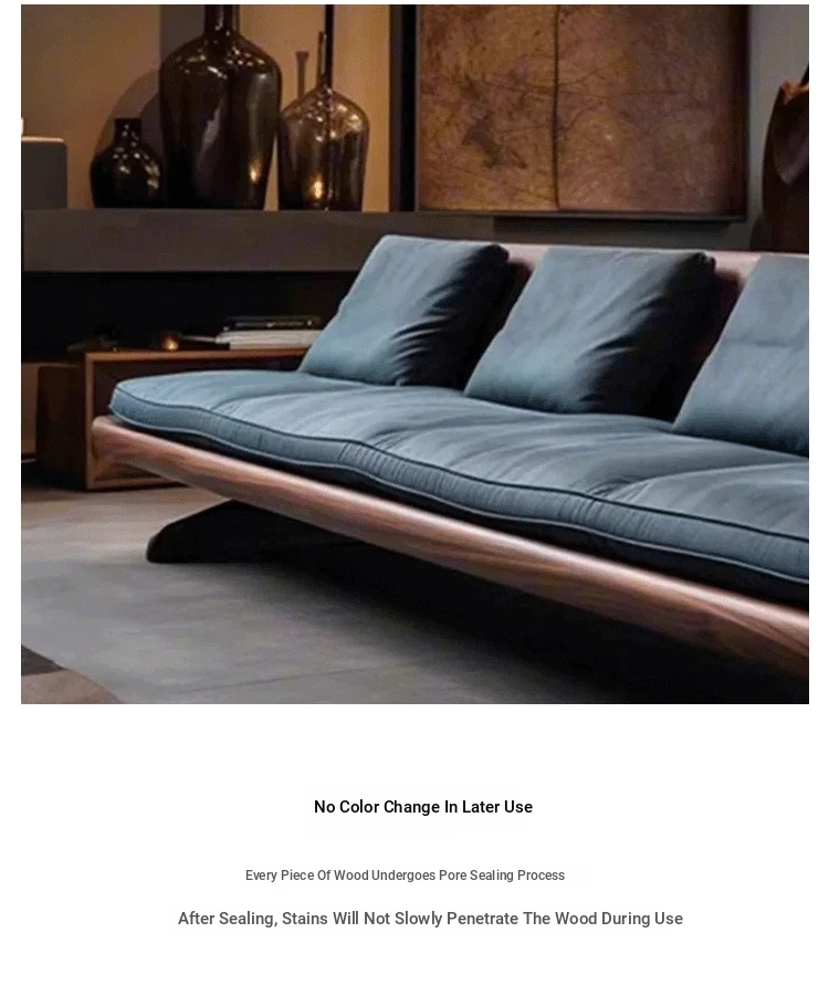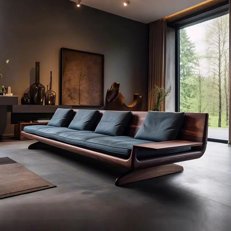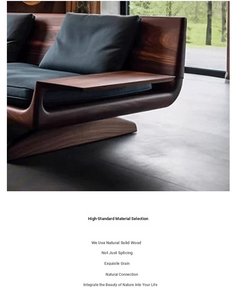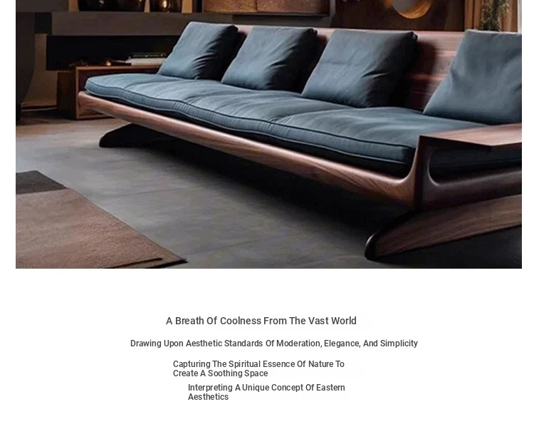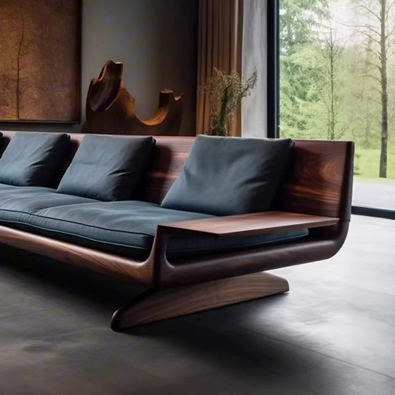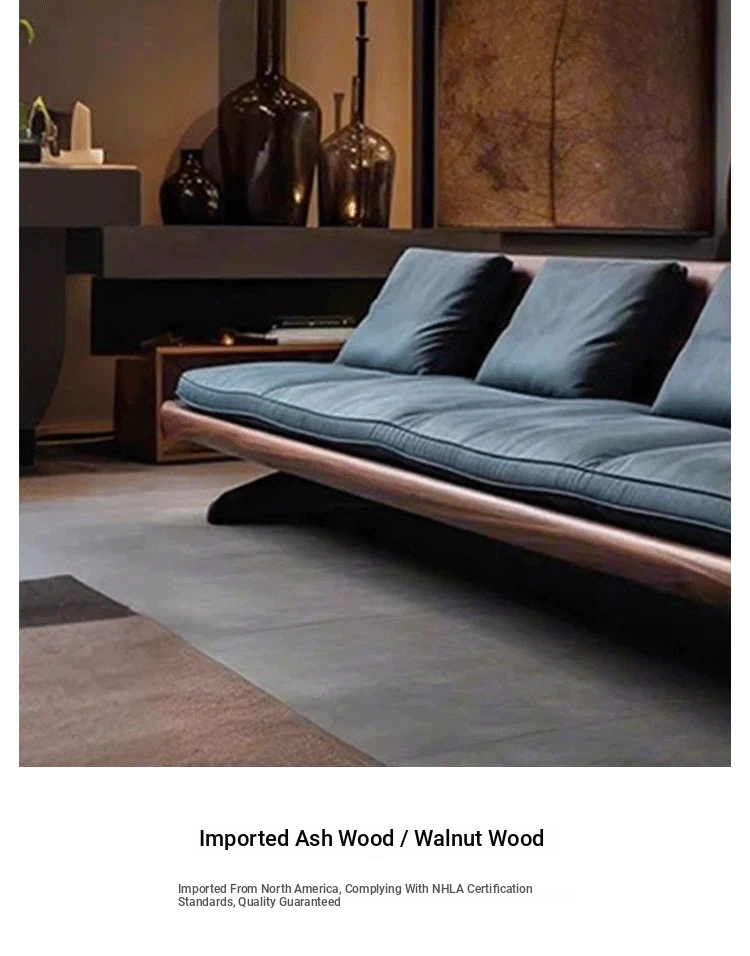 High-End Modern Zen Style White Ash Wood Sofa - Luxurious and Elegant Living Room Furniture Made from North American Black Walnut - Perfect for Home Décor