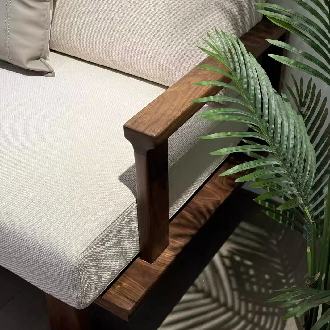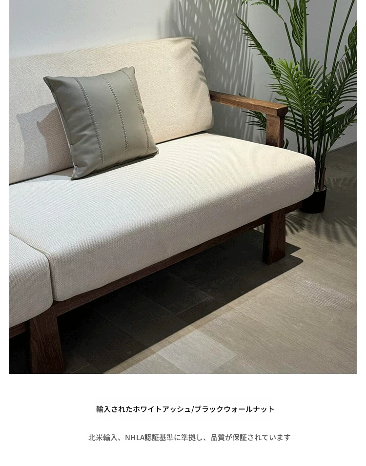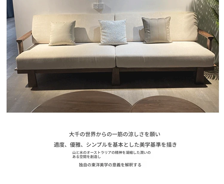 新中式スタイルのホワイトアッシュウッドソファ - 高級感漂う軽やかな禅の風合い、北米産ウォールナット無垢材使用のリビングルーム向け家具で、心地よいくつろぎの空間を演出します。