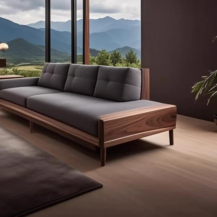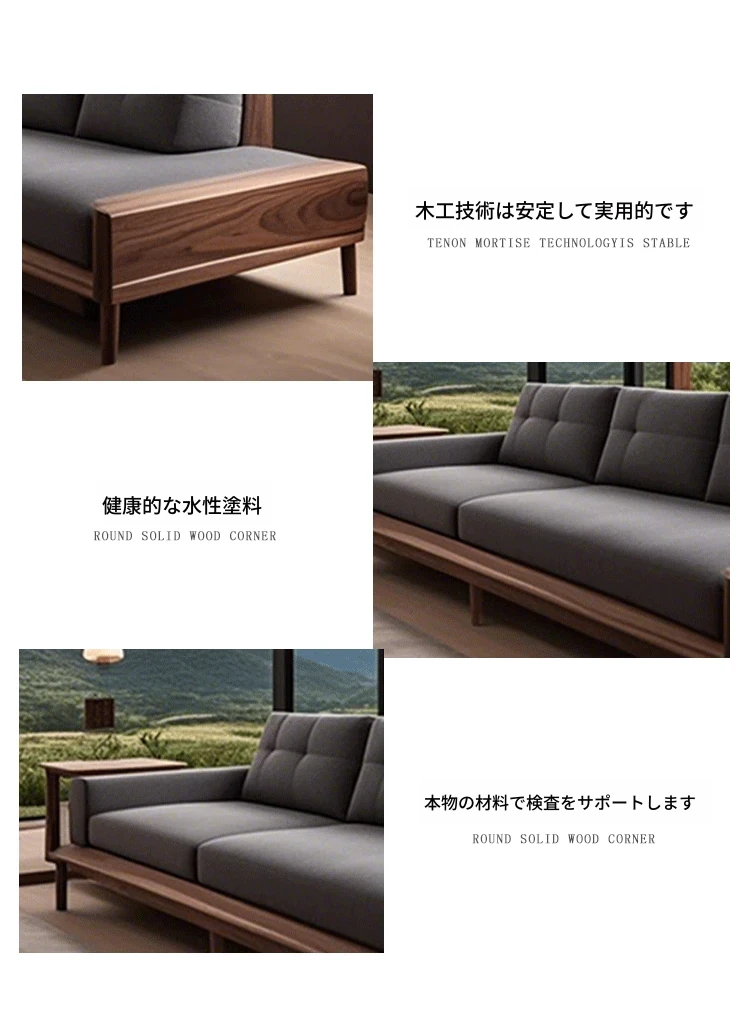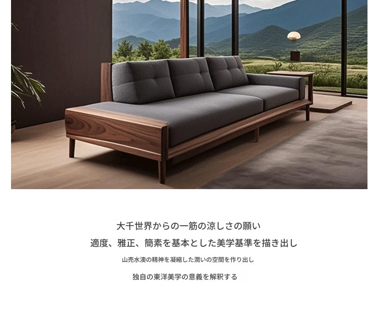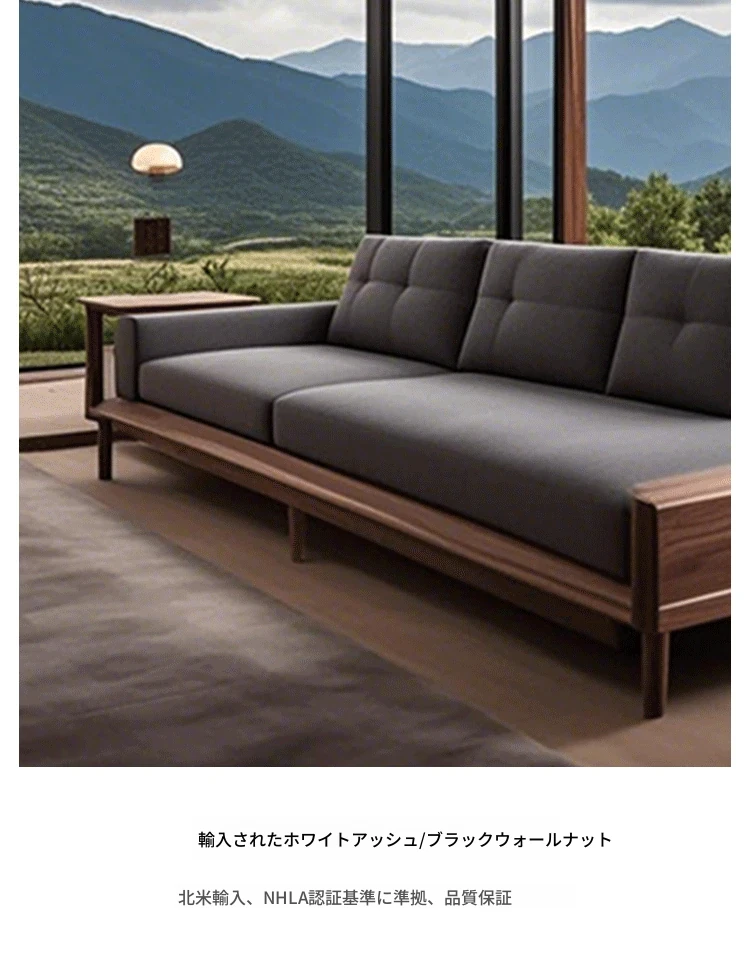 新中式禅スタイルのホワイトアッシュソファ - 高級感あふれる軽奢スタイル!北米産ウォールナット無垢材を使用したリビングにぴったりの直線デザイン家具。心地よい空間を演出します!