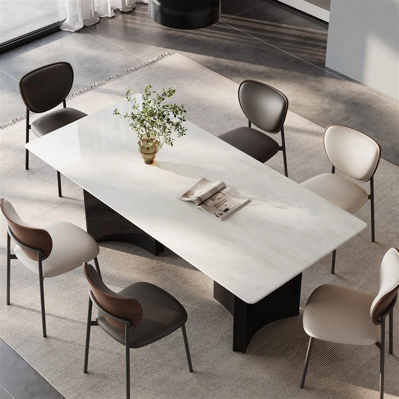 カリアイス玉ラグジュアリー石のダイニングテーブル+エコレザーのダイニングチェア*6