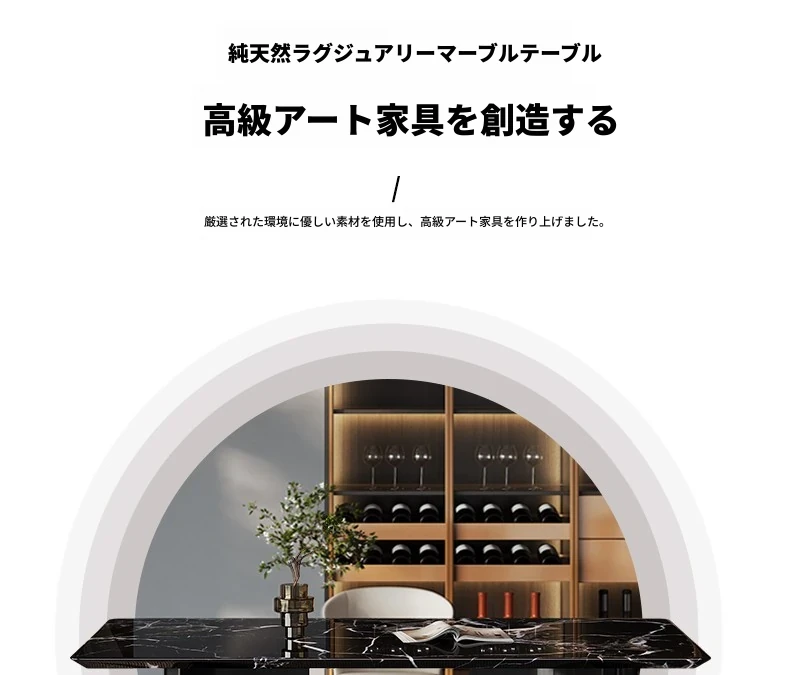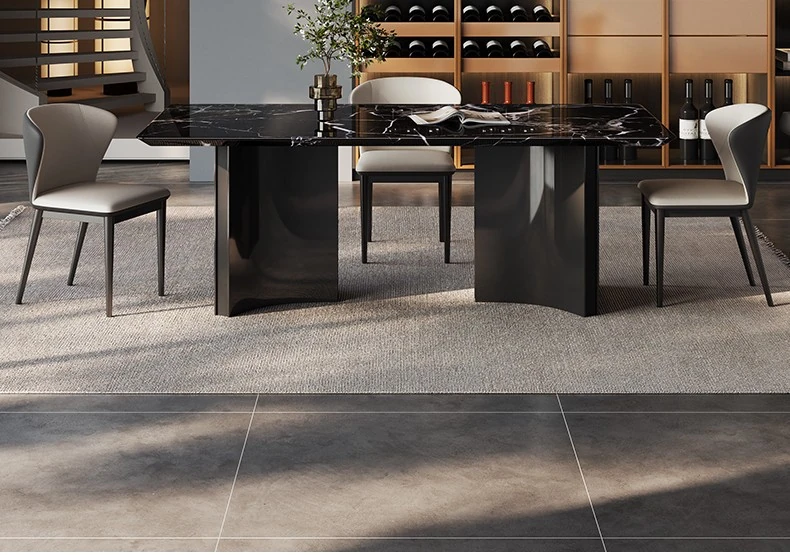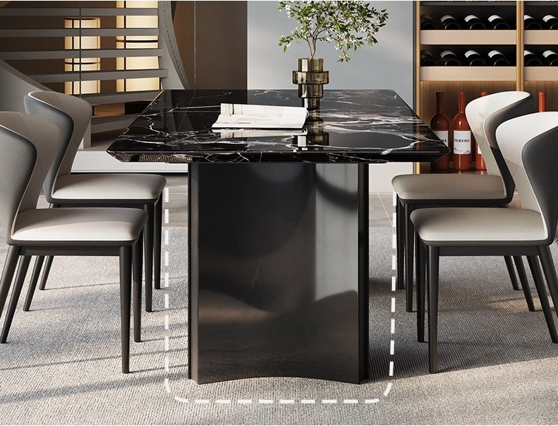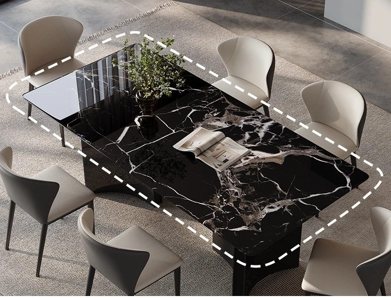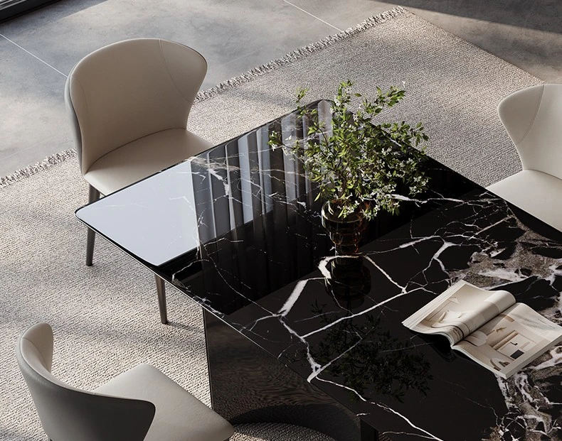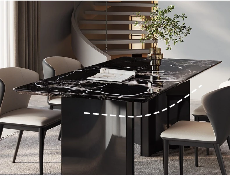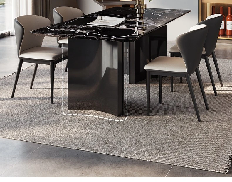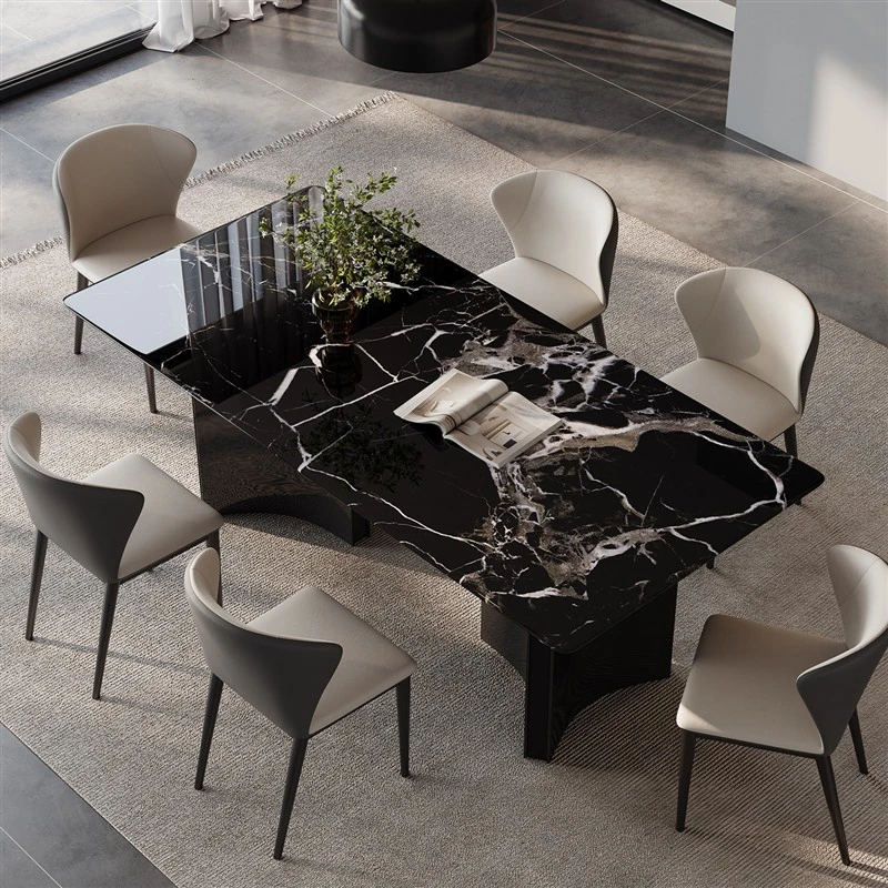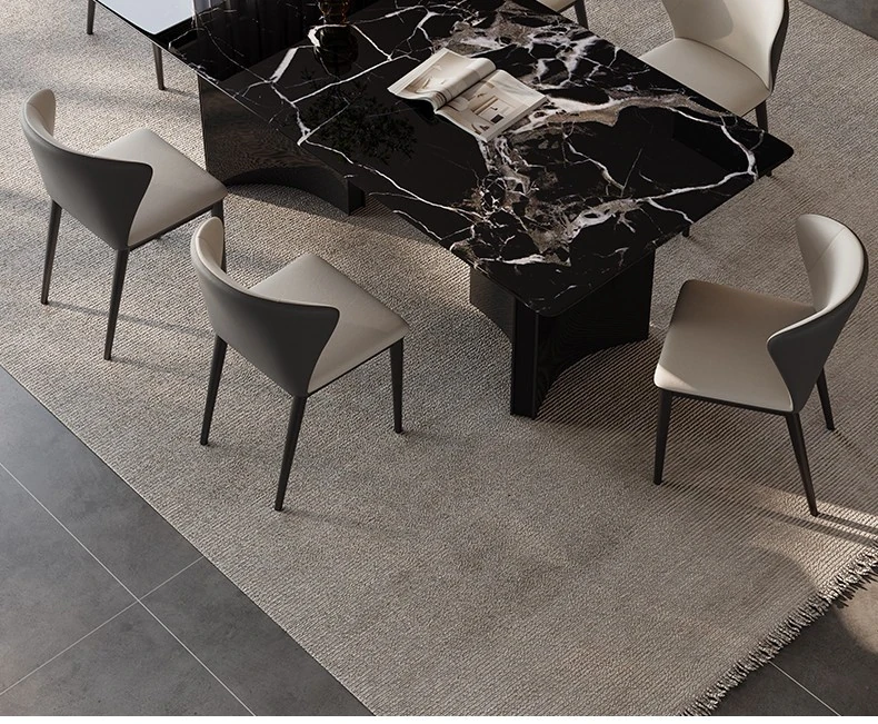 ブルガリ黒ラグジュアリー石のダイニングテーブル+エコレザーのダイニングチェア*6