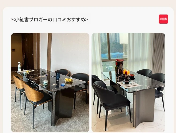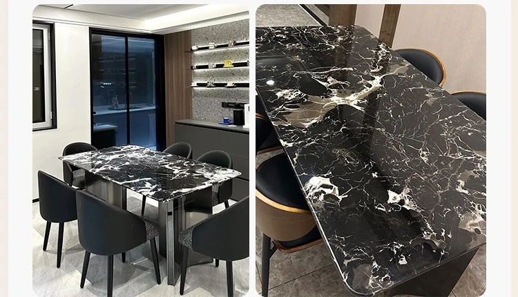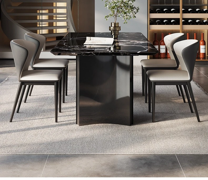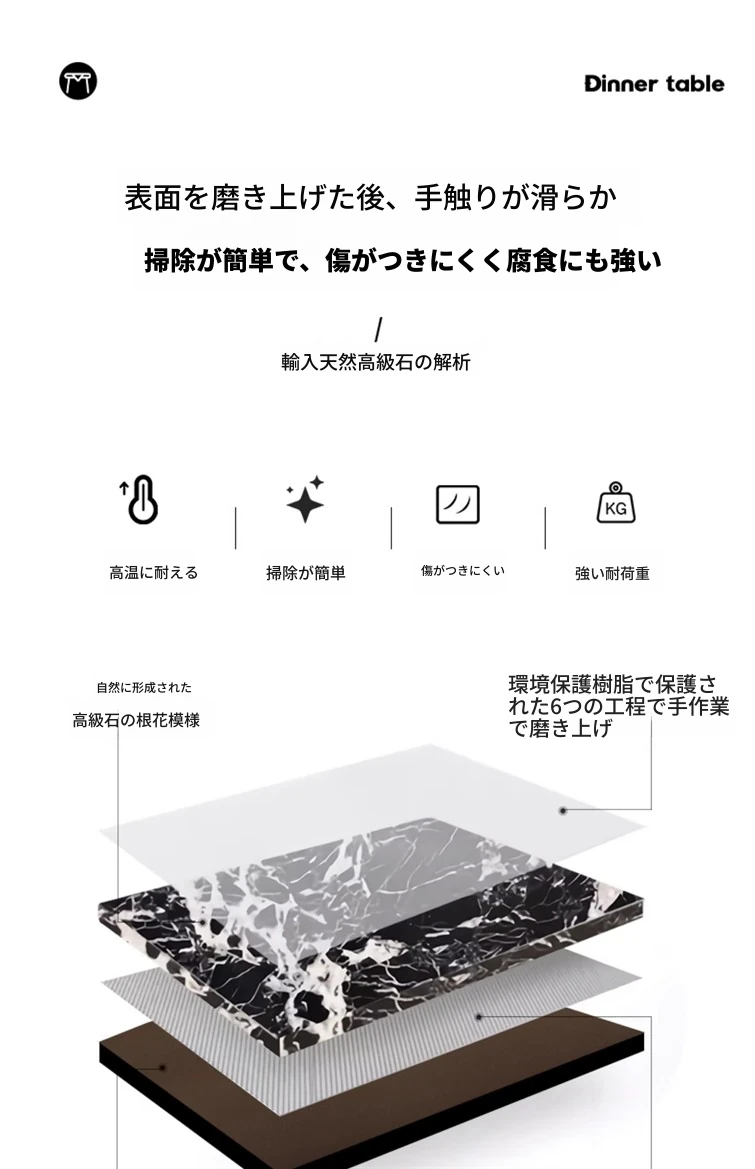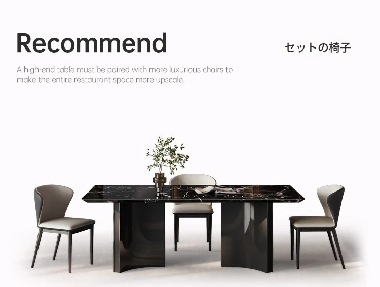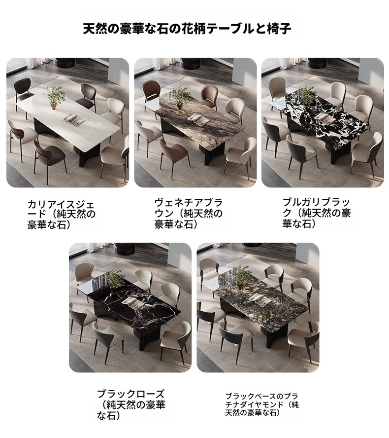 黒バラ天然ラグジュアリー石のダイニングテーブル+エコレザーのダイニングチェア*6