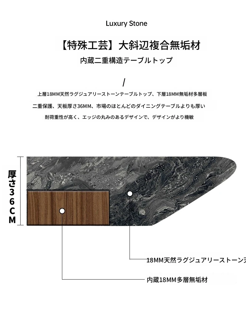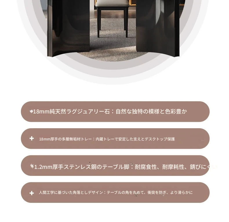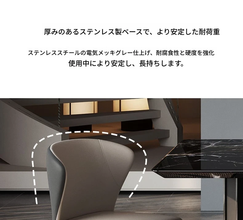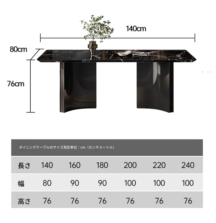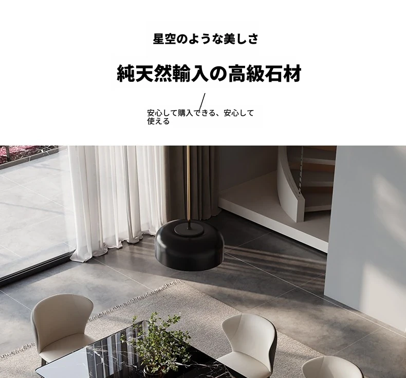 黒バラ天然ラグジュアリー石のダイニングテーブル+エコレザーのダイニングチェア*6
