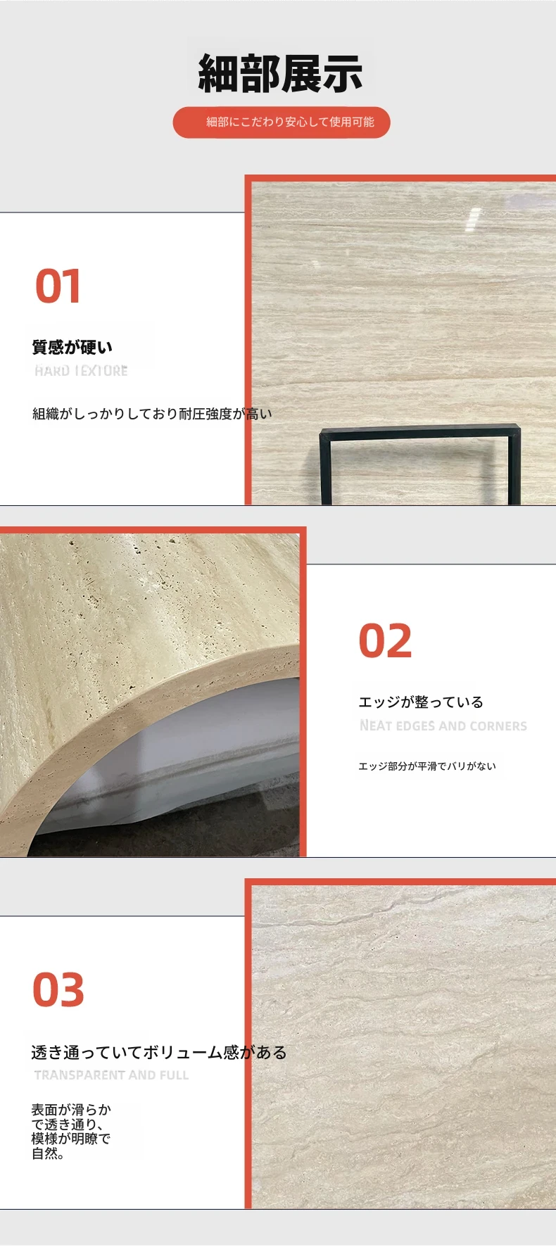 輸入天然の洞石を使用したイタリア産アイボリーホワイト洞石、超白色でローマ風の米白・米黄のマット仕上げ。侘び寂びを感じる北欧スタイルの背景に最適!おしゃれで洗練された空間を演出します。