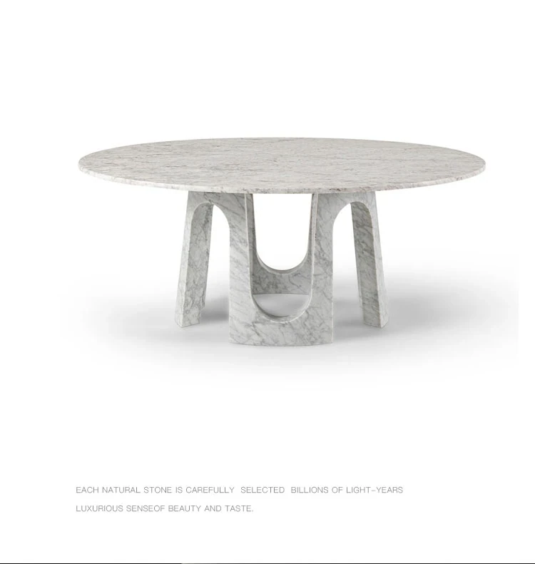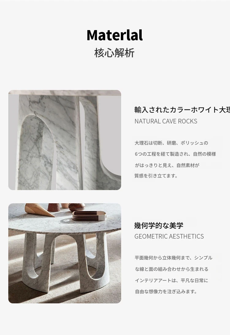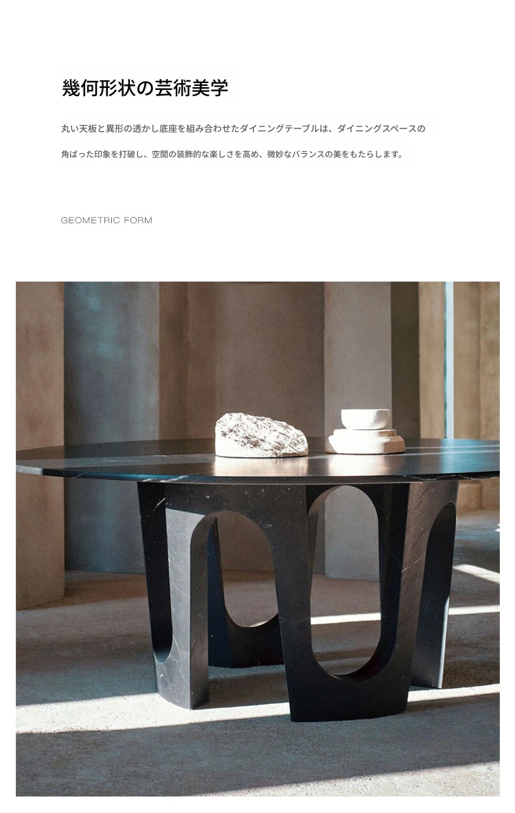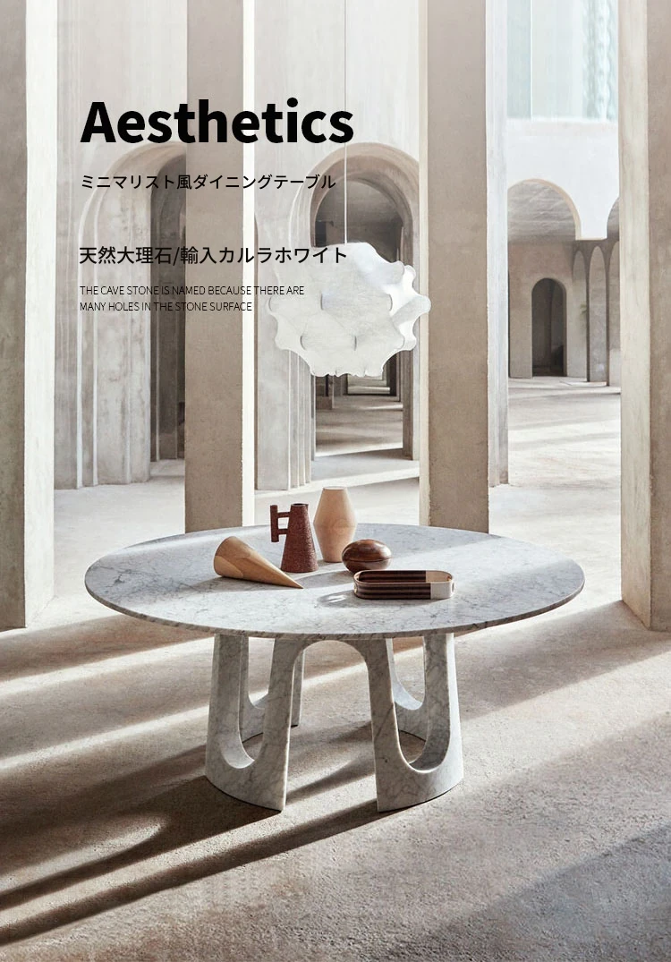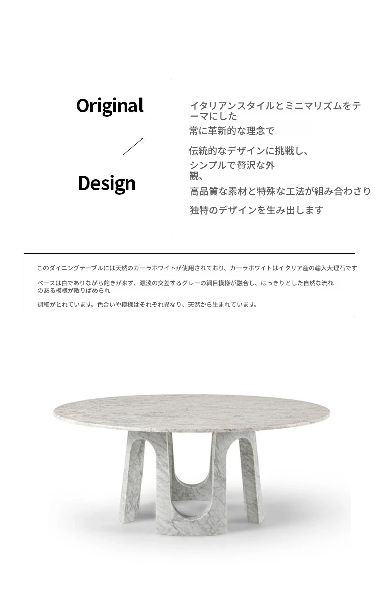 イタリア直輸入のラグジュアリー大理石円形ダイニングテーブル - モダンでシンプルなデザイン、リビングにぴったりの軽やかな高級感を演出するデザイナーズ家具!