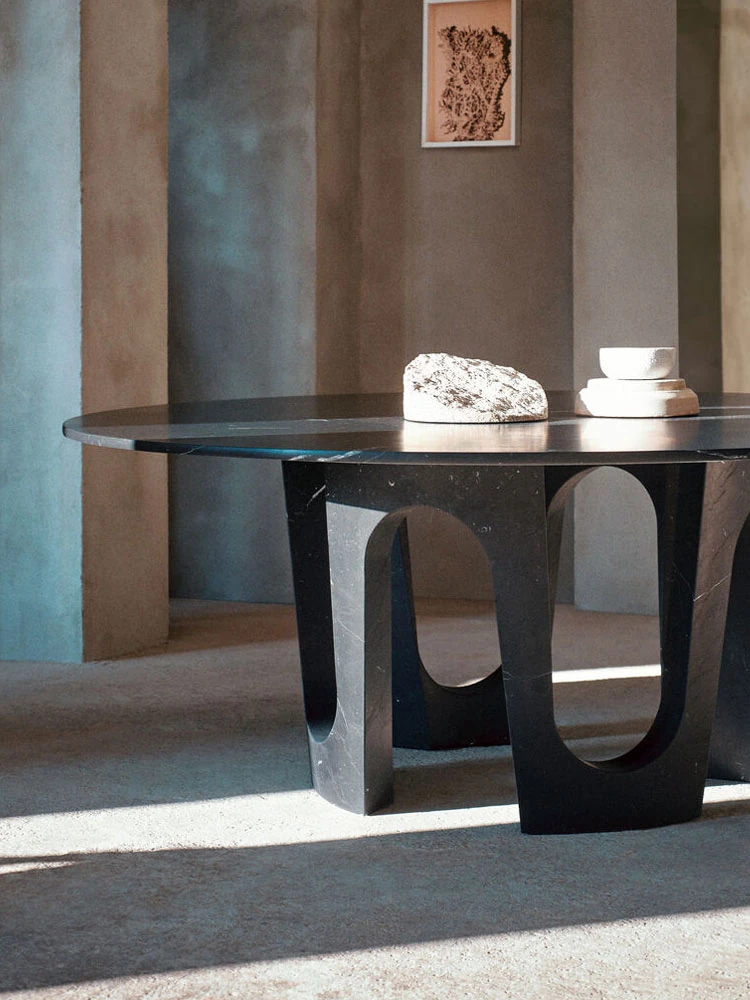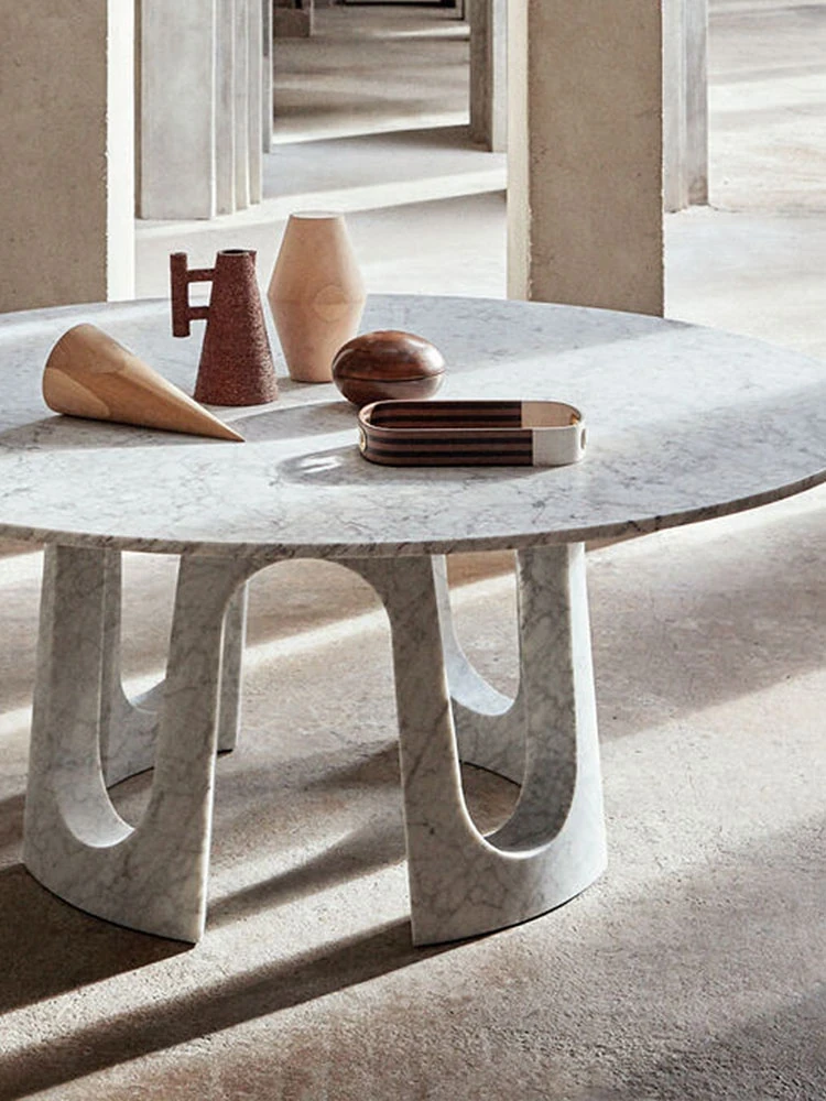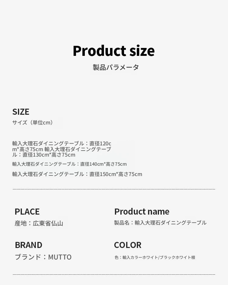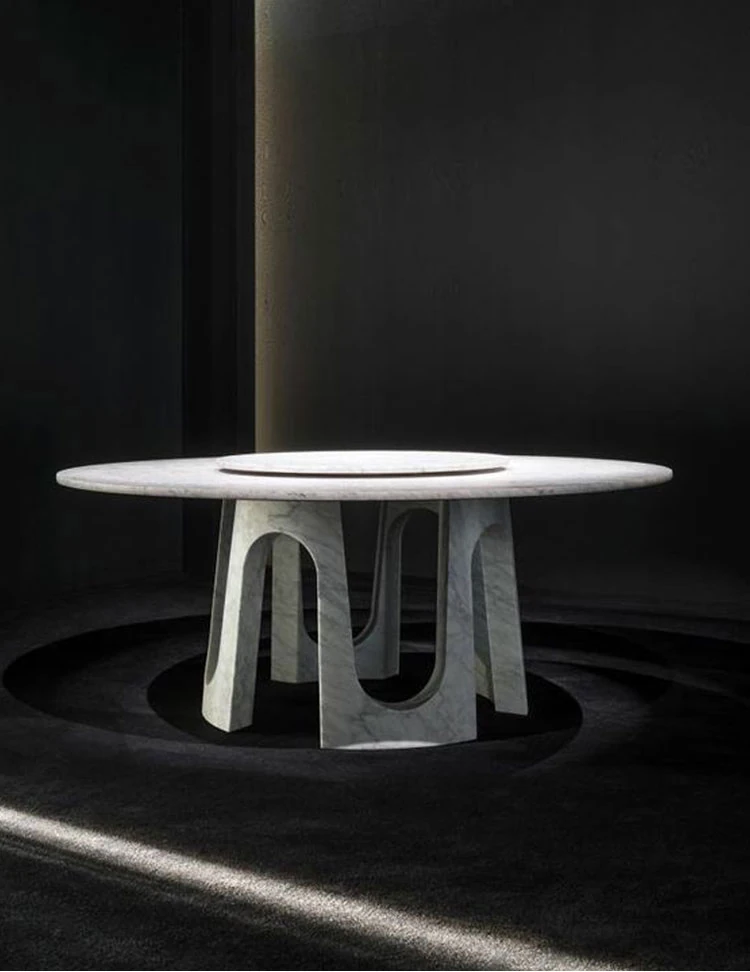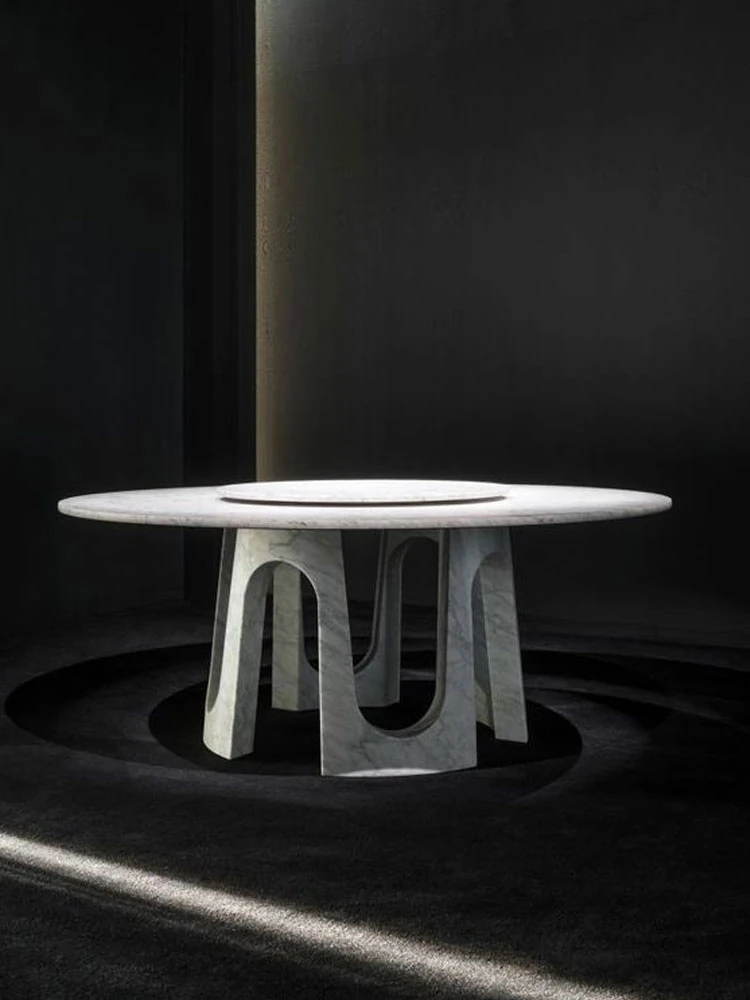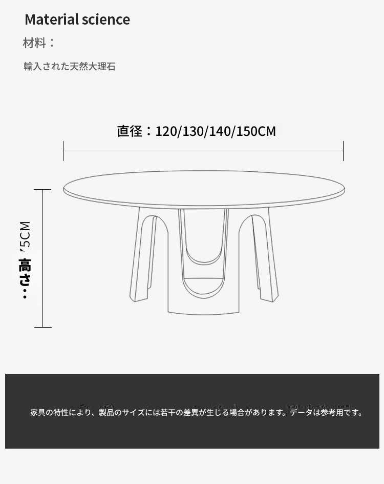 イタリア直輸入のラグジュアリー大理石円形ダイニングテーブル - モダンでシンプルなデザイン、リビングにぴったりの軽やかな高級感を演出するデザイナーズ家具!