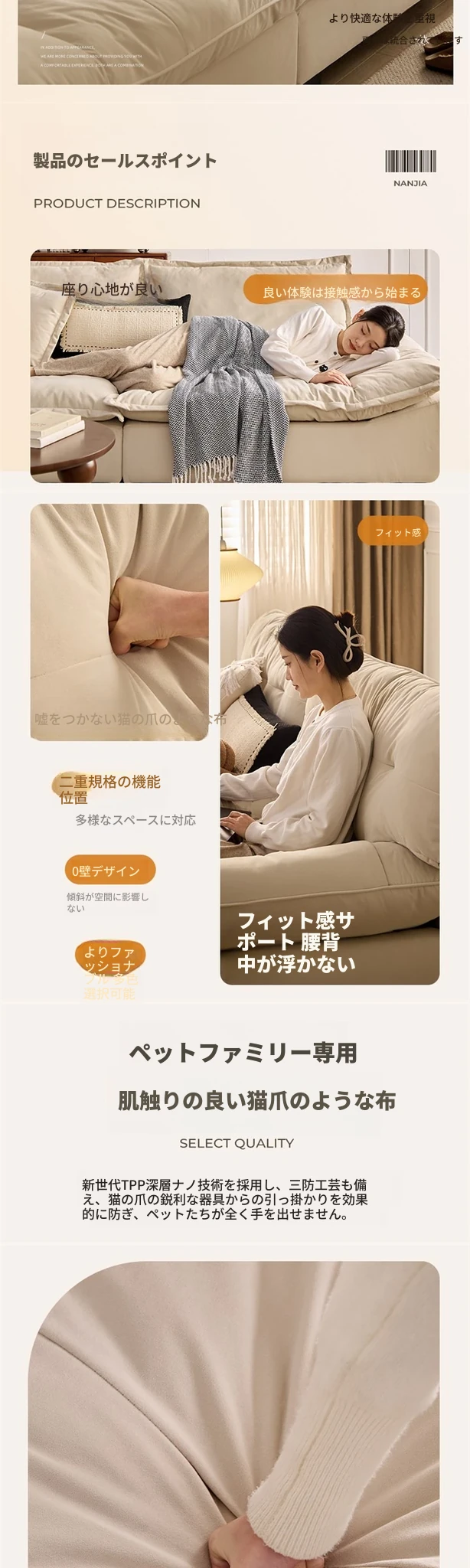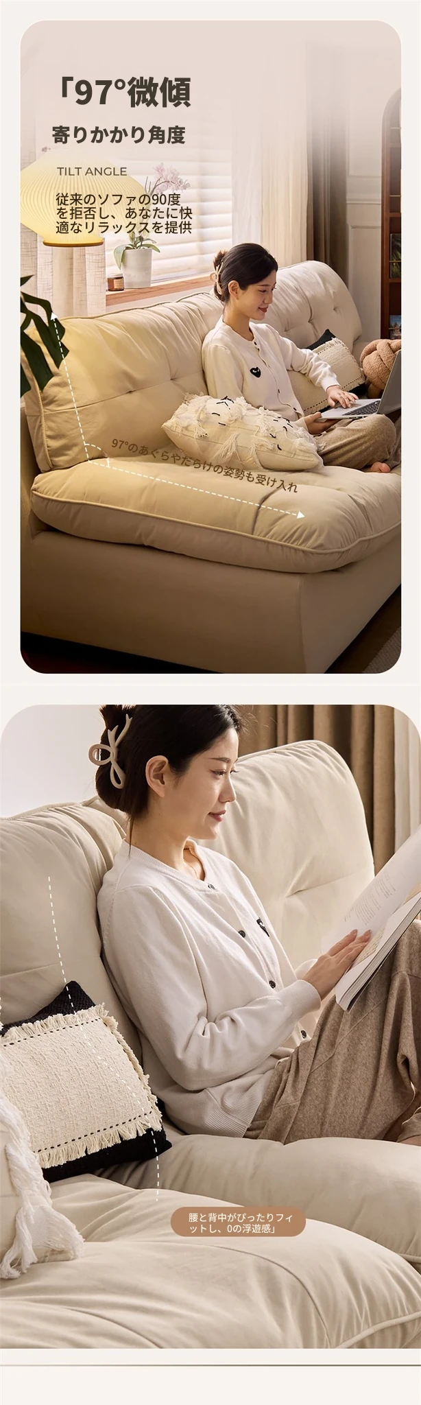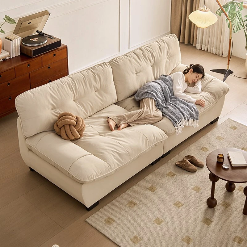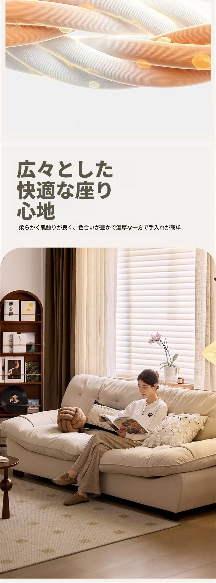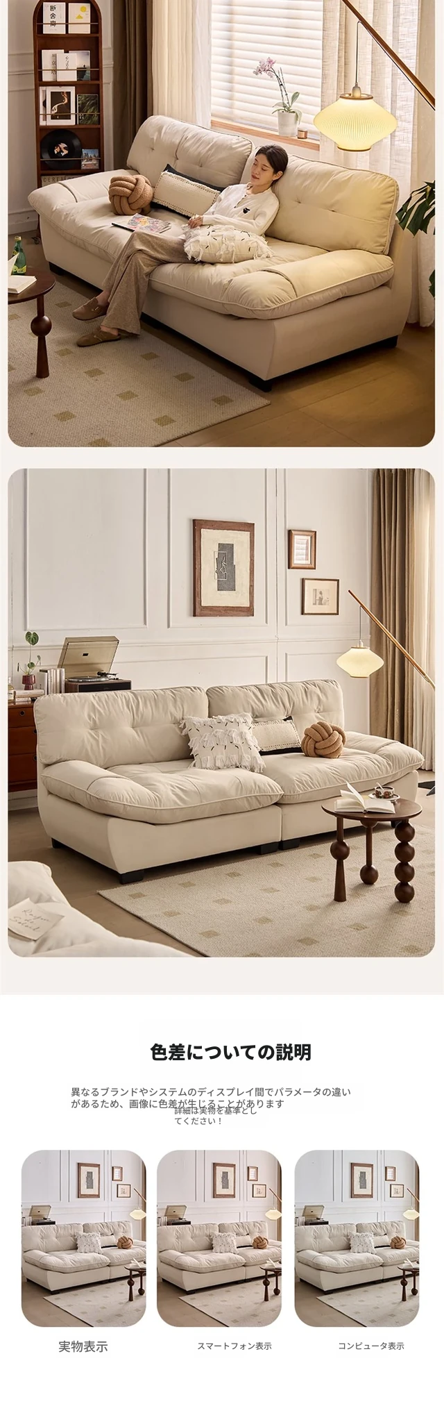 イタリアンミニマリストデザインのクリーム色ファブリックソファ - モダンでシンプル、軽やかなラグジュアリーを演出する3人掛けソファ。小さなお部屋にもぴったりなストレートセイルデザインで、スタイリッシュなリビング空間を実現!