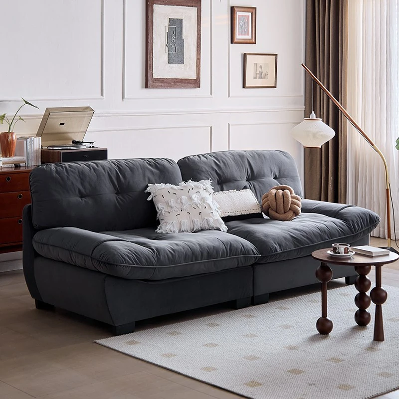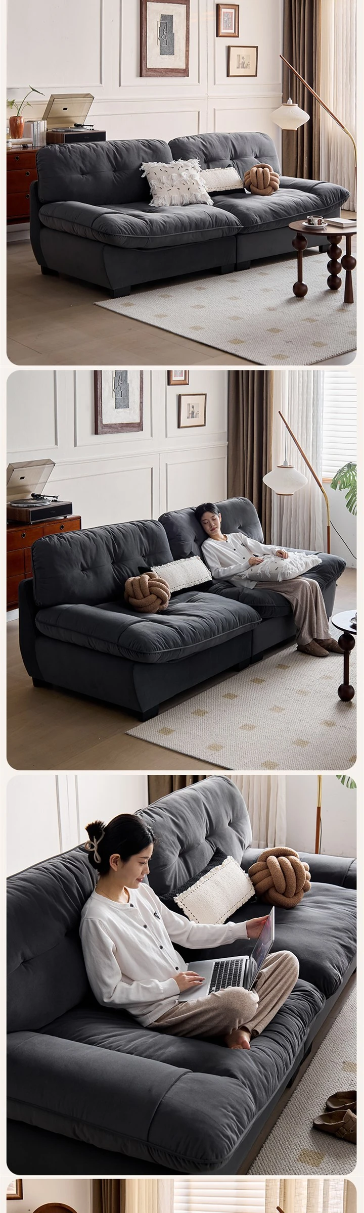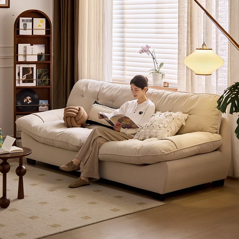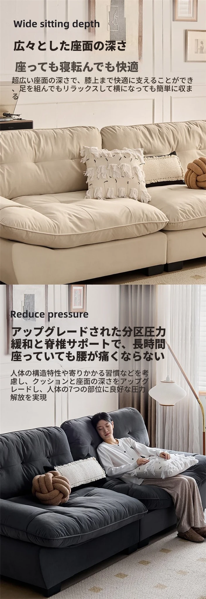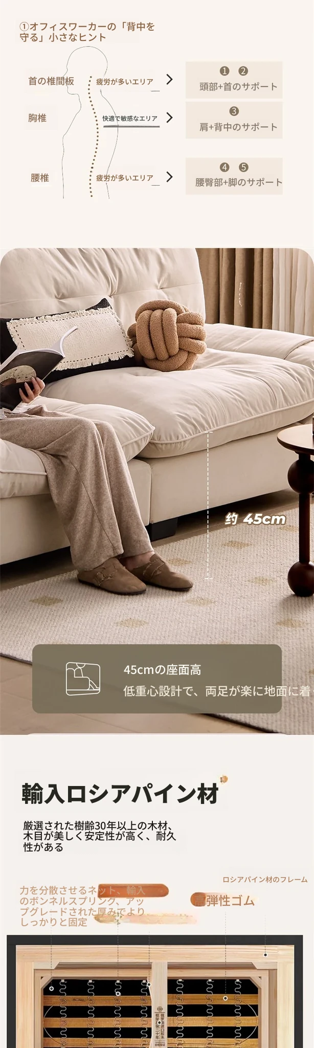 イタリアンミニマリストデザインのクリーム色ファブリックソファ - モダンでシンプル、軽やかなラグジュアリーを演出する3人掛けソファ。小さなお部屋にもぴったりなストレートセイルデザインで、スタイリッシュなリビング空間を実現!