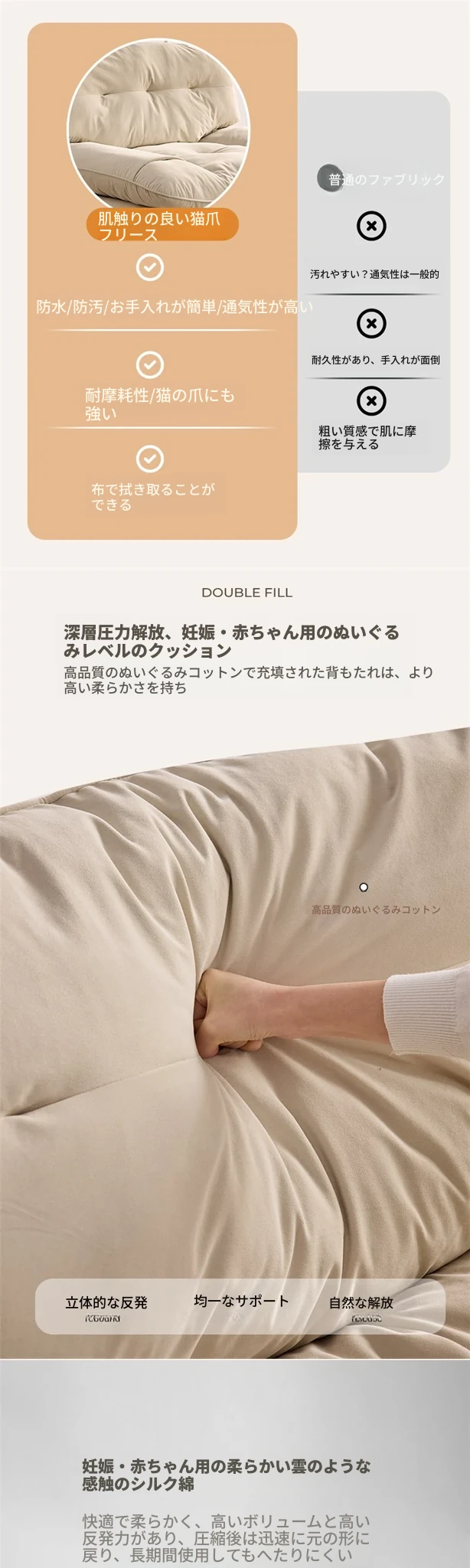 【80cm幅】新世代抗菌ネコ爪フリース生地+クラウド感覚シルク綿クッション
