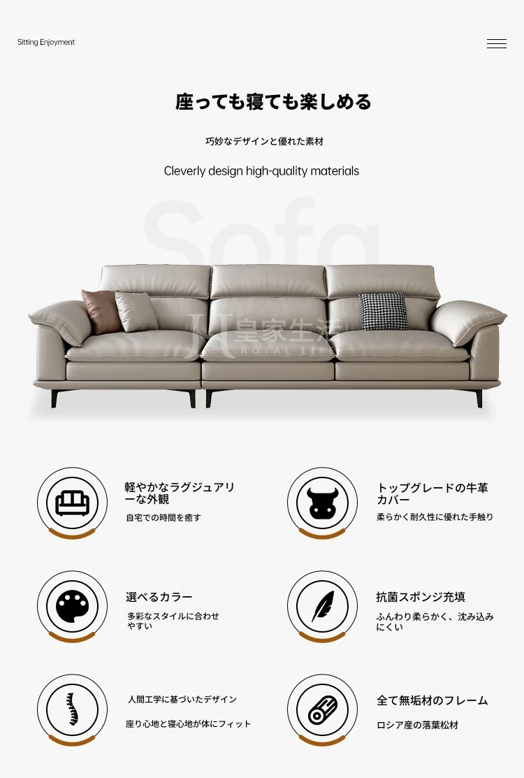 【全覆盖版】イタリア輸入加厚牛革 多人用2.5メートル+フットレスト