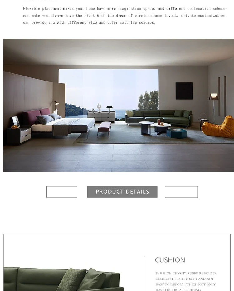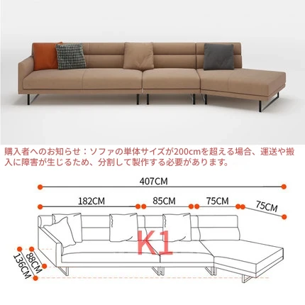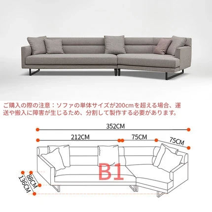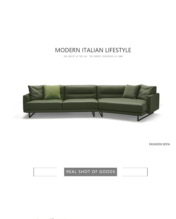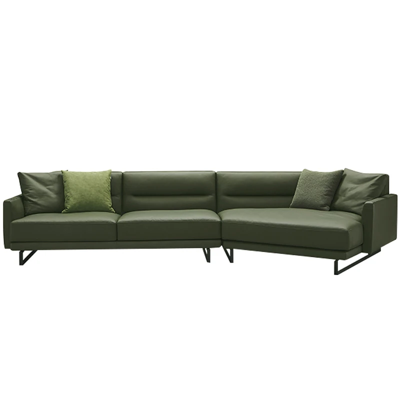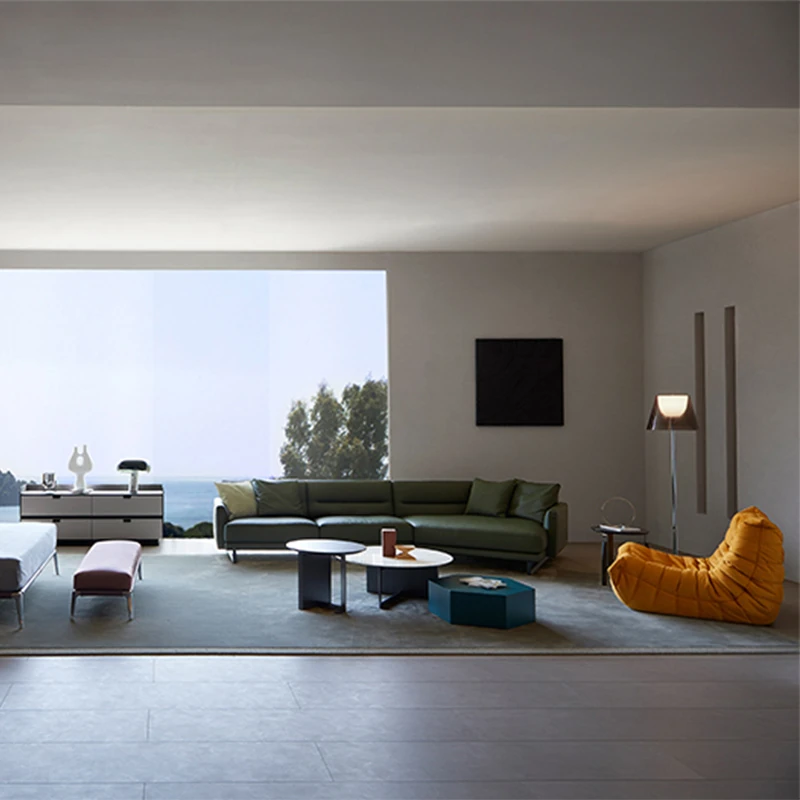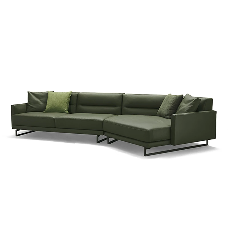 イタリアンモダンミニマリストスタイルのナッパレザー使用、シンプルで洗練されたデザインのダウン入りデザイナー異型ソファセット。快適さとスタイルを両立した贅沢なリビング空間を演出します!