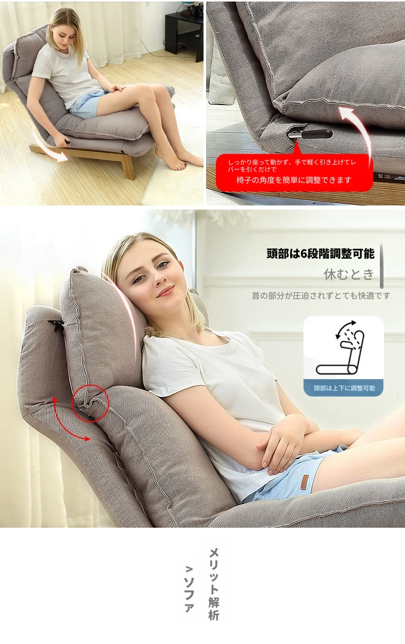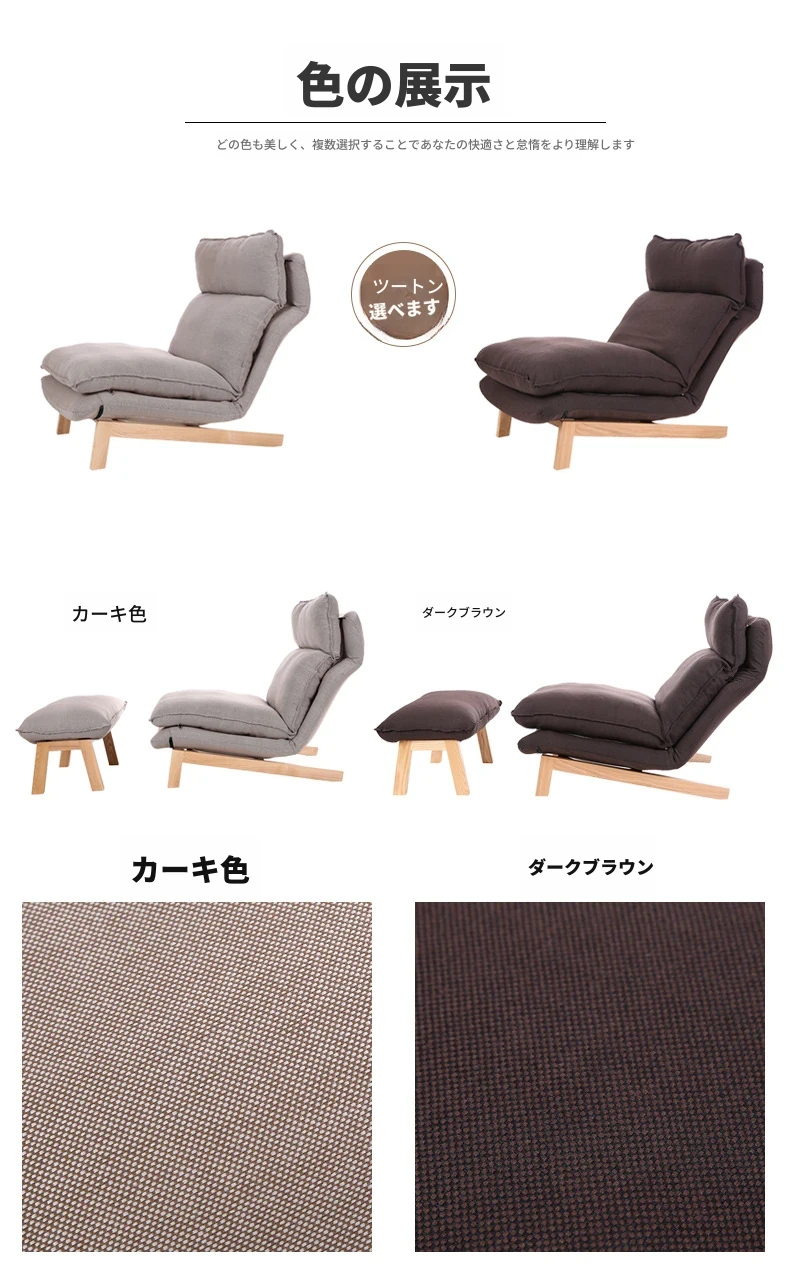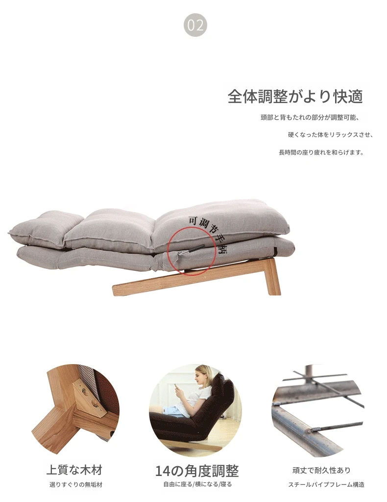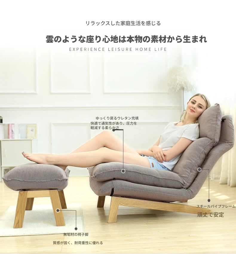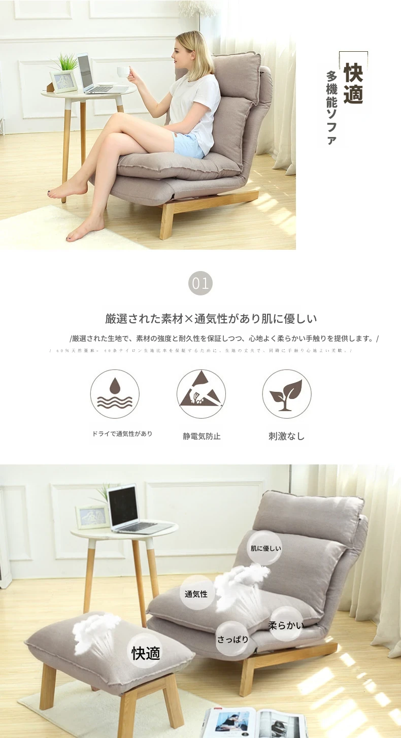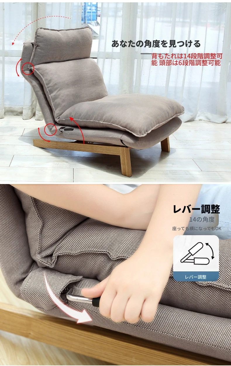 楽々リクライニングソファー - 和モダンスタイルの一人掛け、リビングや寝室にぴったり!調整可能な布製のクリエイティブなデザインで、快適な足置き付き。リラックスしたい時に最適な休息スペースを提供します!