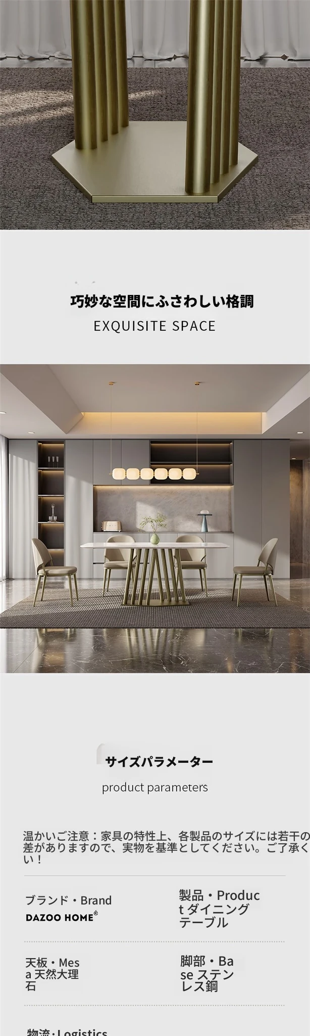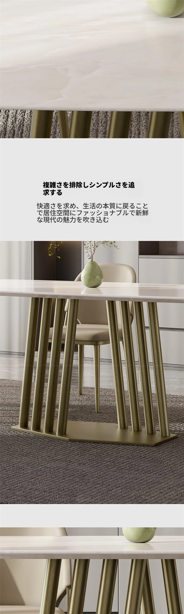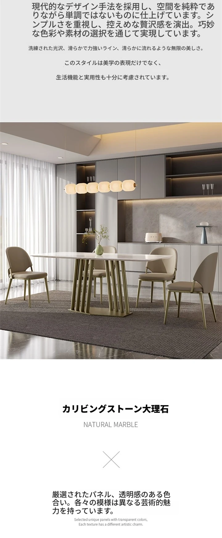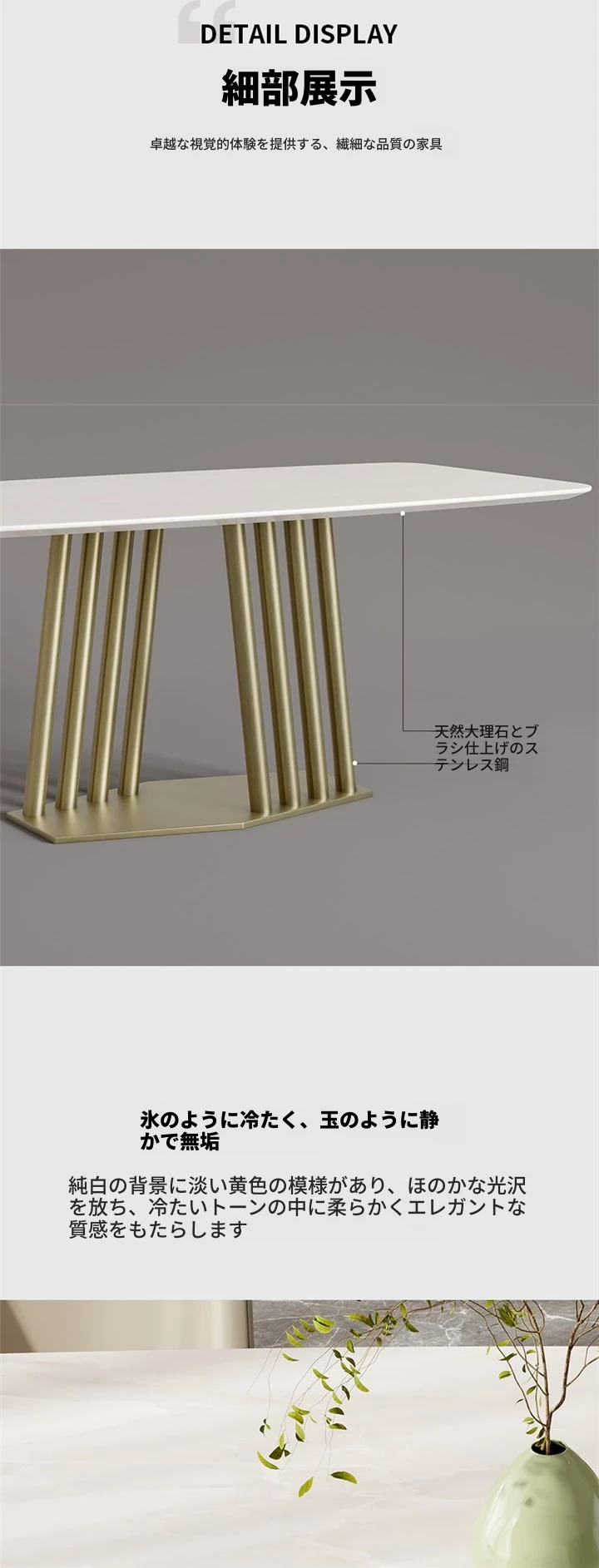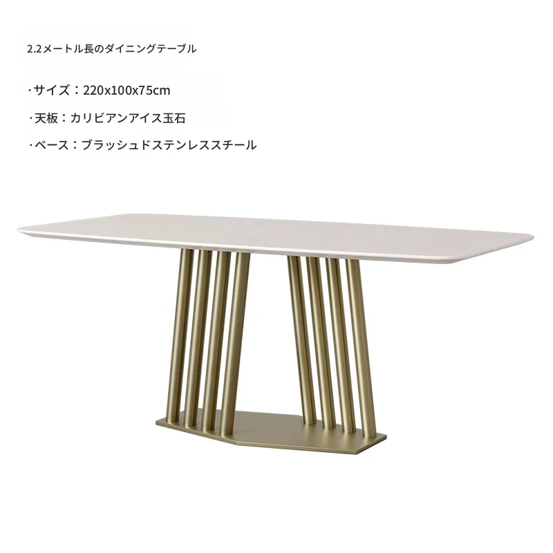 カリアイスジャスパー天然大理石ダイニングテーブル|モダンでシンプルな高級感溢れるデザイン|別荘や高級住宅に最適な長方形テーブル