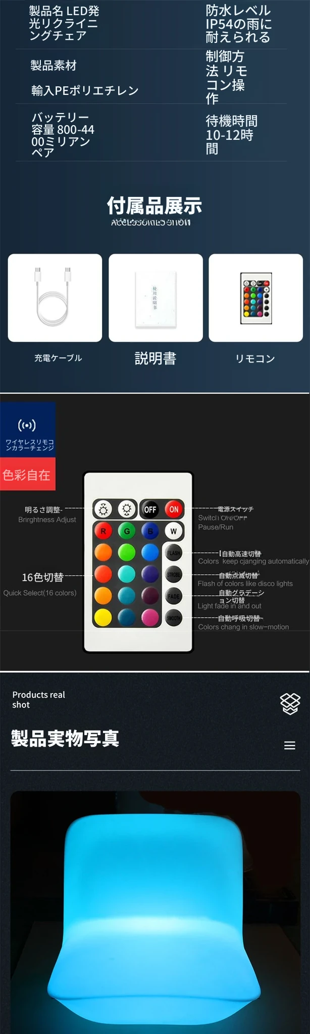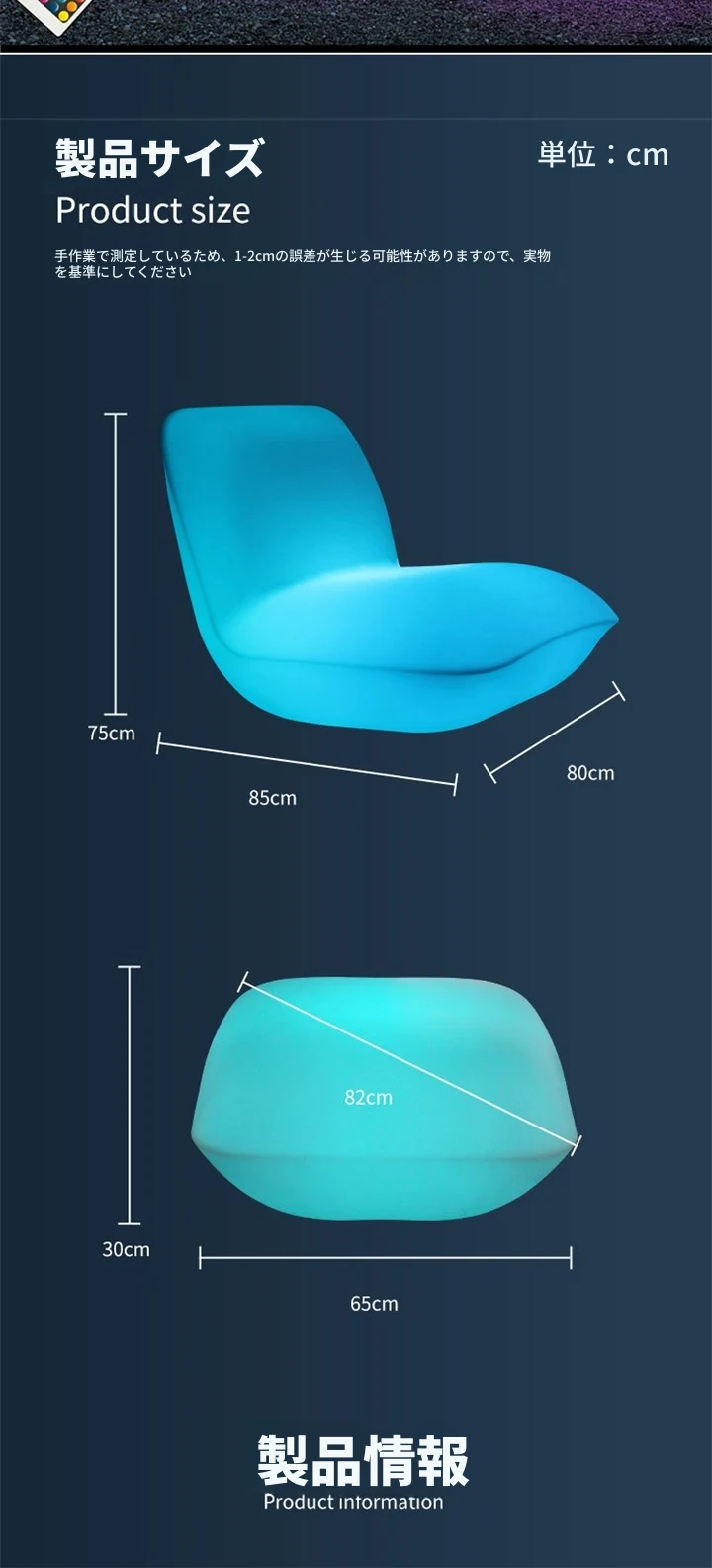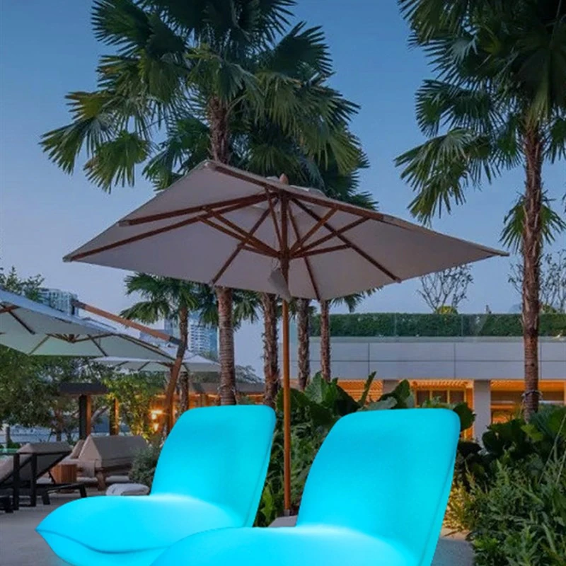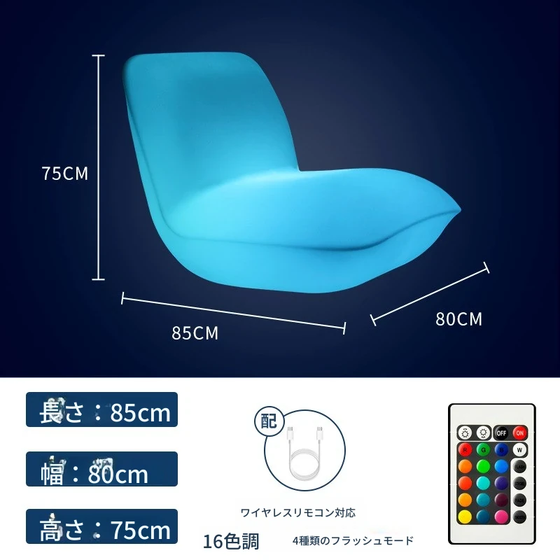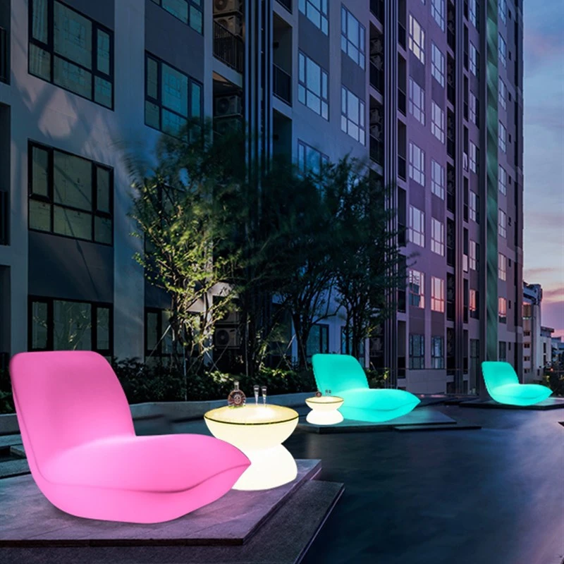 LED光るリラックスチェア!人気のビーチスタイル、プラスチック製のスタッキングソファ。立方体デザインで、バーやティータイムにぴったりの光るテーブル。おしゃれな空間を演出しよう!