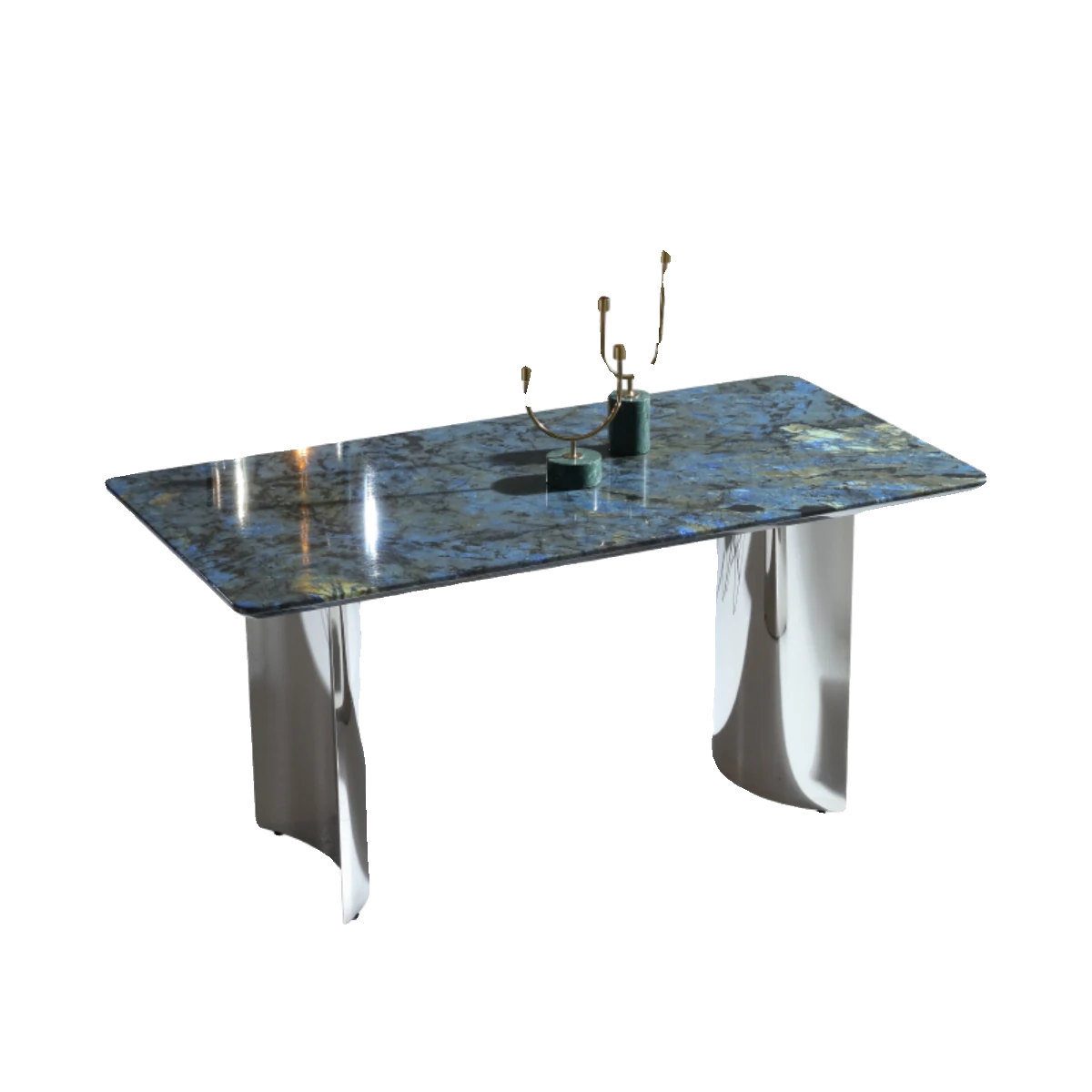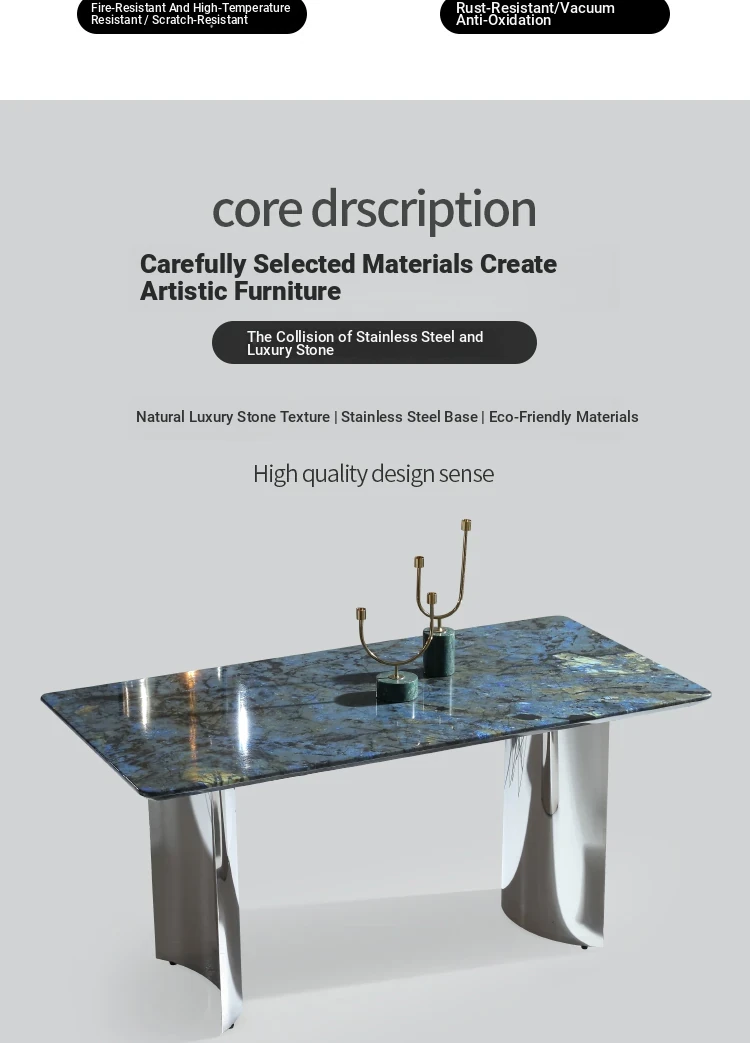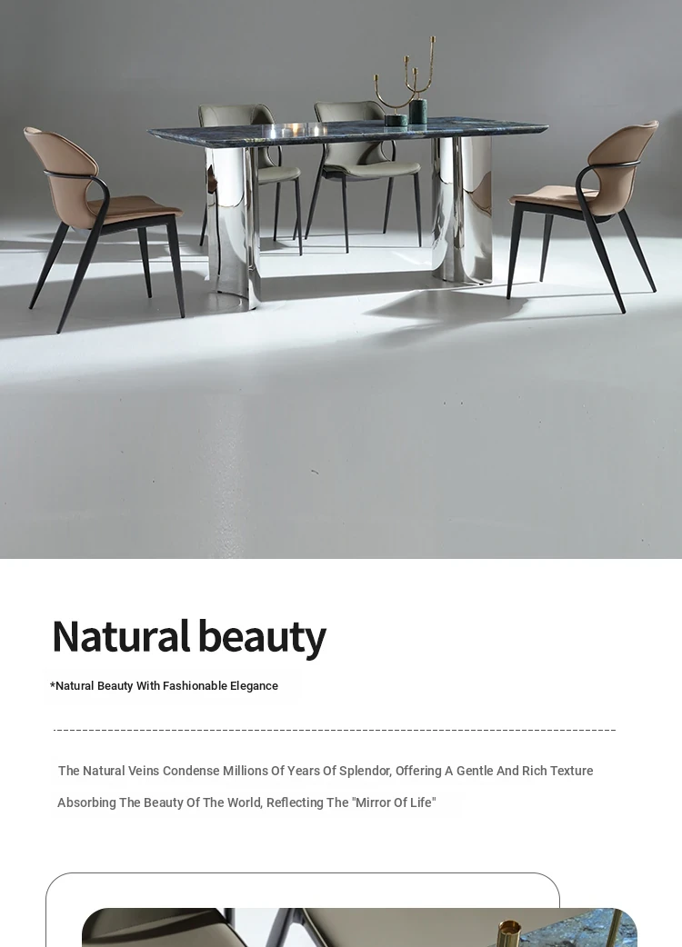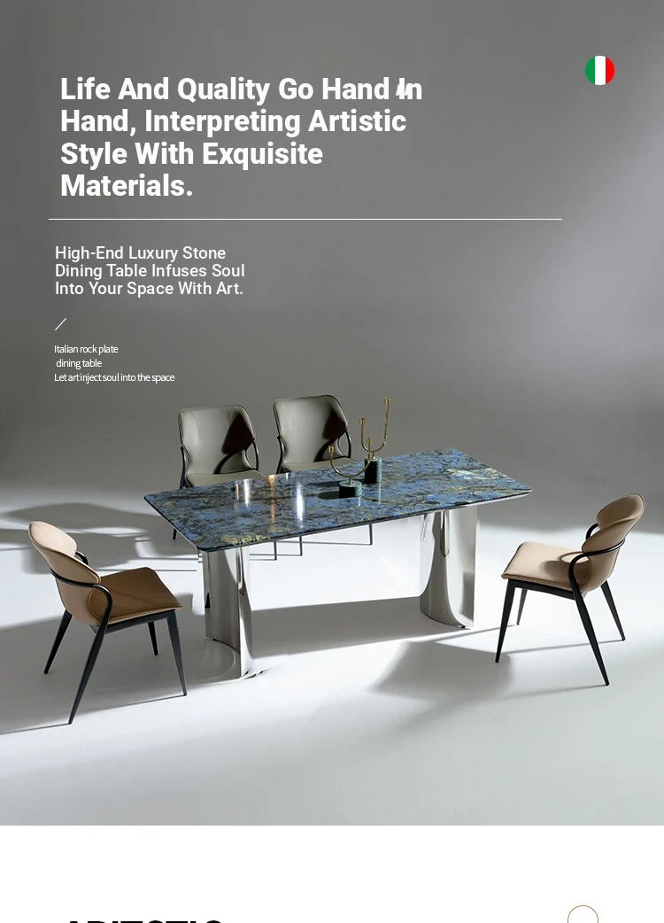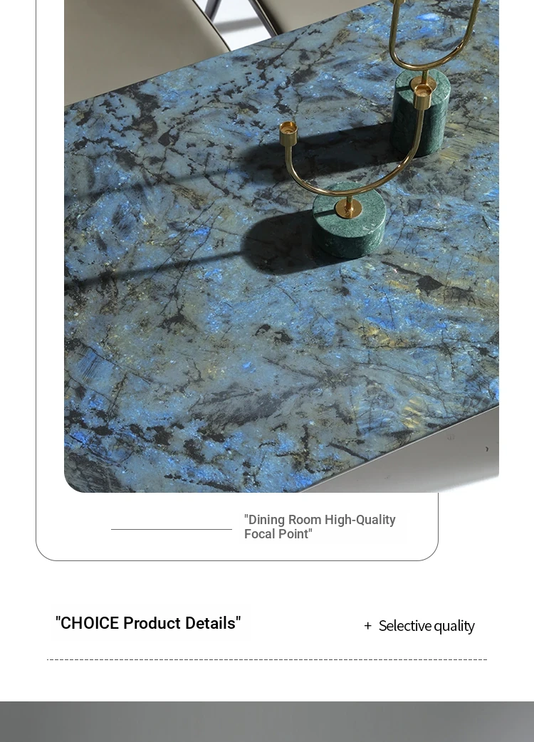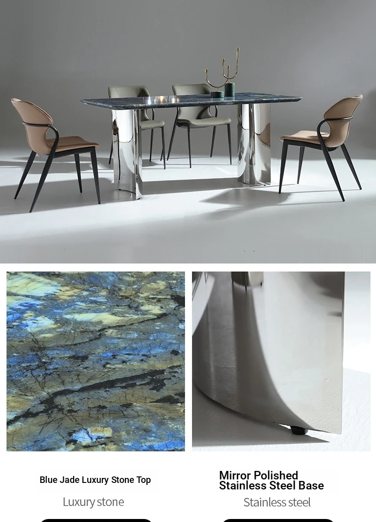 Luxurious Blue Jade Marble Rectangular Dining Table Set with 6 Chairs - Elegant Stone Texture for Home Dining Room