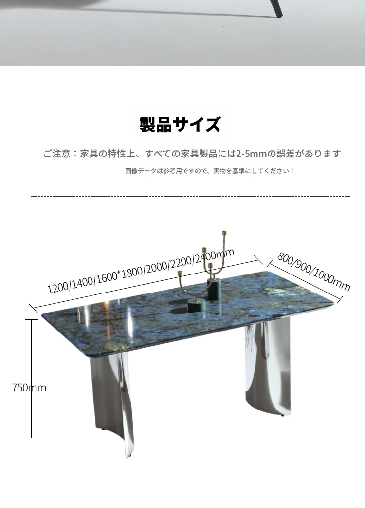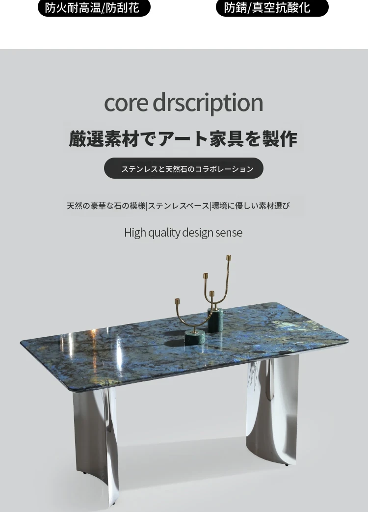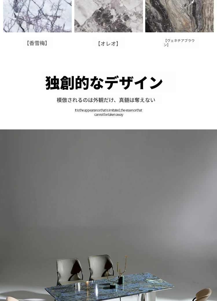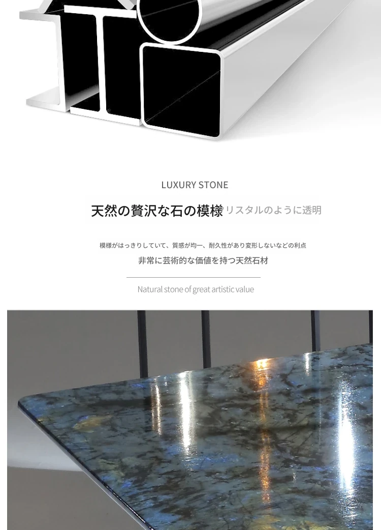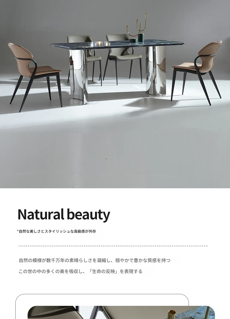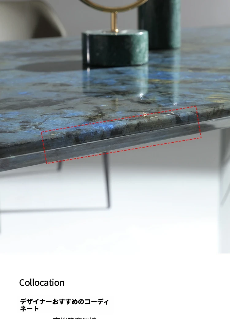 ラグジュアリーなブルージェイド大理石の長方形ダイニングテーブルセット - 6脚の椅子付き!洗練された石のテクスチャーで、あなたの食卓を華やかに彩ります。家庭用に最適な高級感溢れるデザイン。